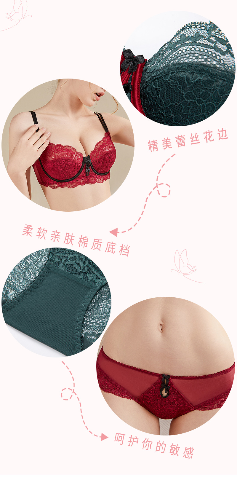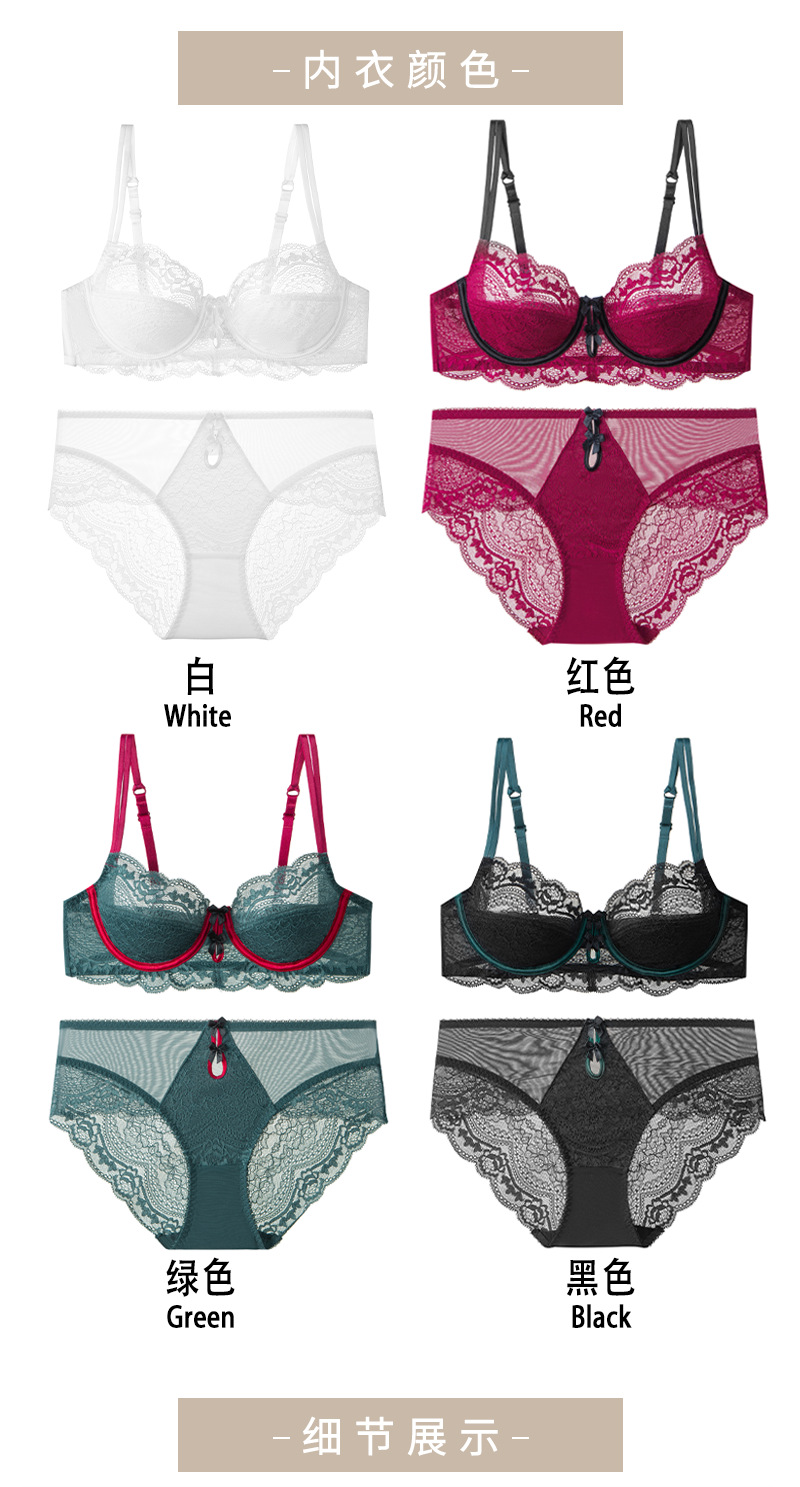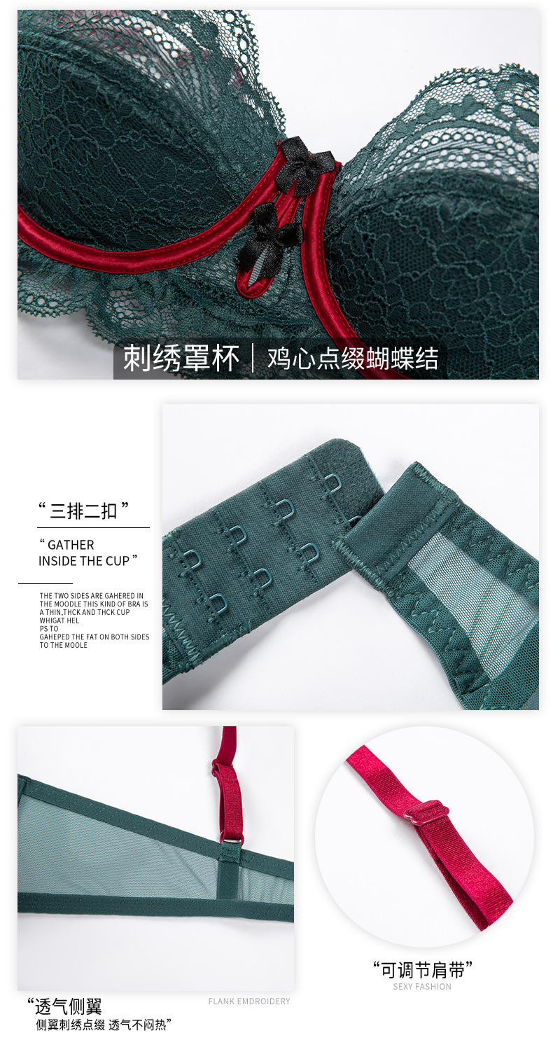 Ropa interior de encaje rojo sexy francés transfronterizo, ultrafino, puro, pechos grandes, pequeños, año de nacimiento, conjunto de pecho
