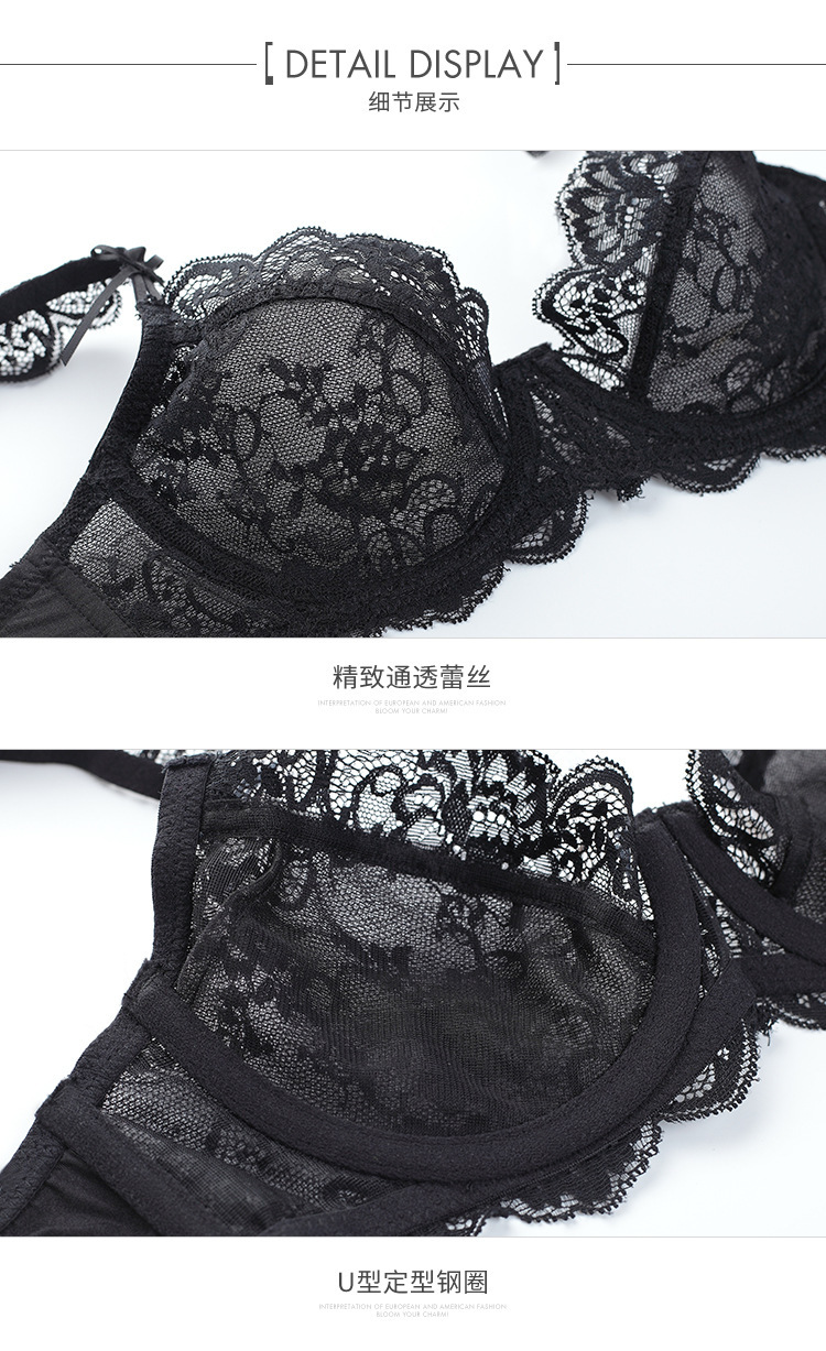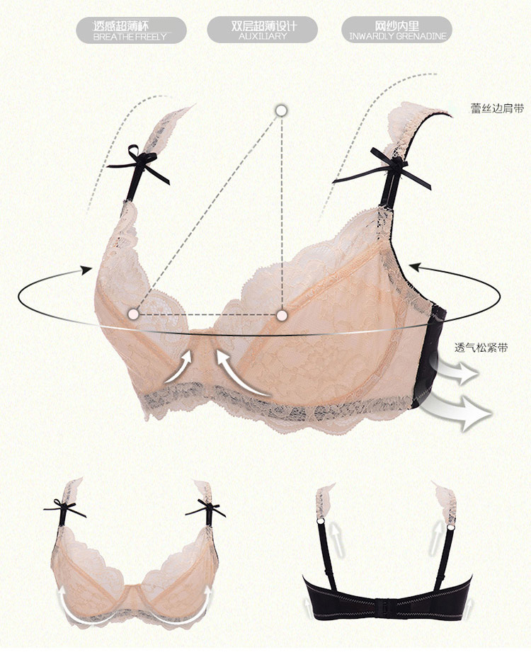 Sujetador ultrafino de encaje sexy sujetador transpirable transparente seductor traje de ropa interior arco adelgazante de gran tamaño