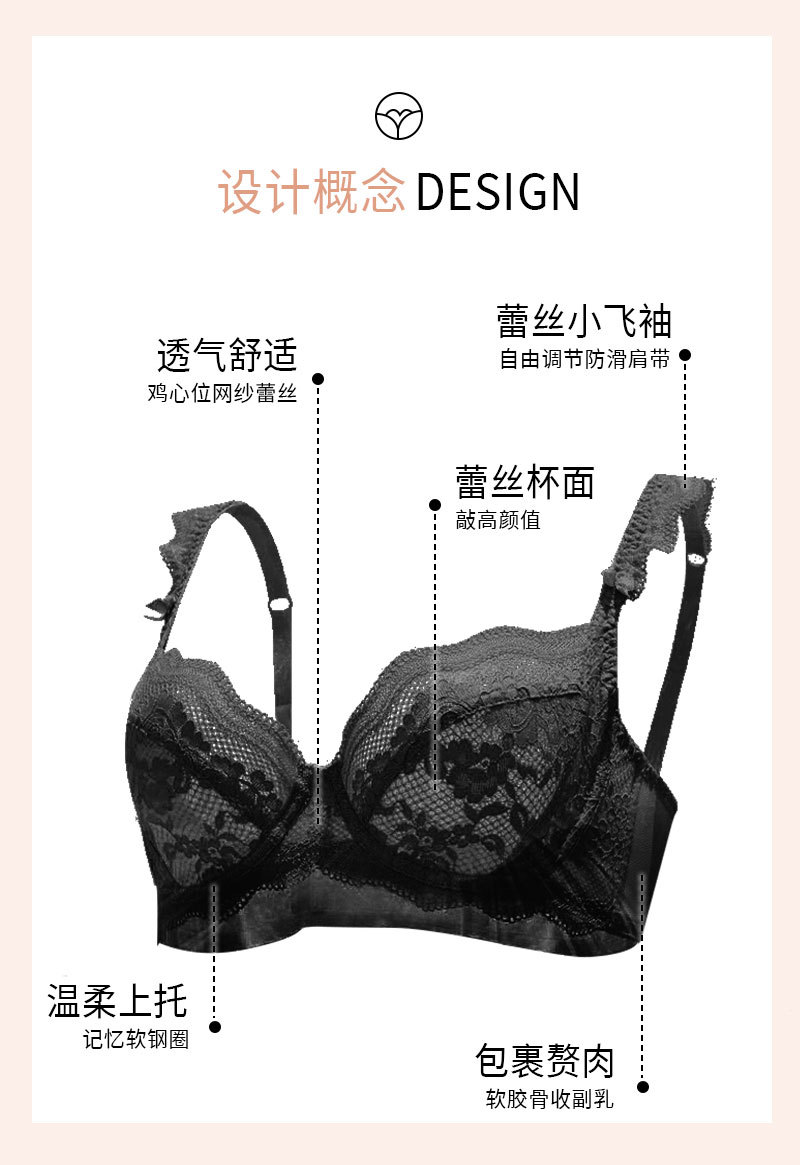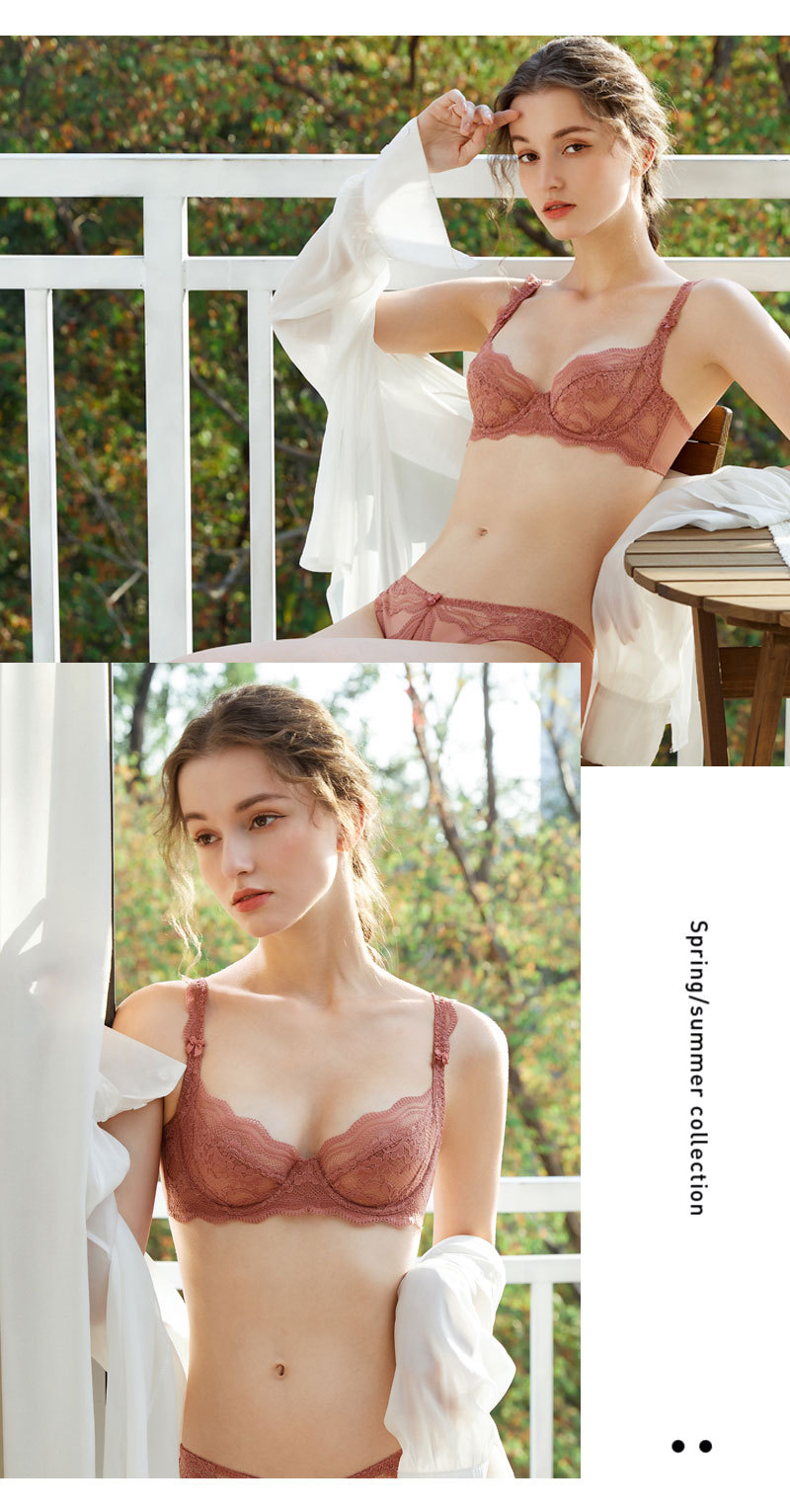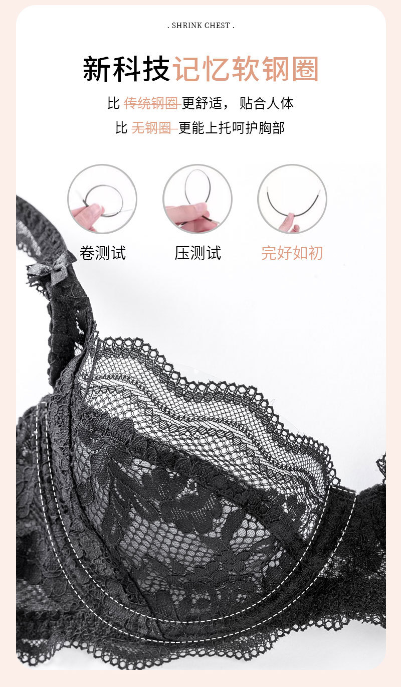 Sujetador rojo transfronterizo ropa interior de encaje sexy traje de mujer de alto grado sin costuras puro deseo pequeño pecho empuja hacia arriba el sujetador Delgado