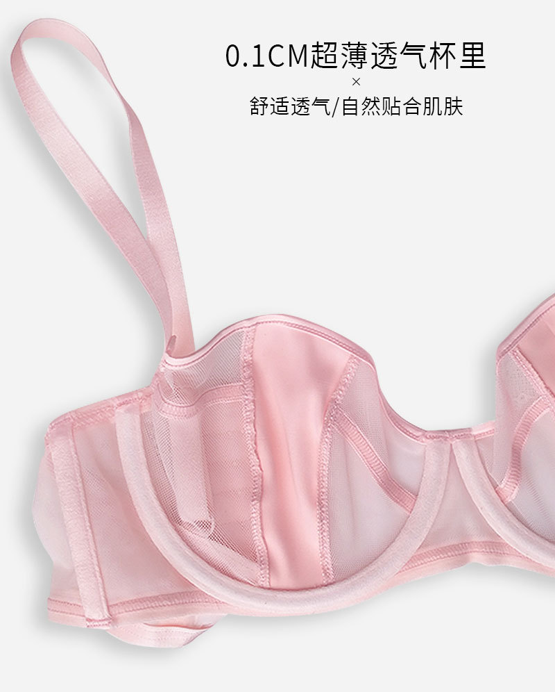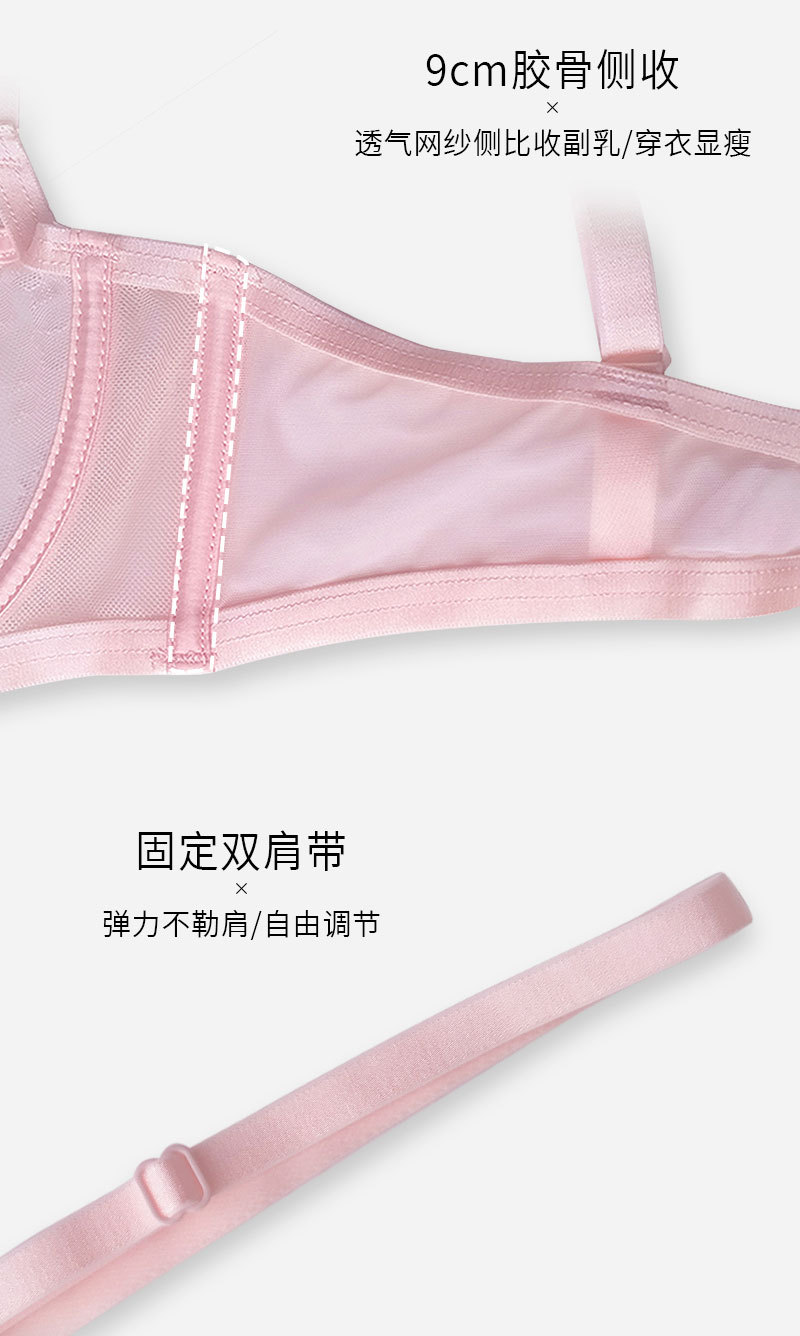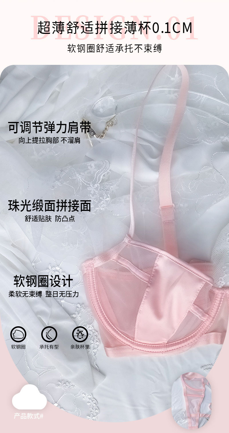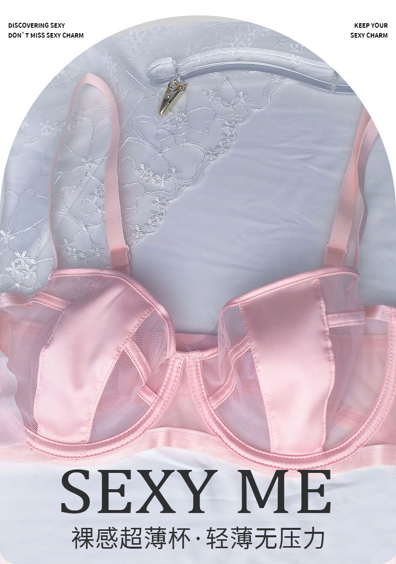 Ropa interior de encaje transfronterizo para mujer, sujetador sexy de verano, puro deseo, transpirable, ultrafino, pechos grandes que muestran un conjunto de ropa interior de sujetador pequeño
