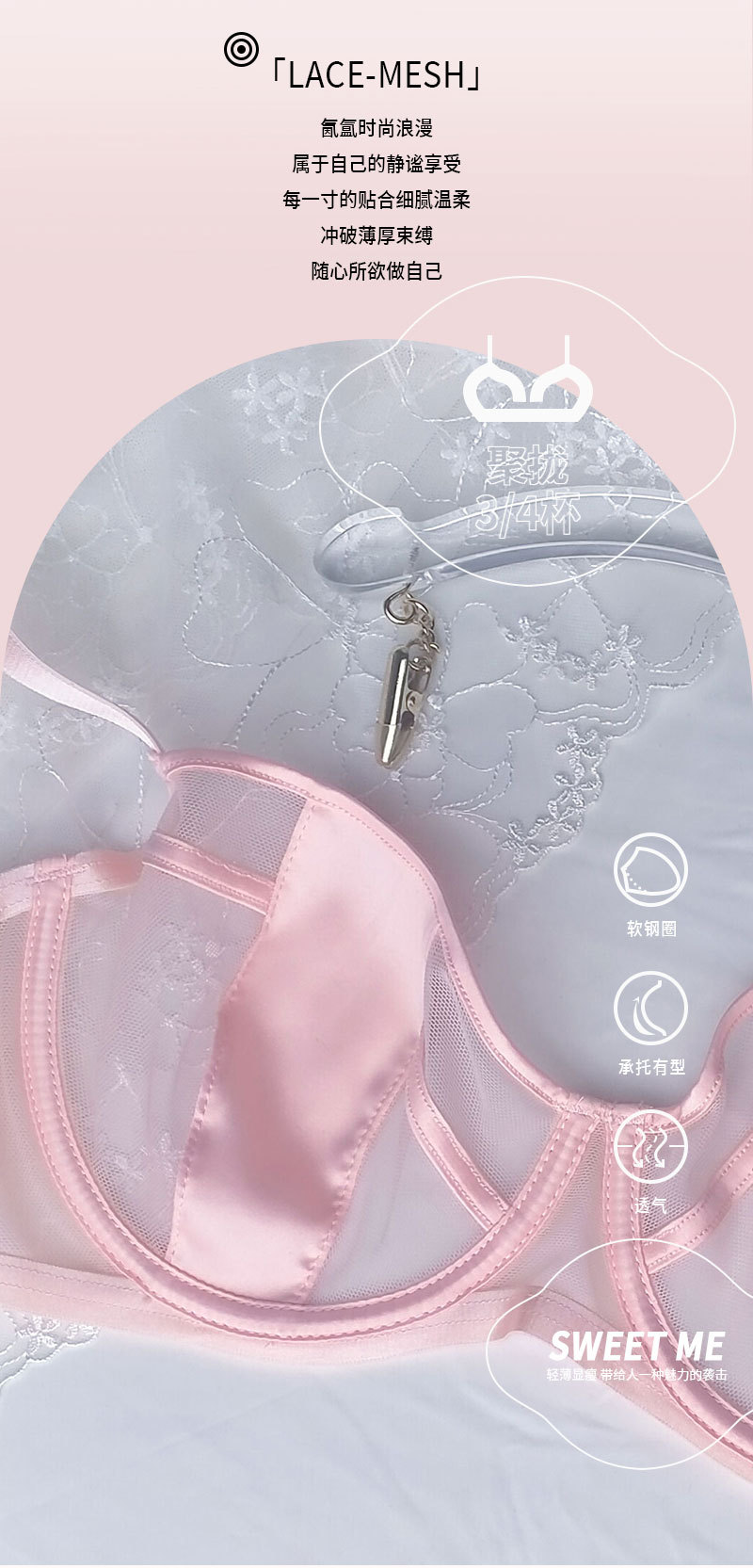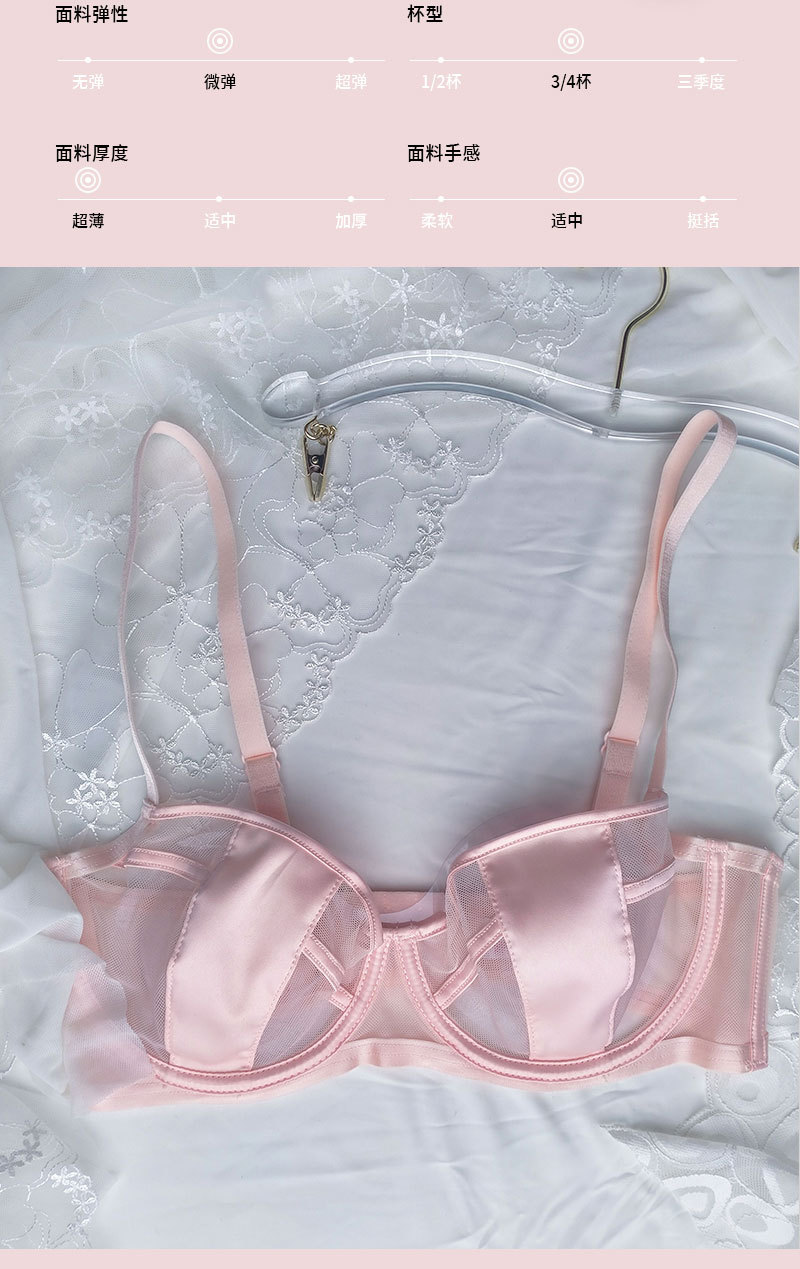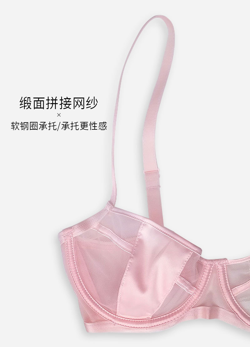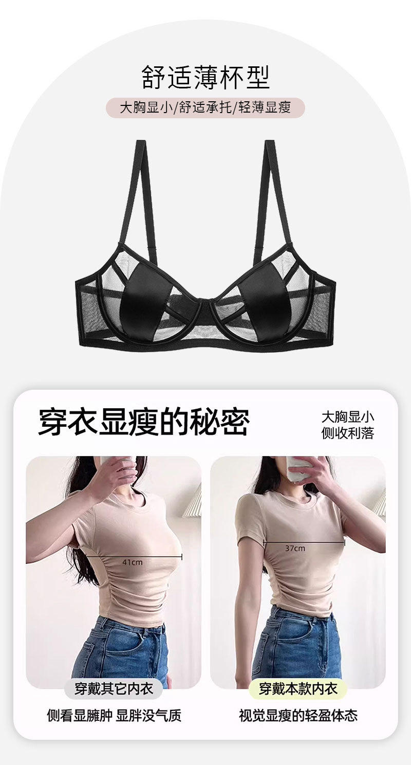 Ropa interior de encaje transfronterizo para mujer, sujetador sexy de verano, puro deseo, transpirable, ultrafino, pechos grandes que muestran un conjunto de ropa interior de sujetador pequeño