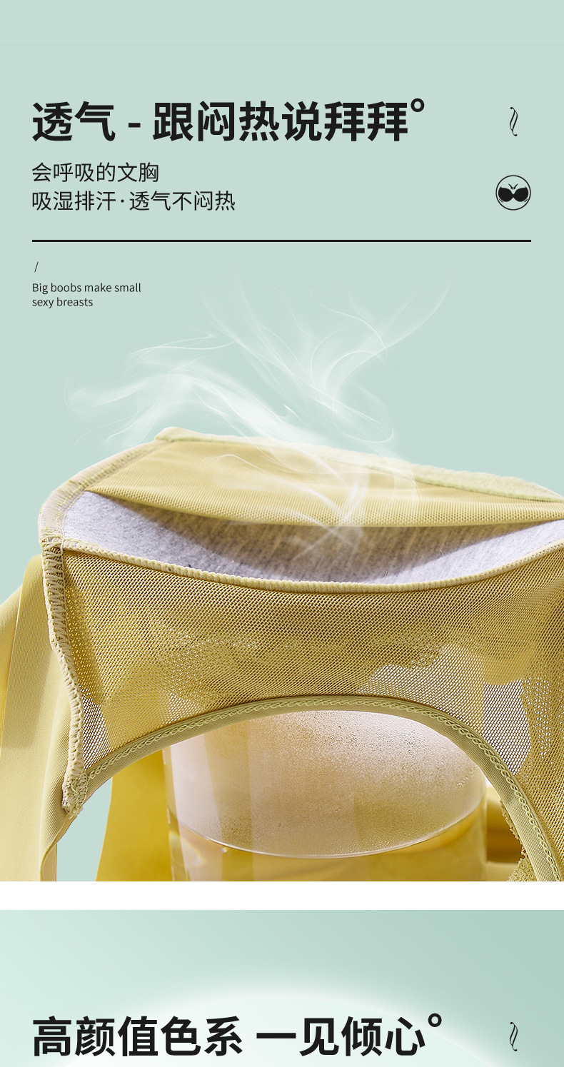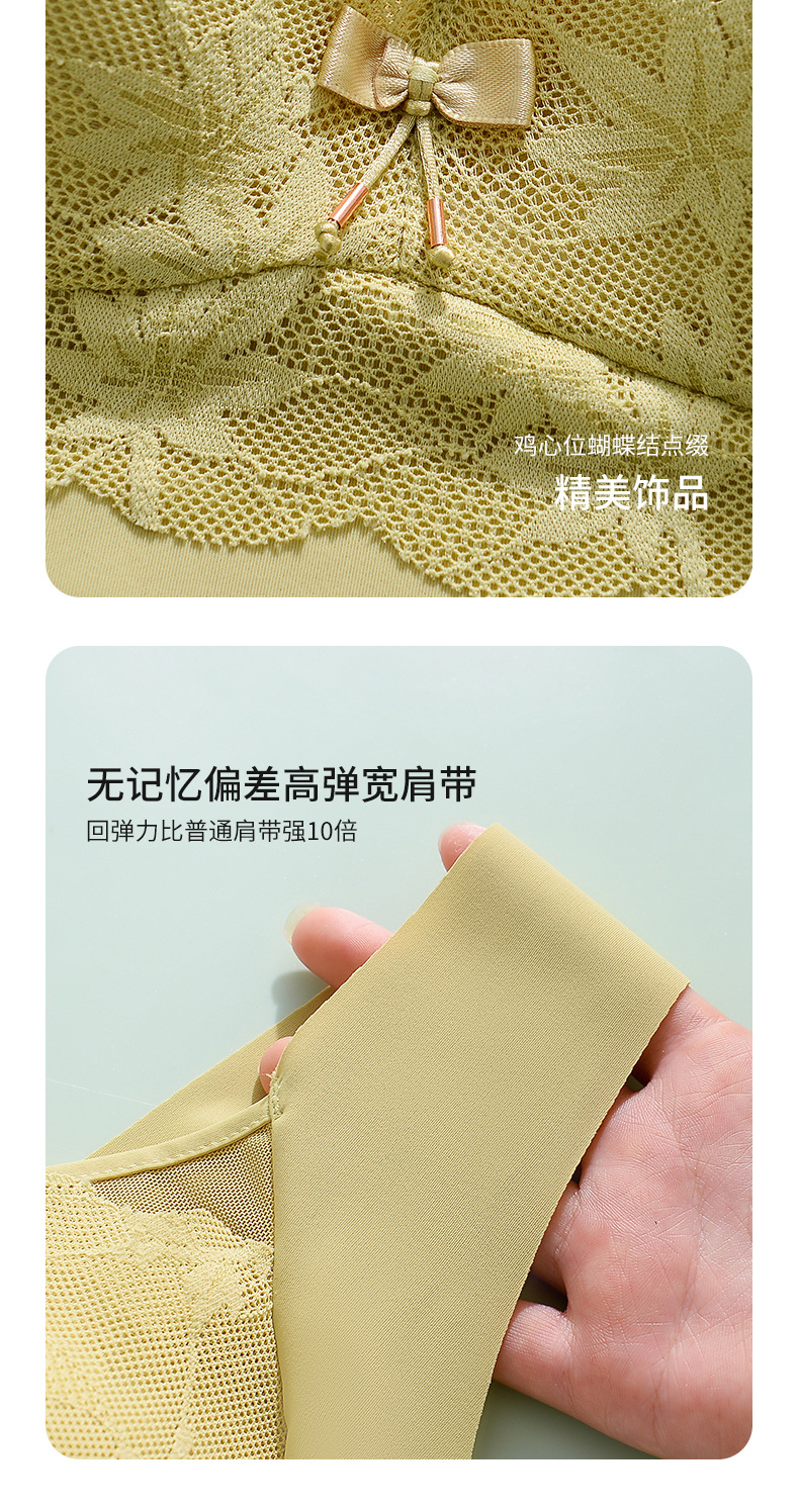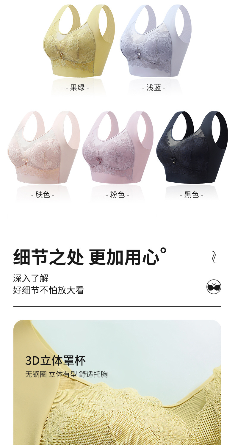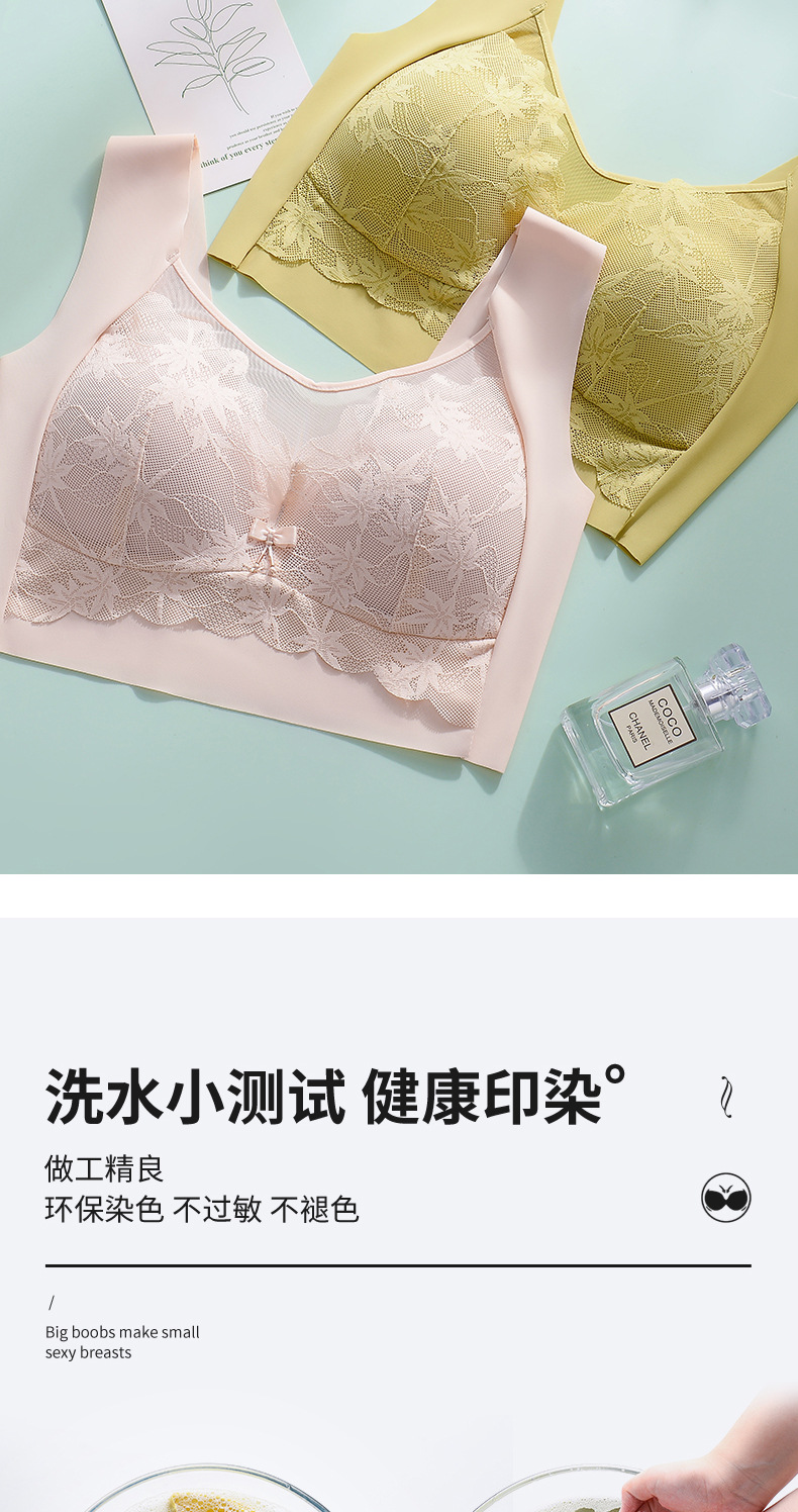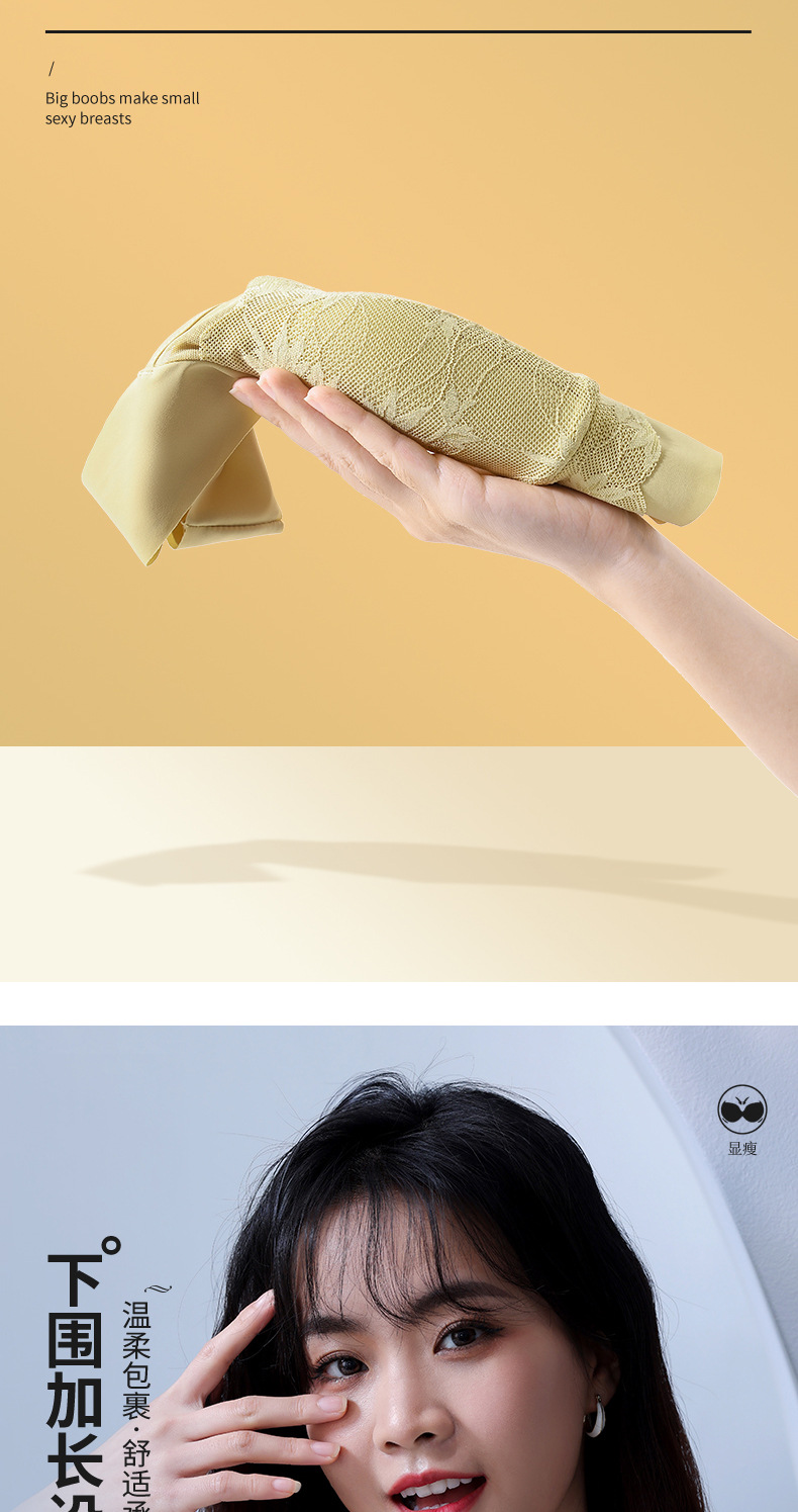 Chaleco envuelto en el pecho con encaje y espalda hermosa, sin anillo de acero, copa fija, leche auxiliar, anti-brillo, sujetador envuelto en el pecho sin costuras de gran tamaño