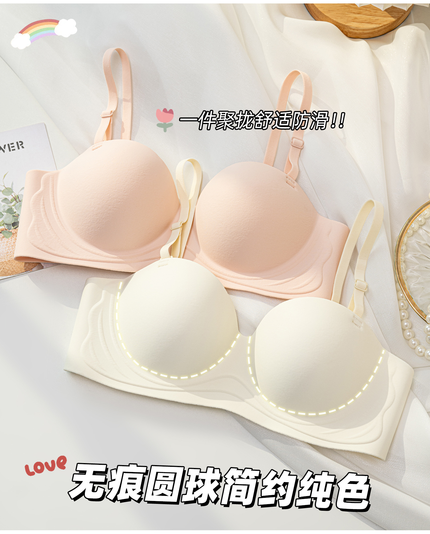 Venta directa de fábrica comercio electrónico transfronterizo sudeste asiático Vietnam Tailandia ropa interior de mujer sin costuras media taza de sujetador anti-caída