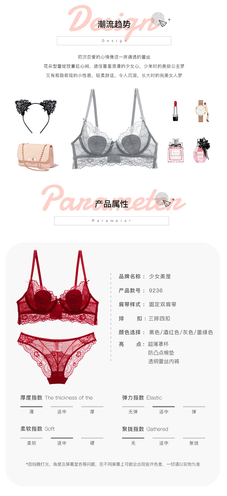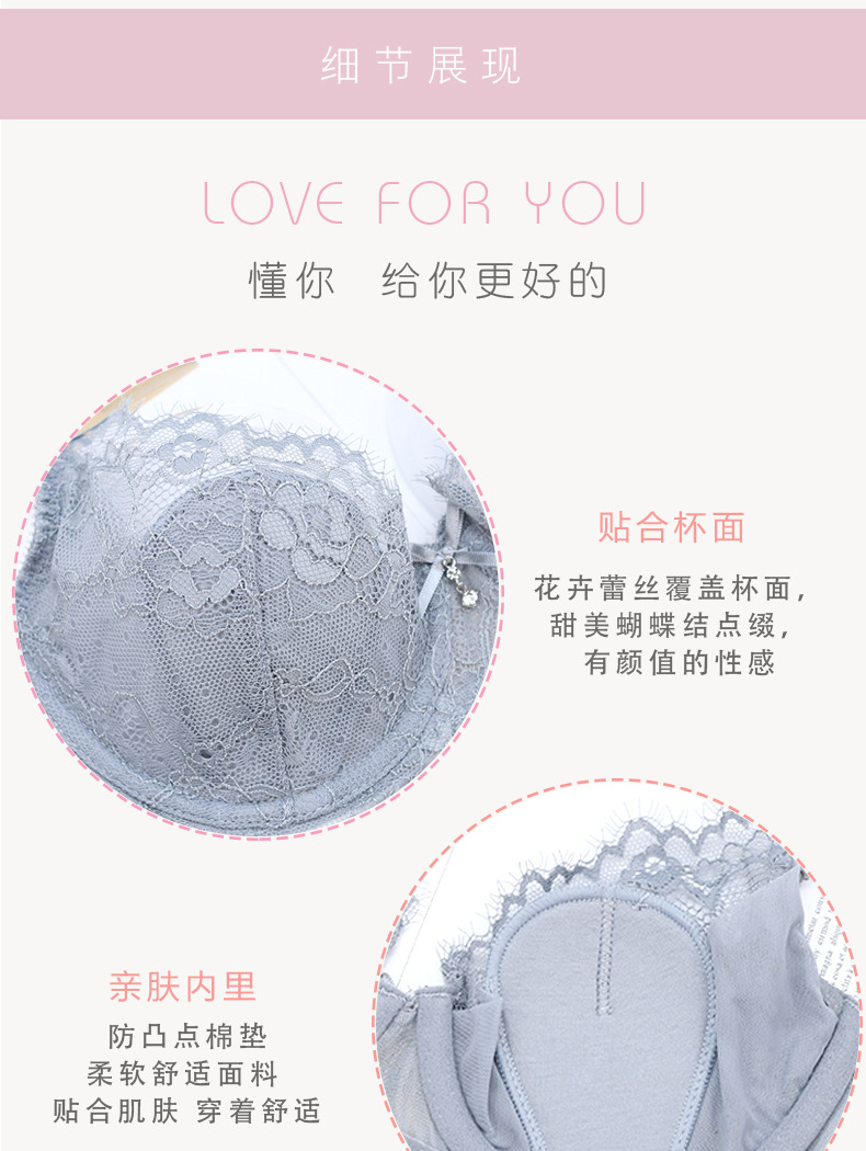 Sexy más tamaño conejo orejas ropa interior anillo de acero cierre mama Shu chica encaje adecuado Sujetador push up