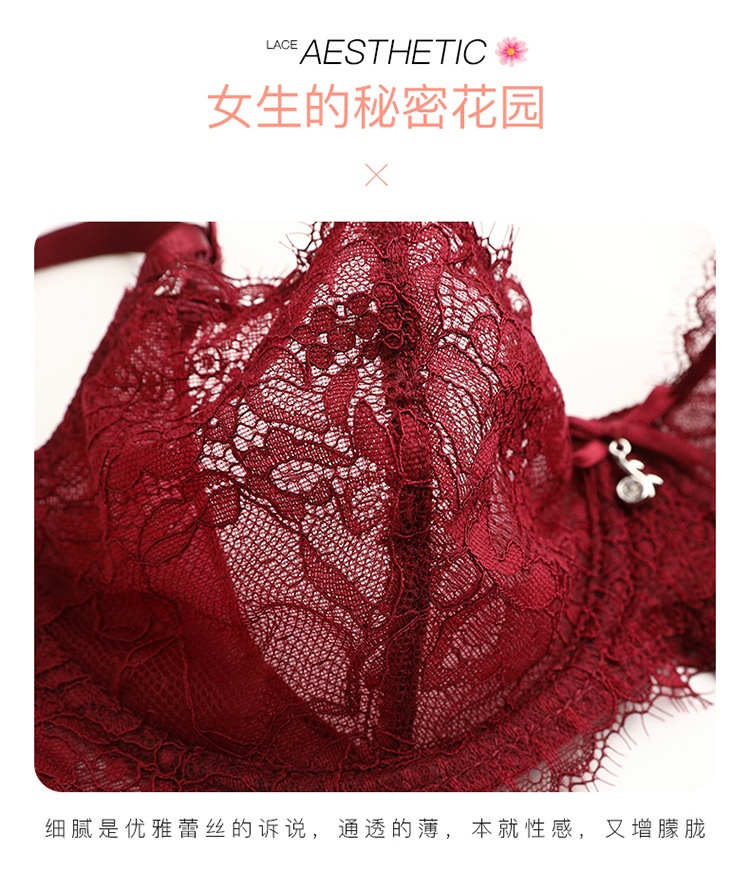 Ropa interior roja traje de encaje sexy puro deseo nacimiento año mujeres sujetador fino pecho grande mostrar pequeña belleza espalda sujetador traje