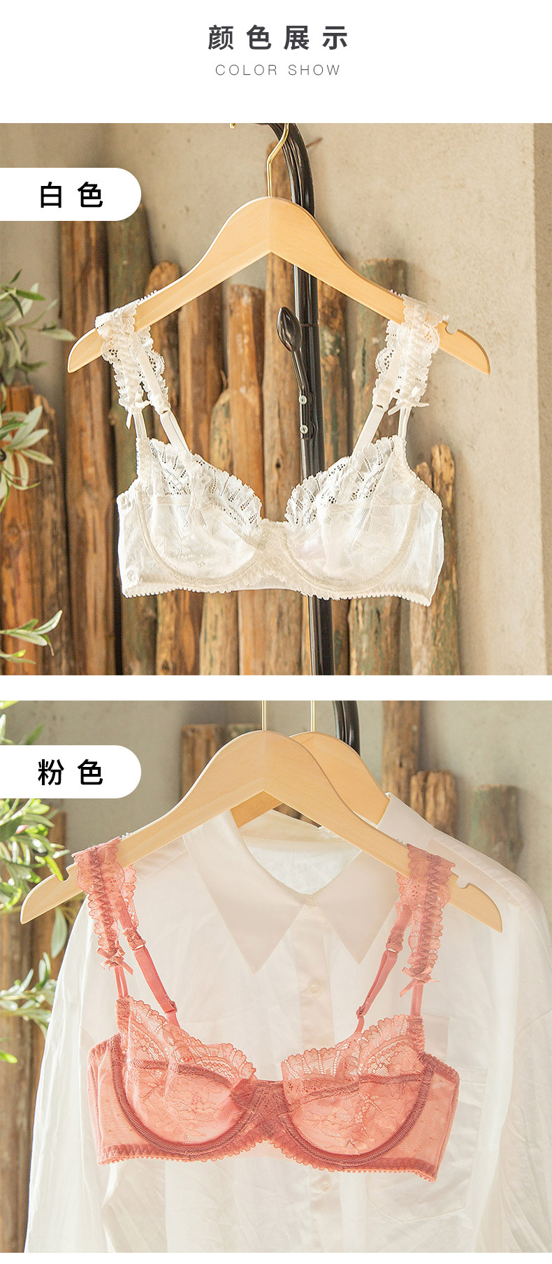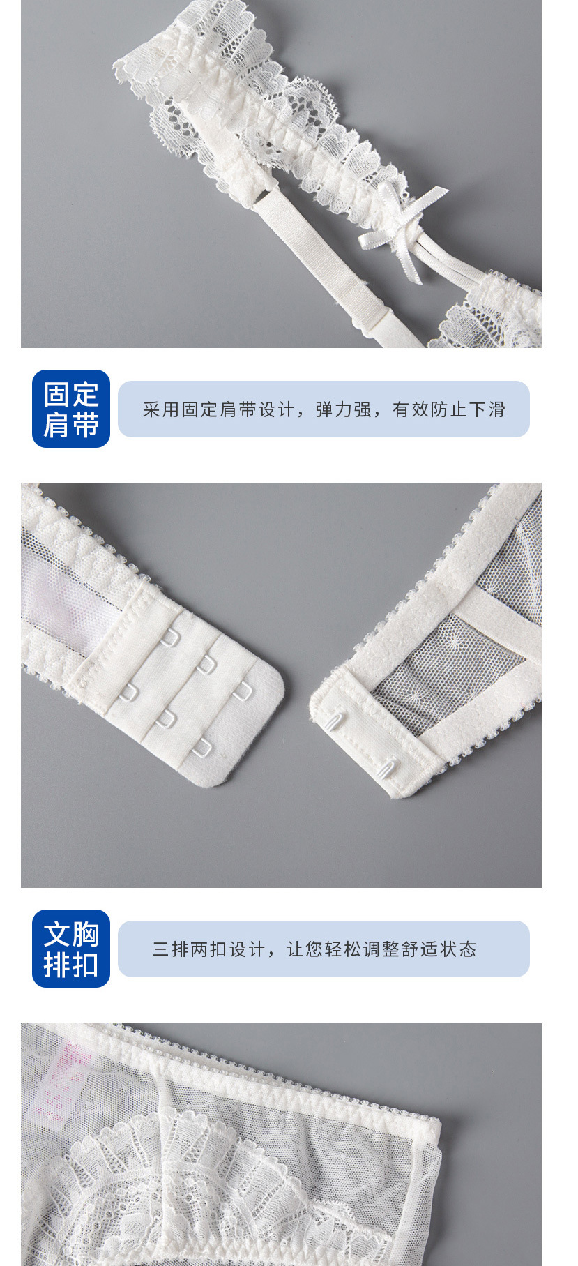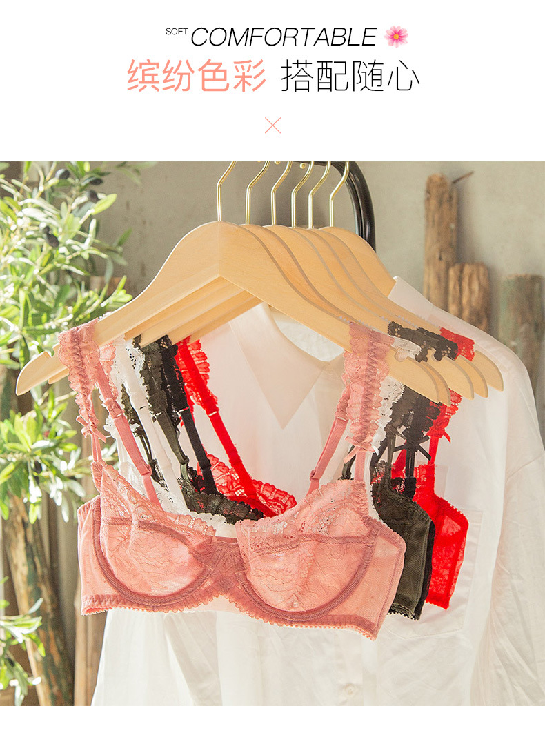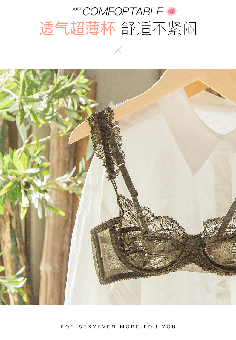 Traje de ropa interior sexy de encaje más tamaño sujetador transparente fino pecho grande lado pequeño cerrado traje de sujetador de mujer antideslizante