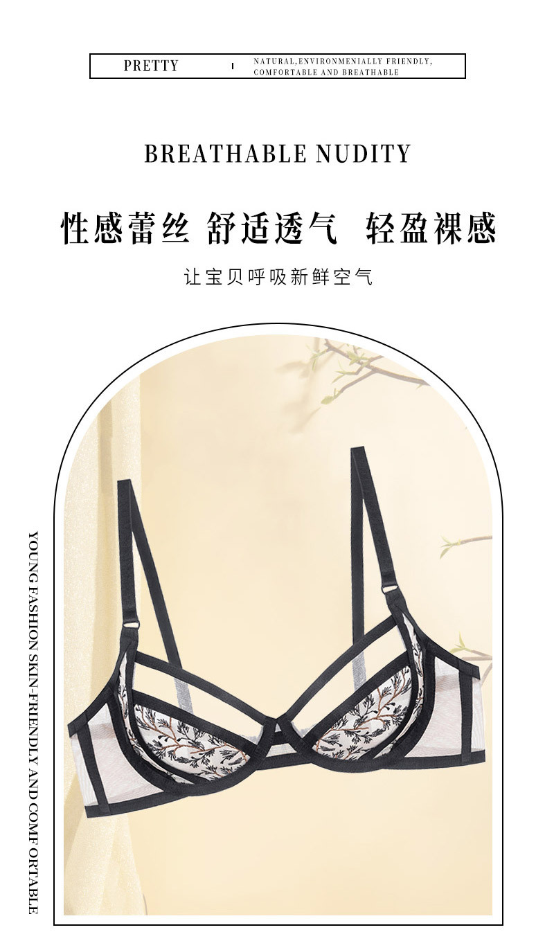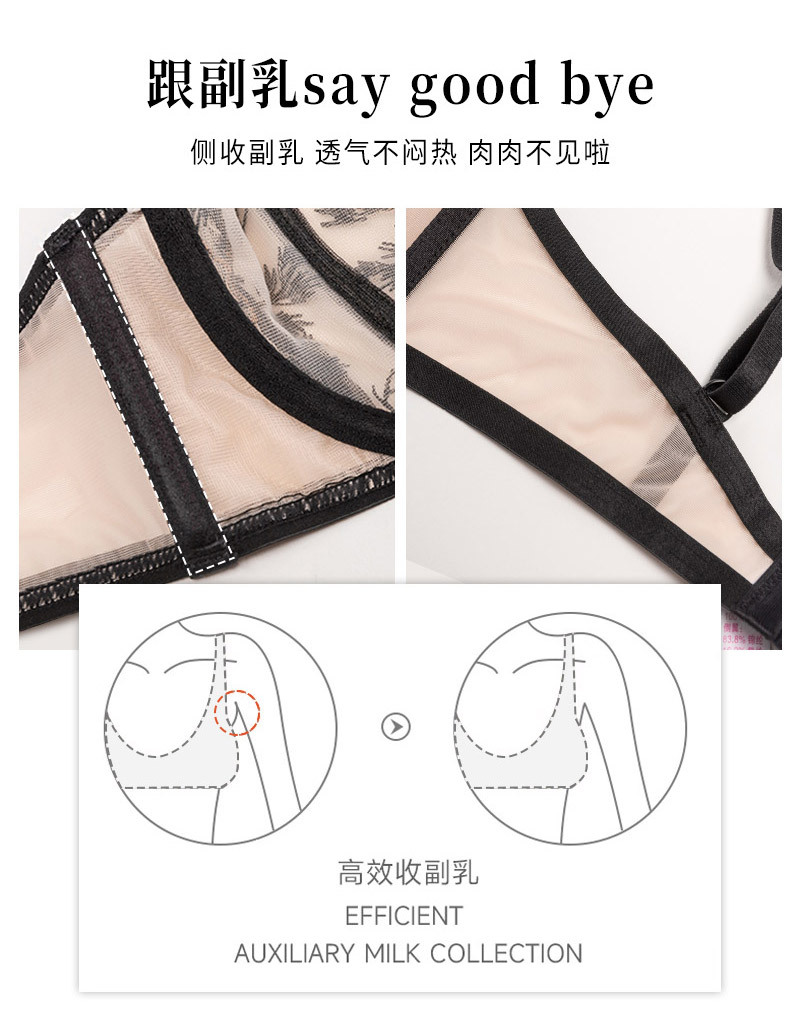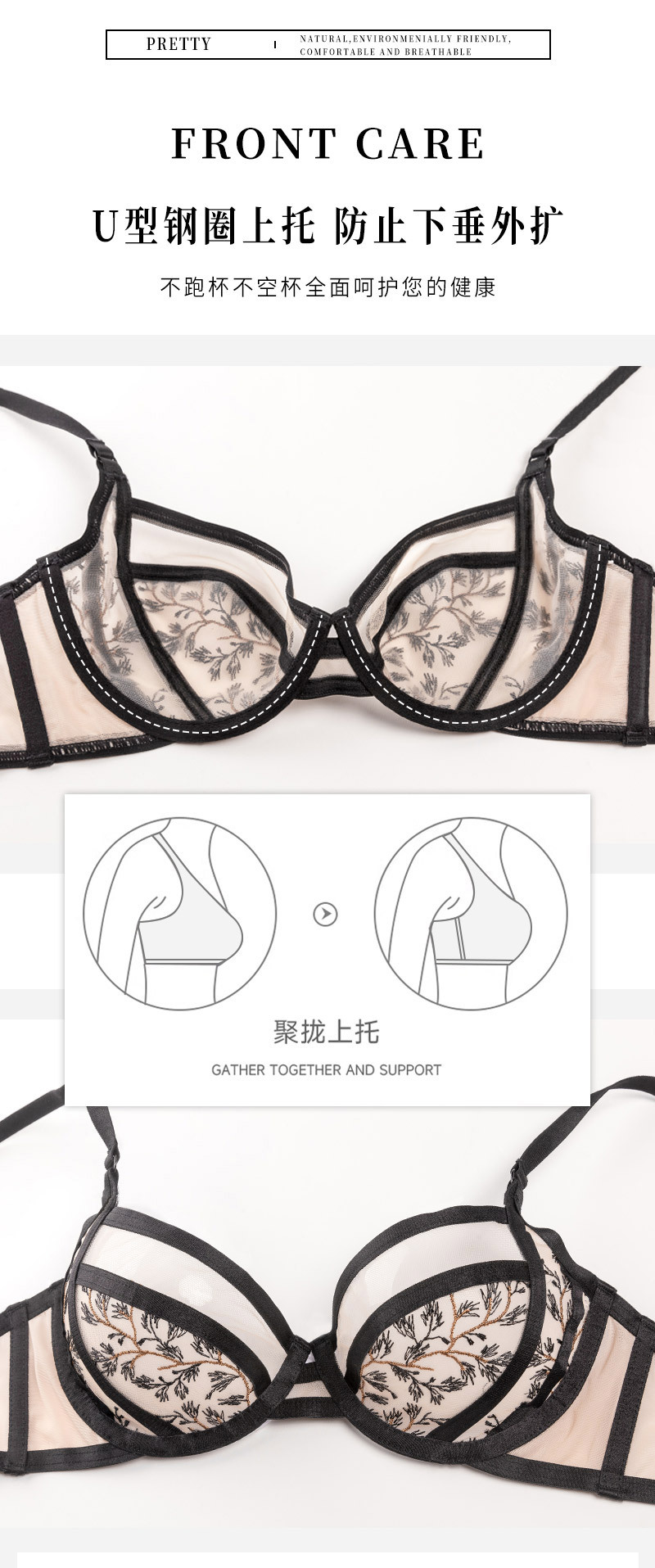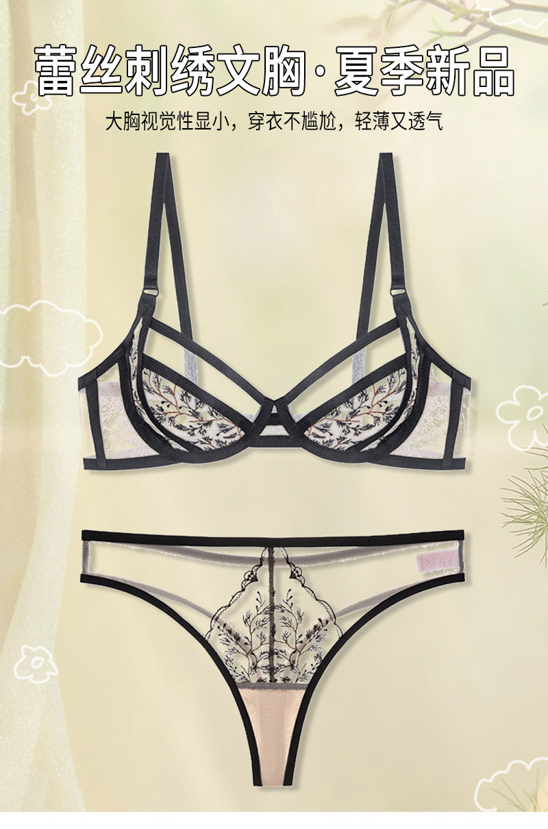 Conjunto de ropa interior sexy Sujetador bordado sexy de verano femenino delgado Sujetador de encaje de alta gama con pechos grandes y pequeños