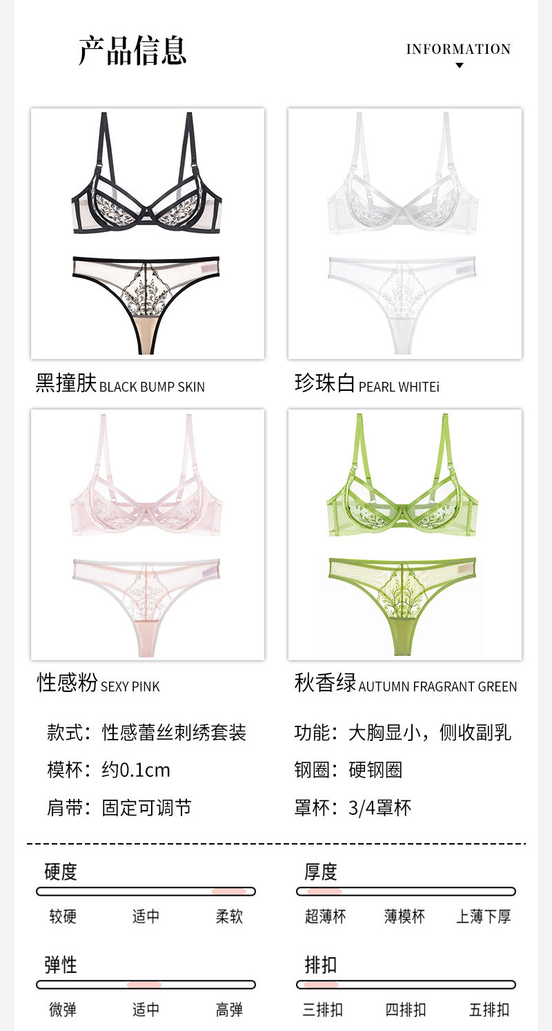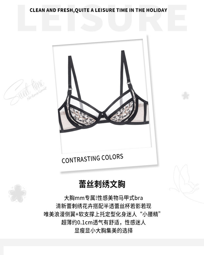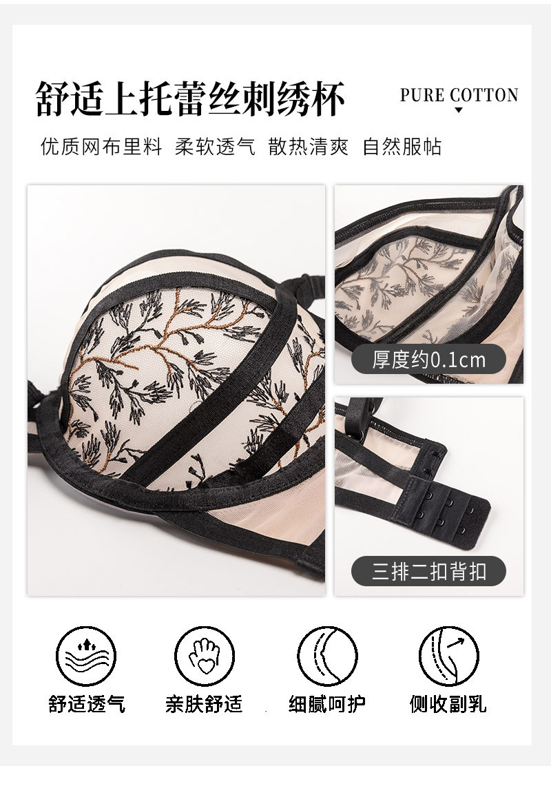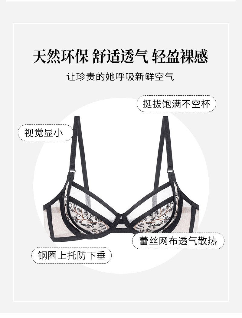 Conjunto de ropa interior sexy Sujetador bordado sexy de verano femenino delgado Sujetador de encaje de alta gama con pechos grandes y pequeños