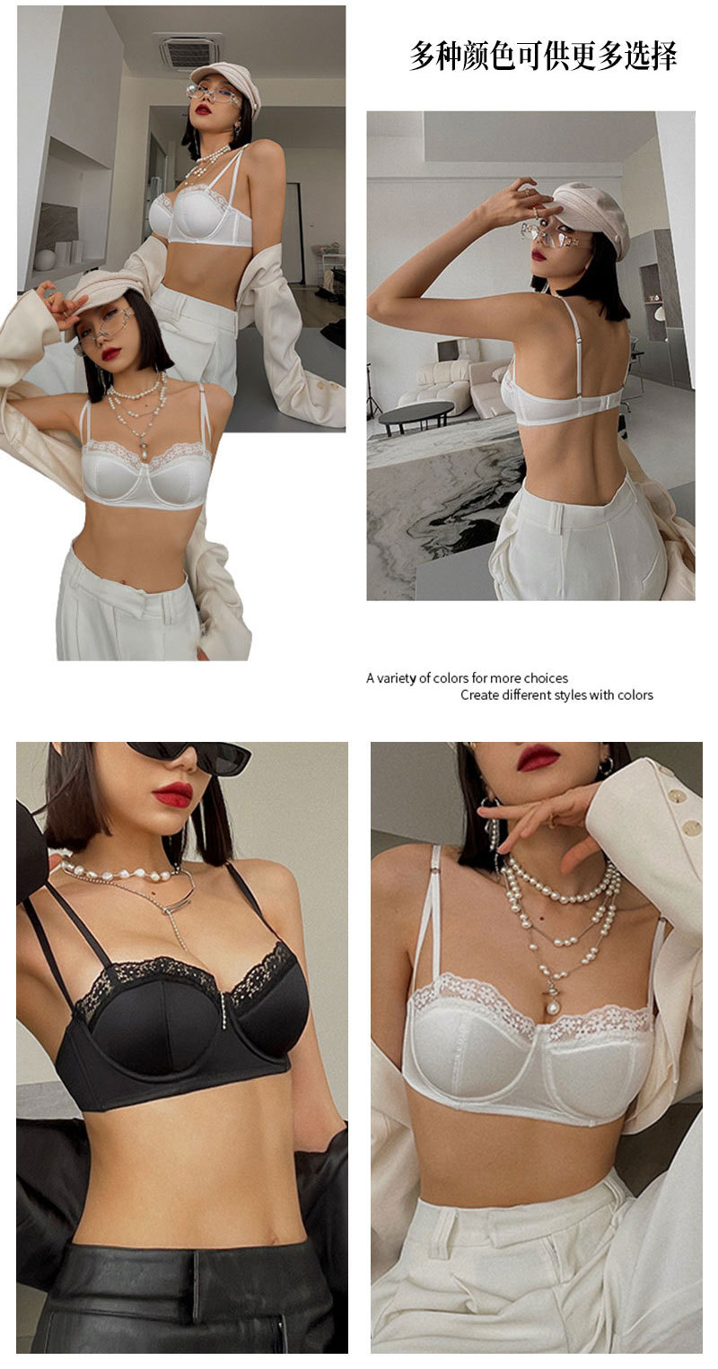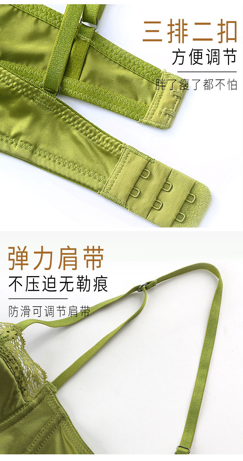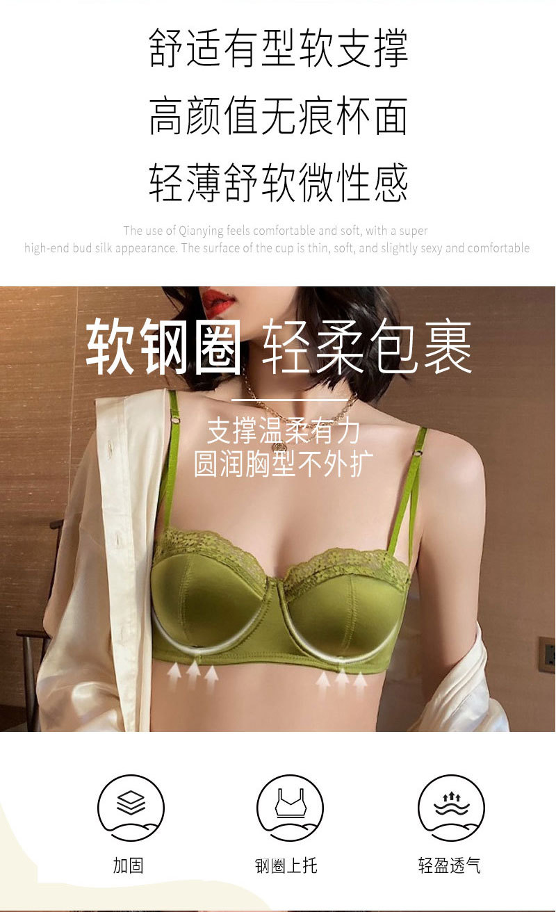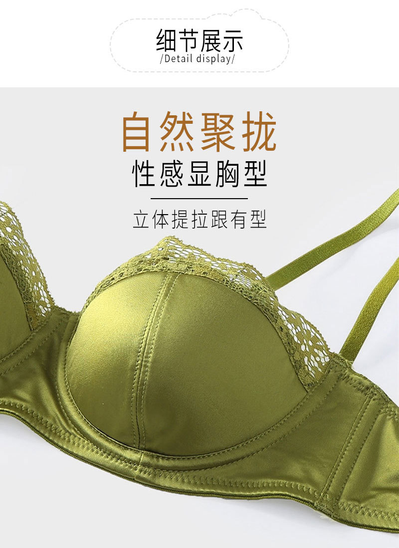 Traje de ropa interior sexy push-up de mujer Traje de ropa interior de pecho pequeño de seda francesa Anillo de acero suave Soporte superior Traje de sujetador de verano