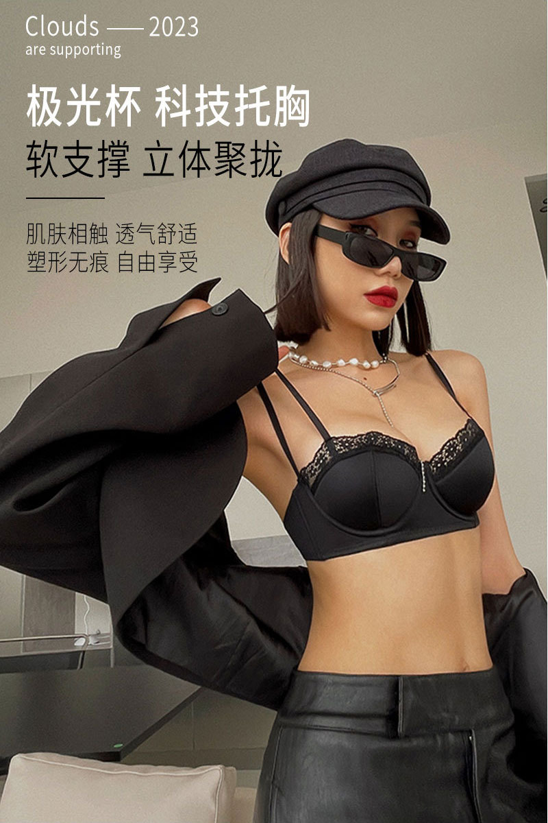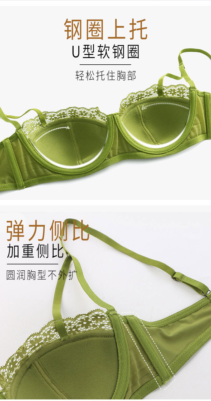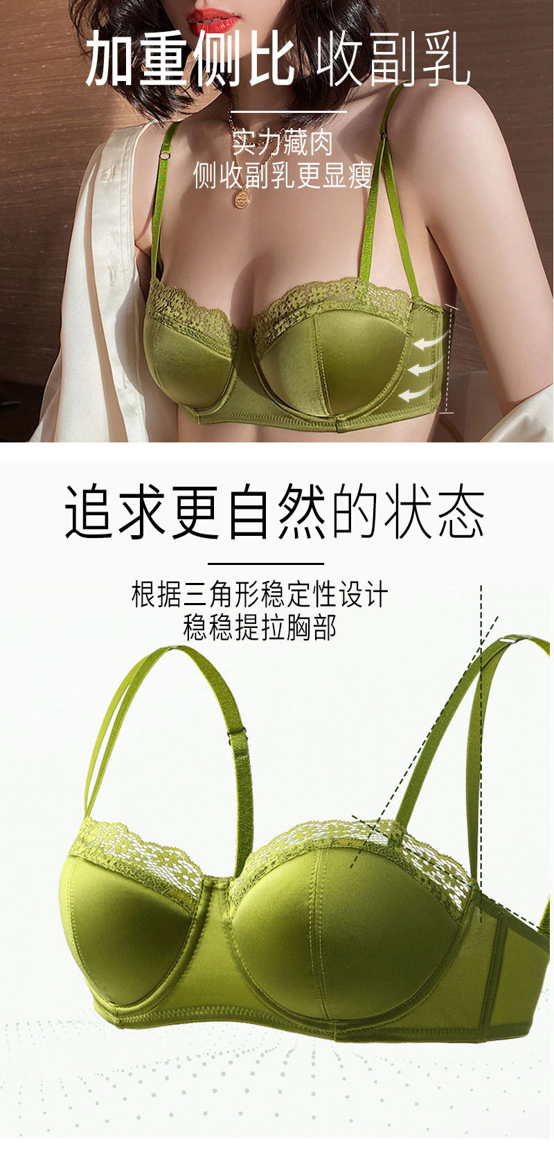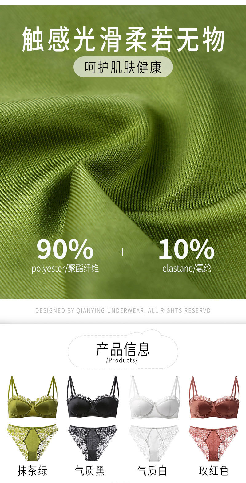 Traje de ropa interior sexy push-up de mujer Traje de ropa interior de pecho pequeño de seda francesa Anillo de acero suave Soporte superior Traje de sujetador de verano
