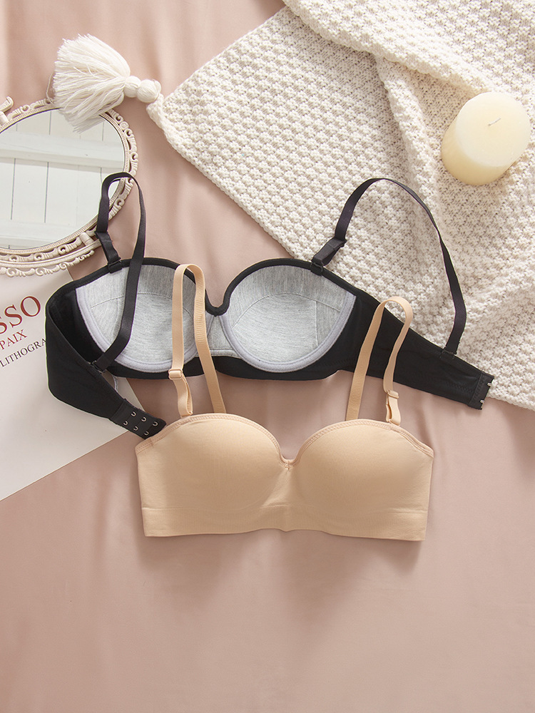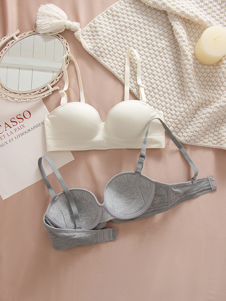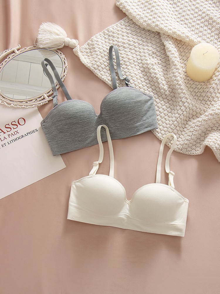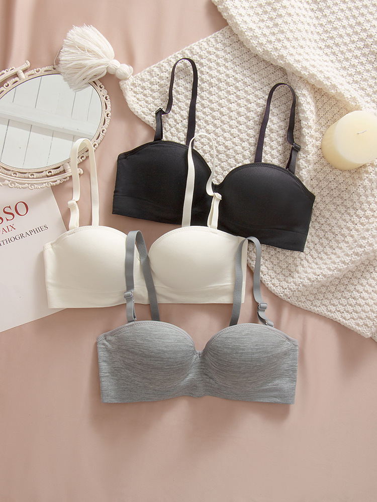 Estilo japonés simple chica sin tirantes invisible media taza sexy ropa interior invisible de las mujeres de carbón de bambú de algodón sujetador agradable a la piel 1001