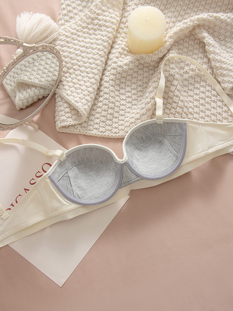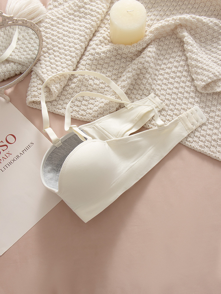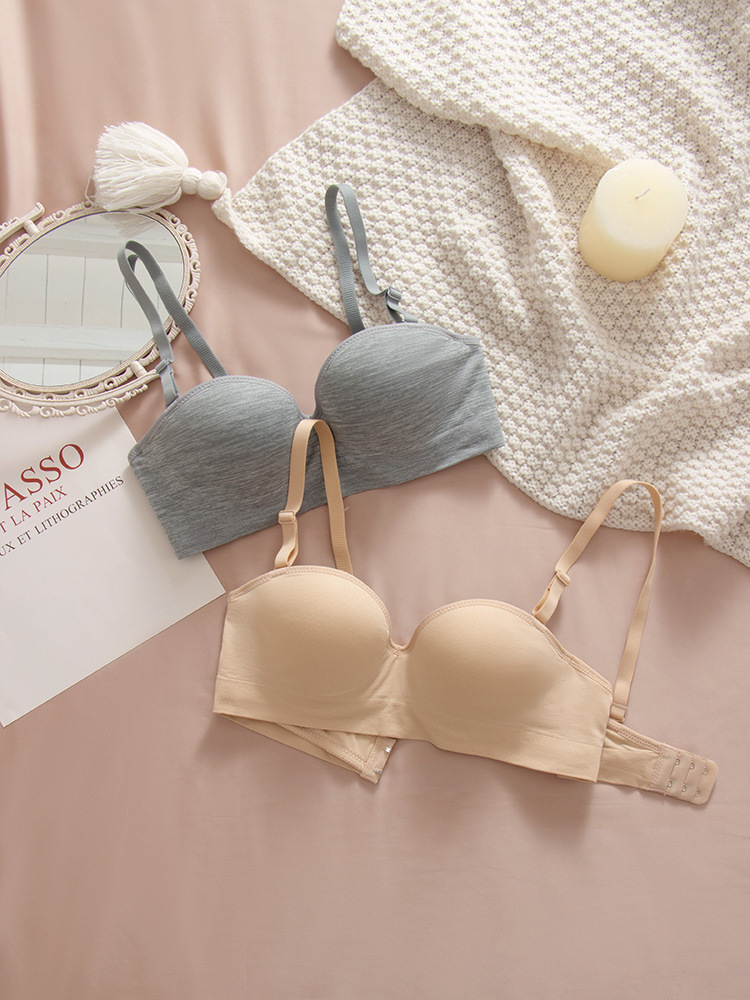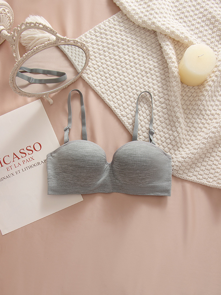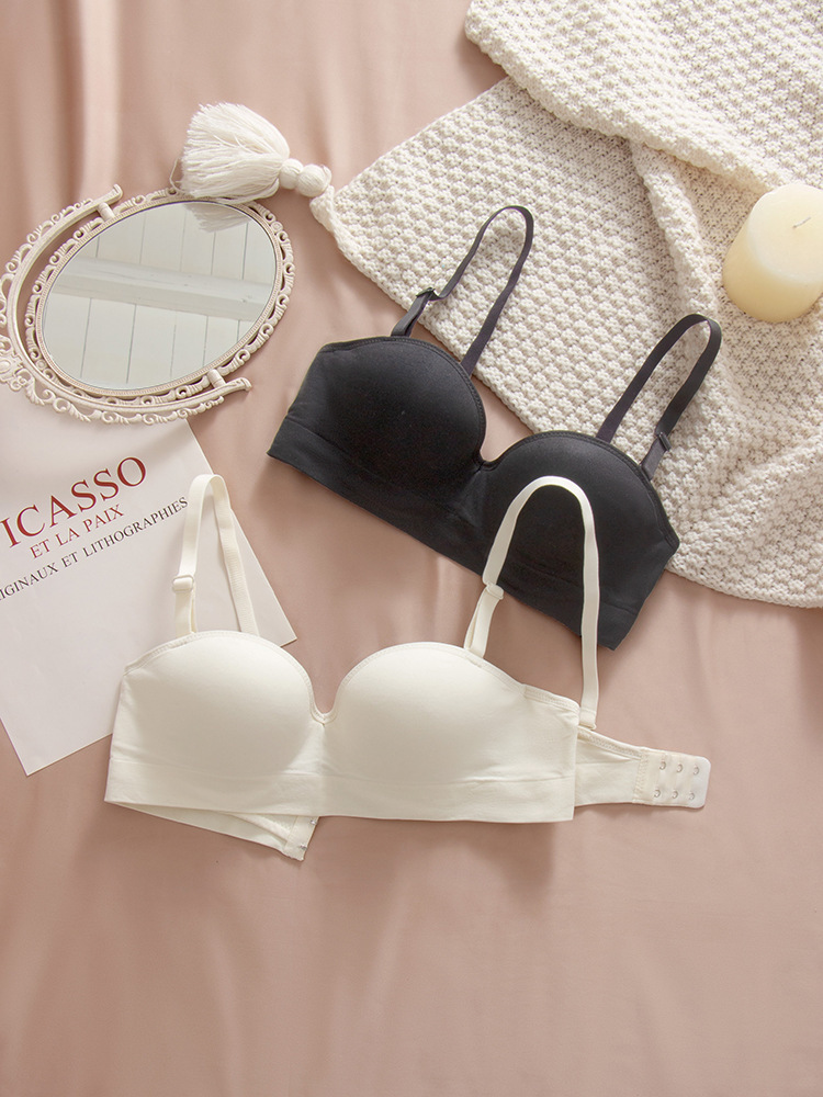 Estilo japonés simple chica sin tirantes invisible media taza sexy ropa interior invisible de las mujeres de carbón de bambú de algodón sujetador agradable a la piel 1001