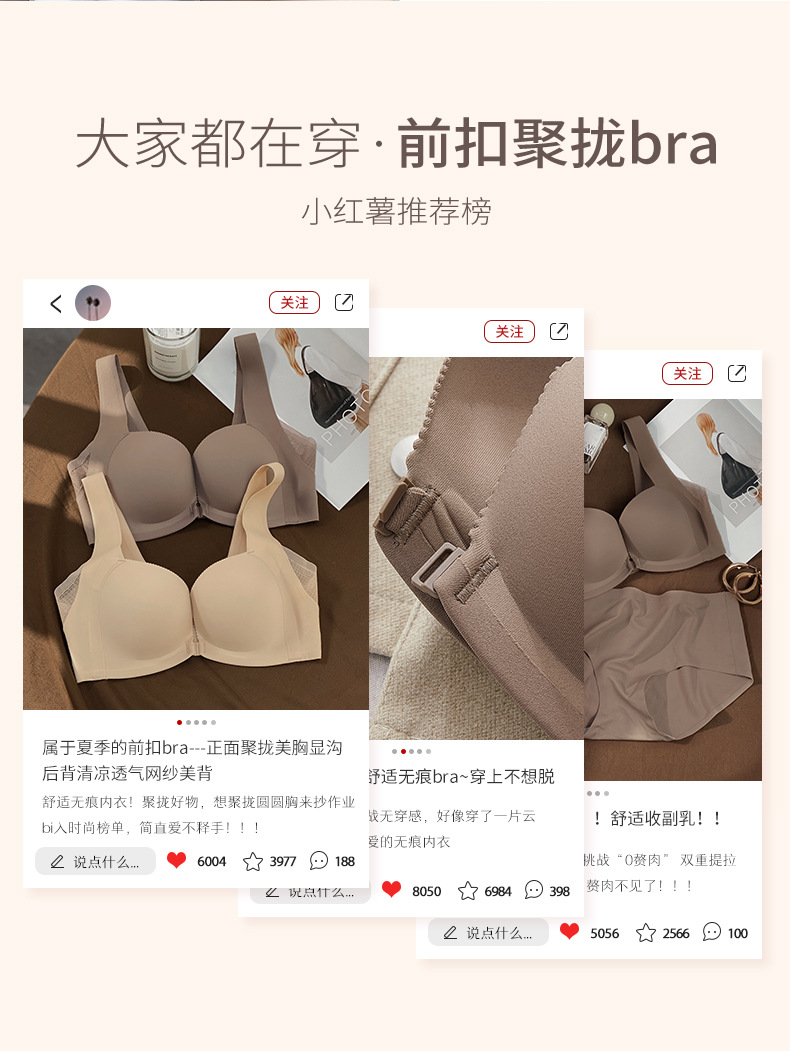 6350 hebilla delantera empuja hacia arriba de cuatro esquinas Copa belleza espalda ropa interior pecho grande cómodo sin costuras ropa interior mejorada lado sujetador de mama