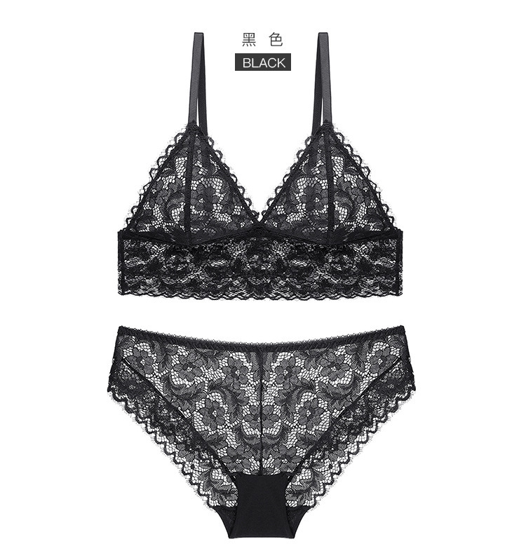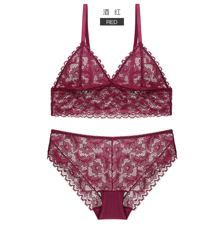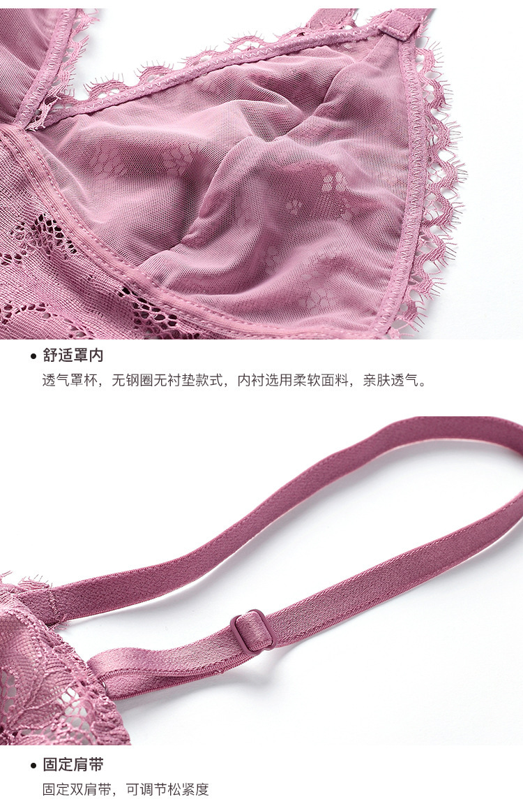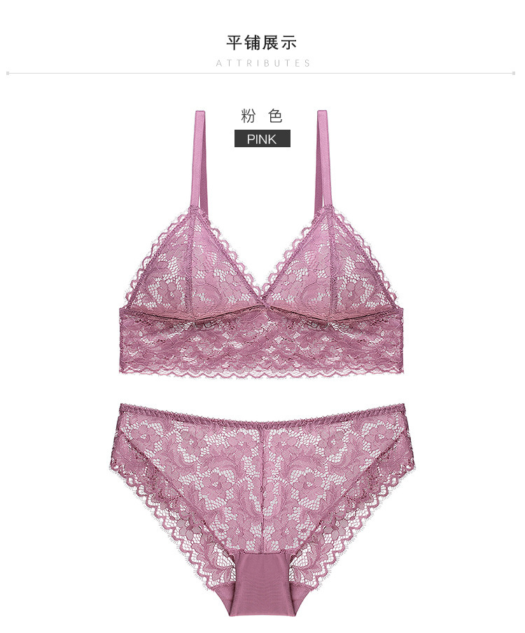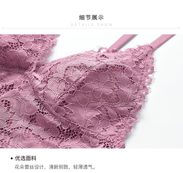 Lencería francesa sexy transfronteriza Sujetador fino puro Sujetador de copa triangular sin anillo de acero, pecho grande, ropa interior pequeña de gran tamaño