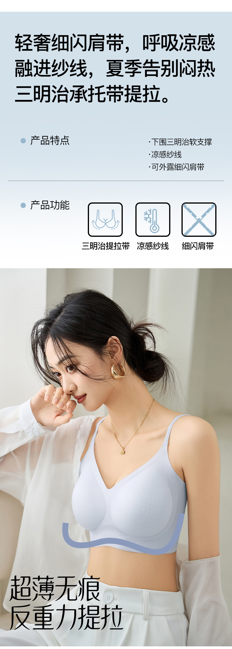 Sujetador sin costuras con tirantes de soporte suave de seda de hielo