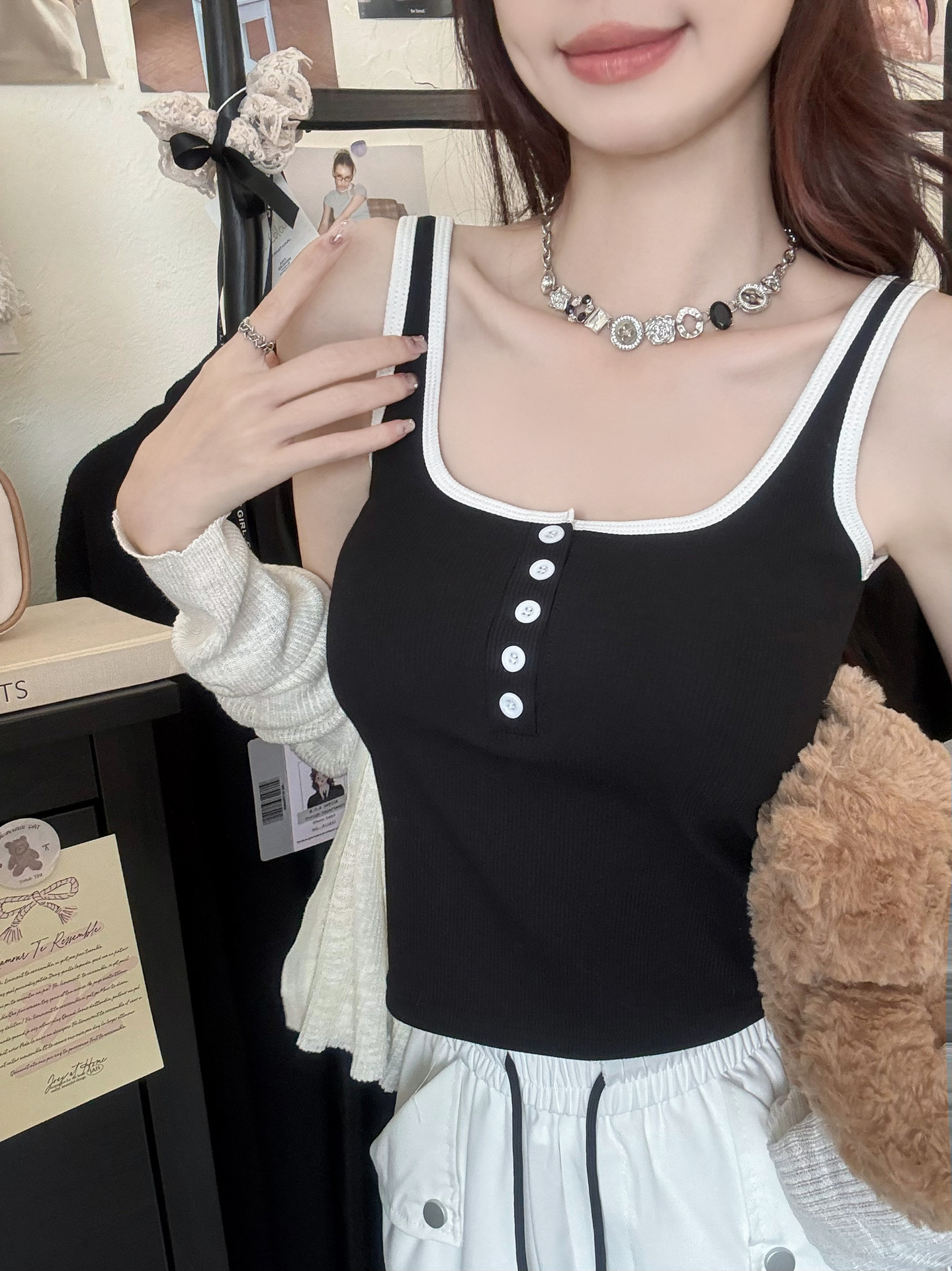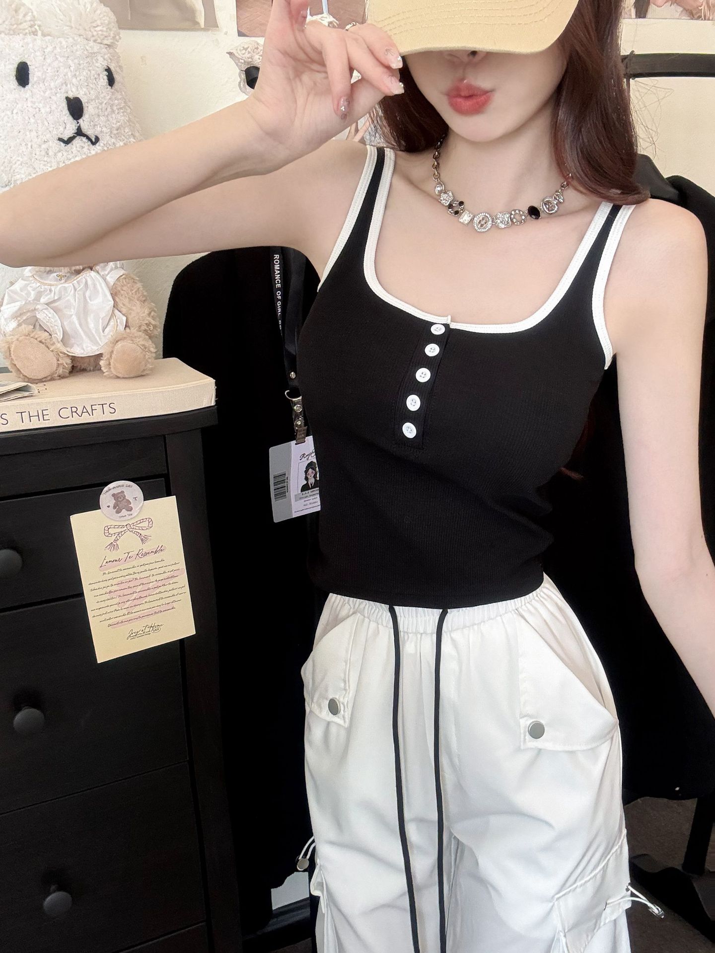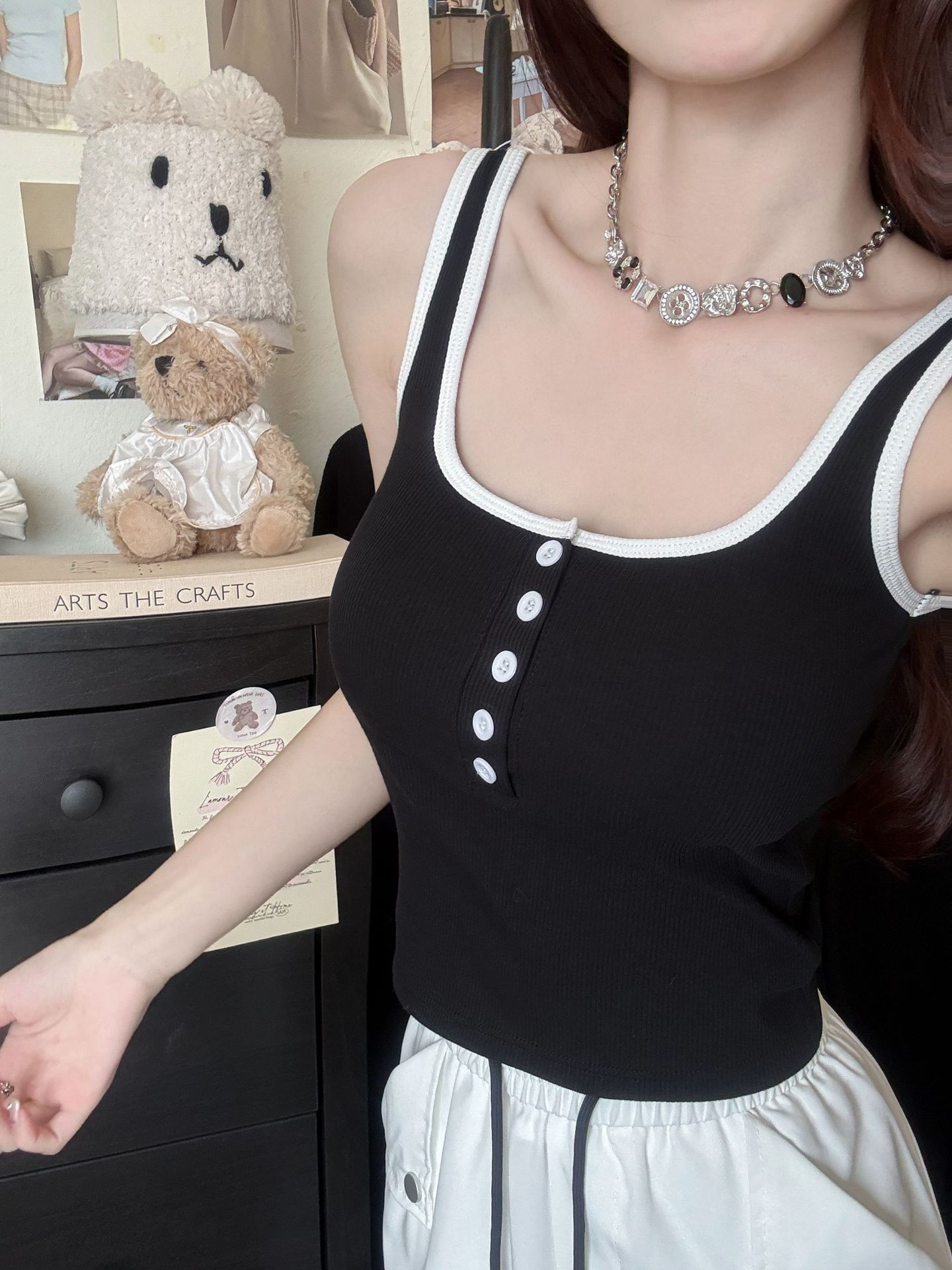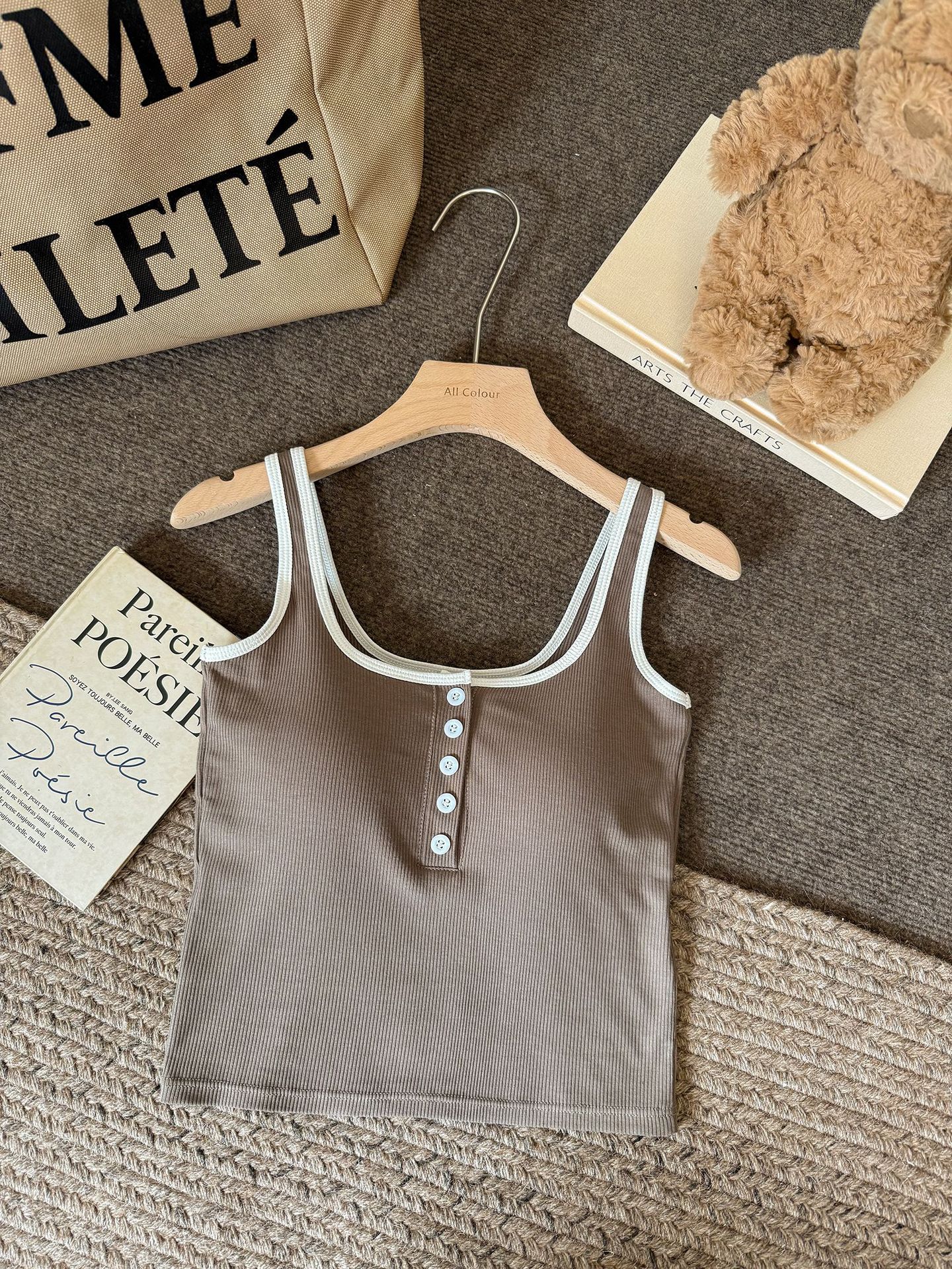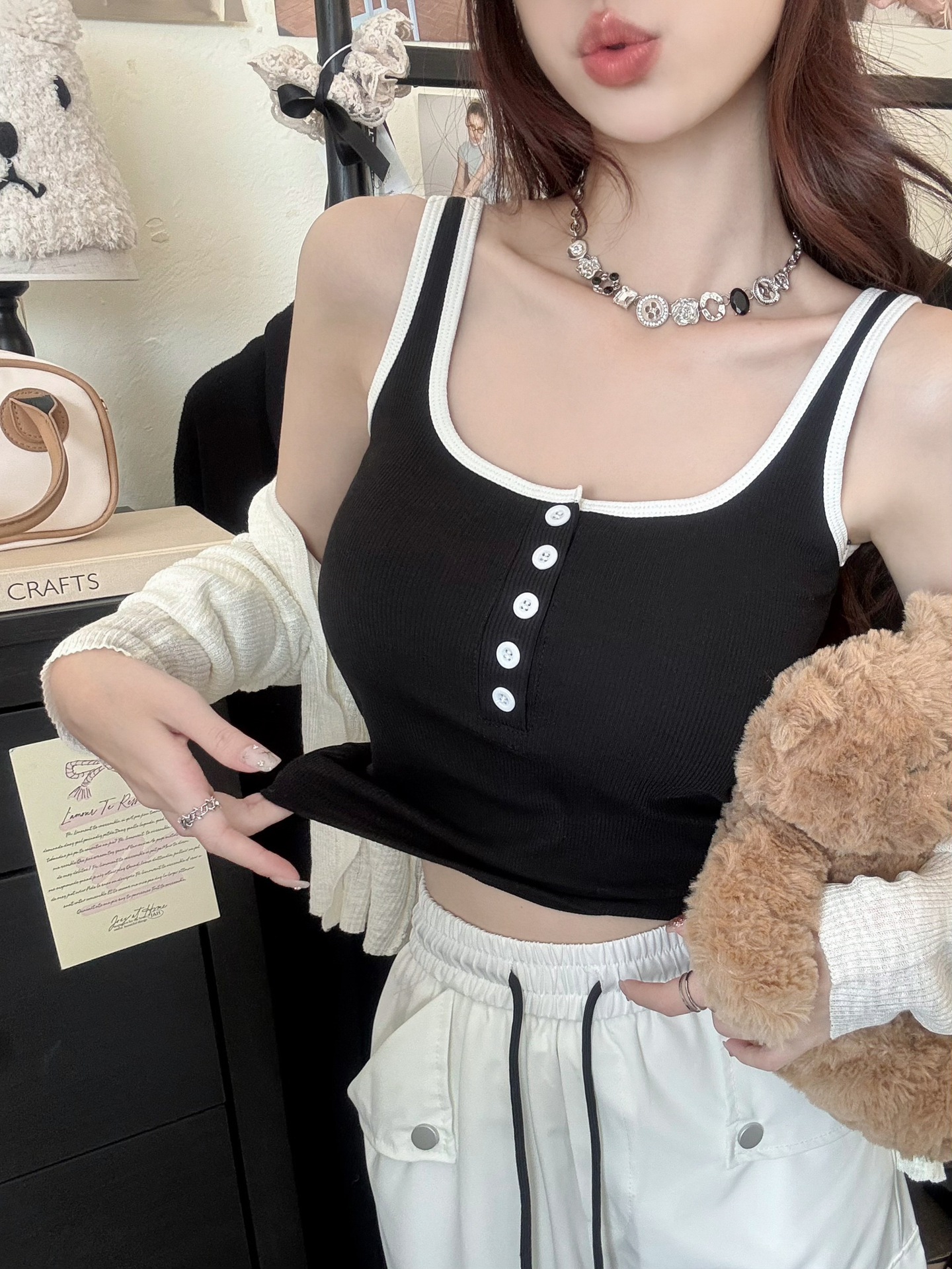 2025 nueva camisola de color de contraste de espalda hermosa para mujer almohadilla fija para el pecho interior y exterior con botones de uso exterior chaleco de fondo de todo fósforo para mujer