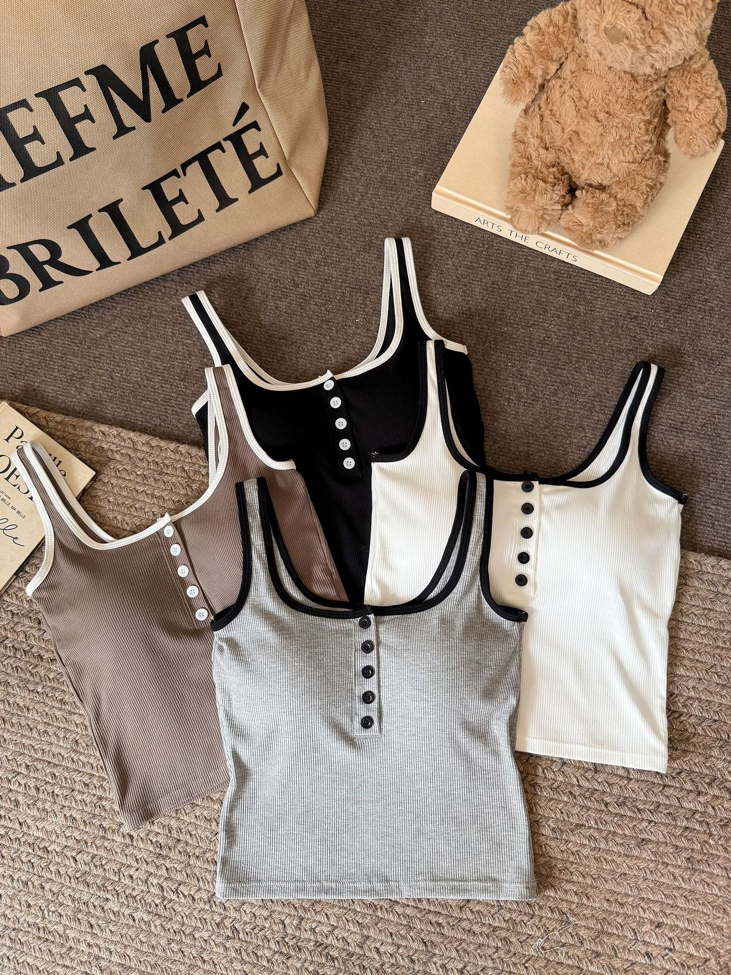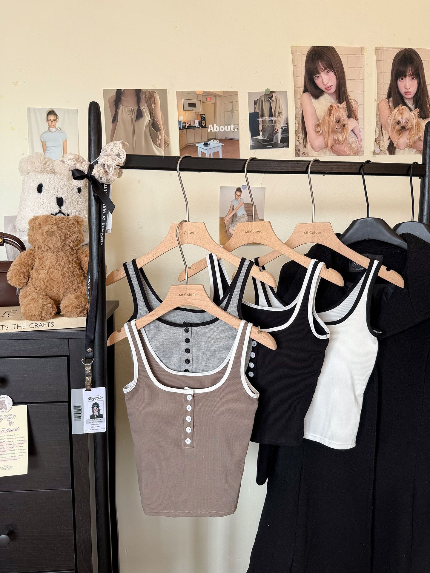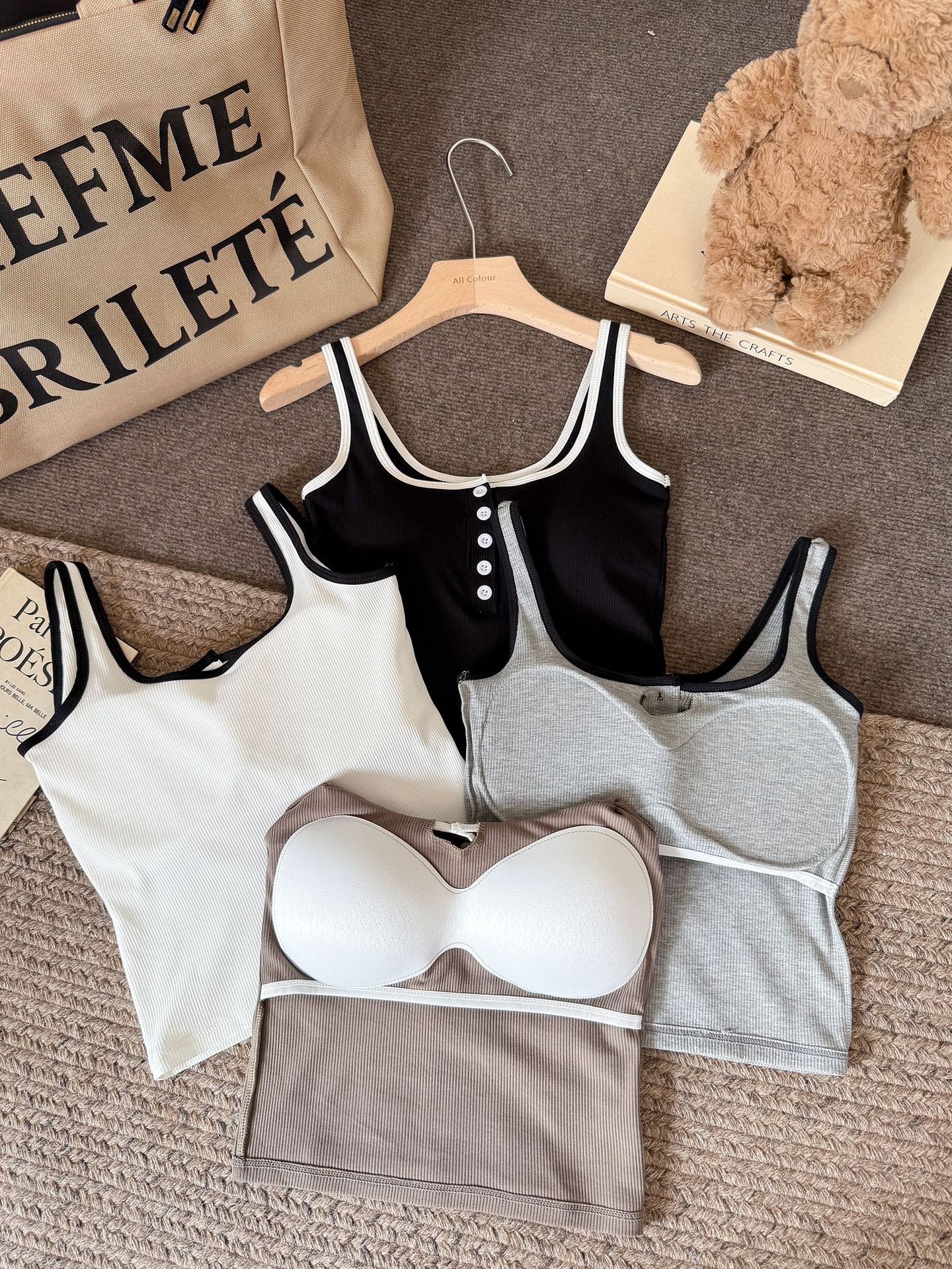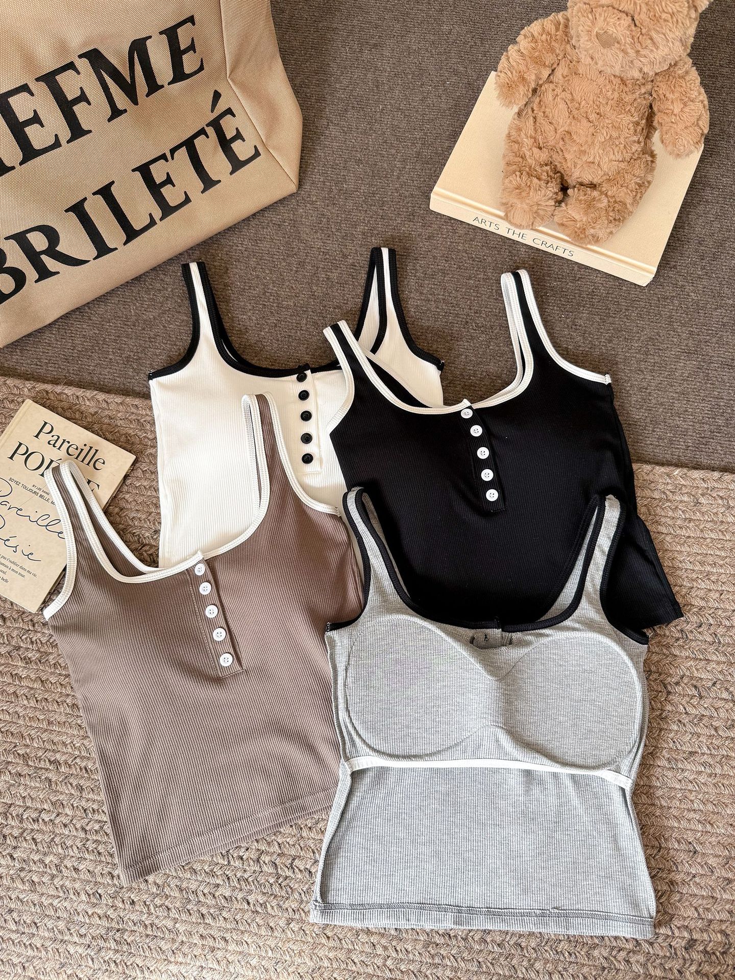 2025 nueva camisola de color de contraste de espalda hermosa para mujer almohadilla fija para el pecho interior y exterior con botones de uso exterior chaleco de fondo de todo fósforo para mujer