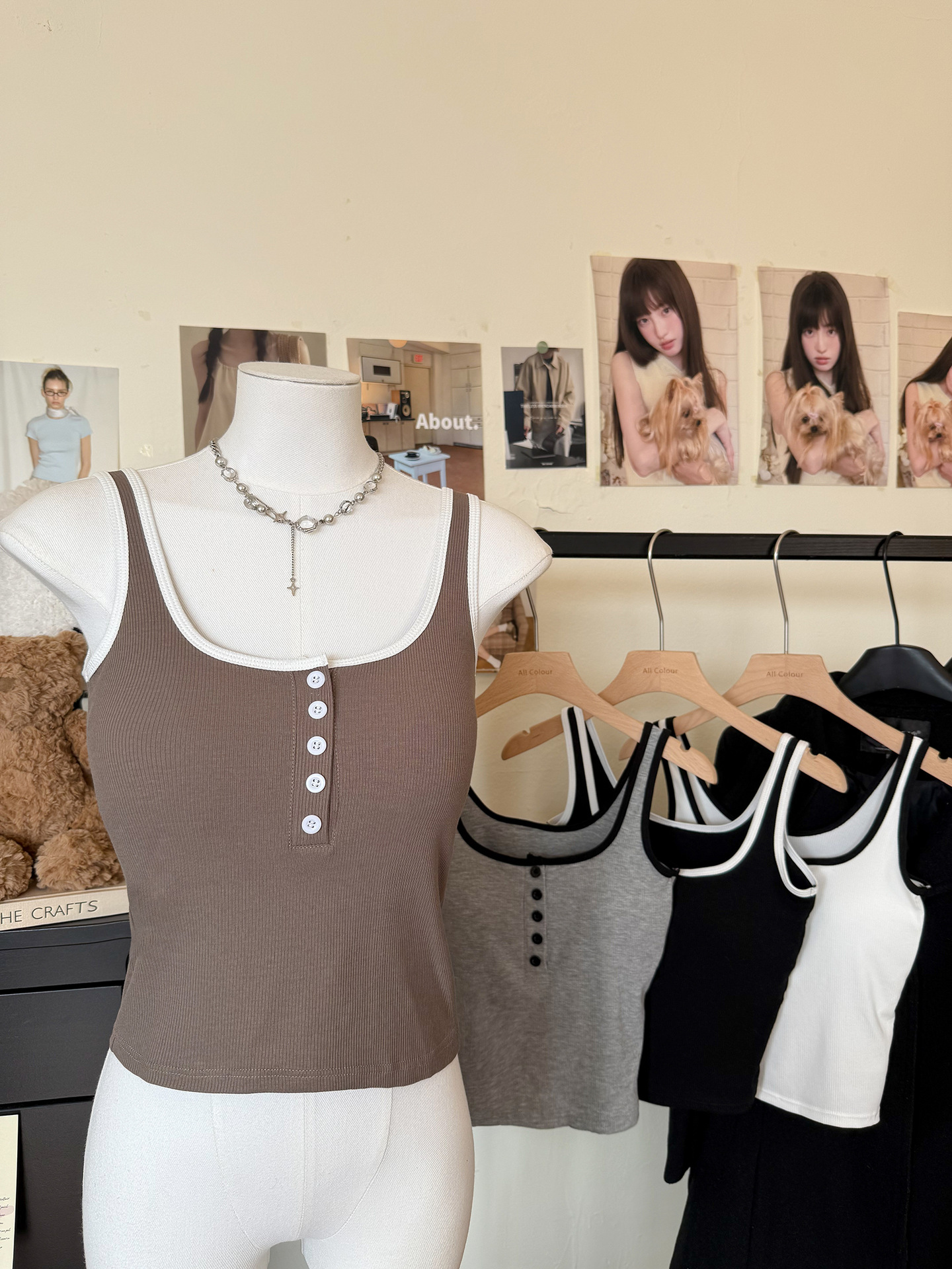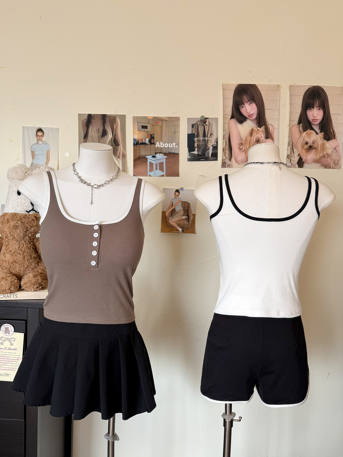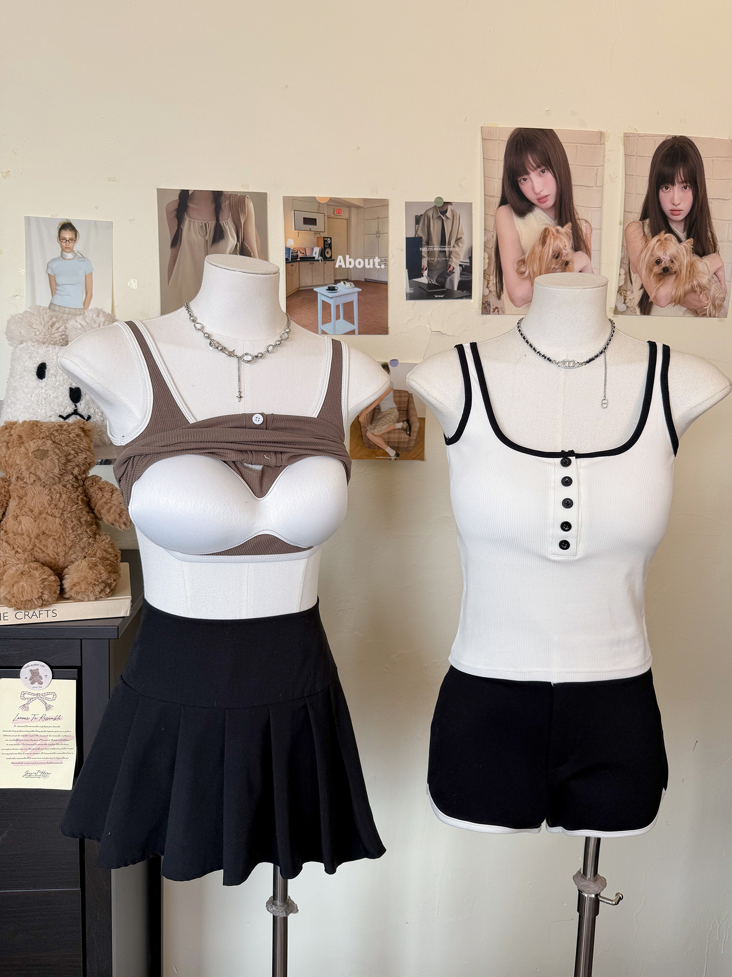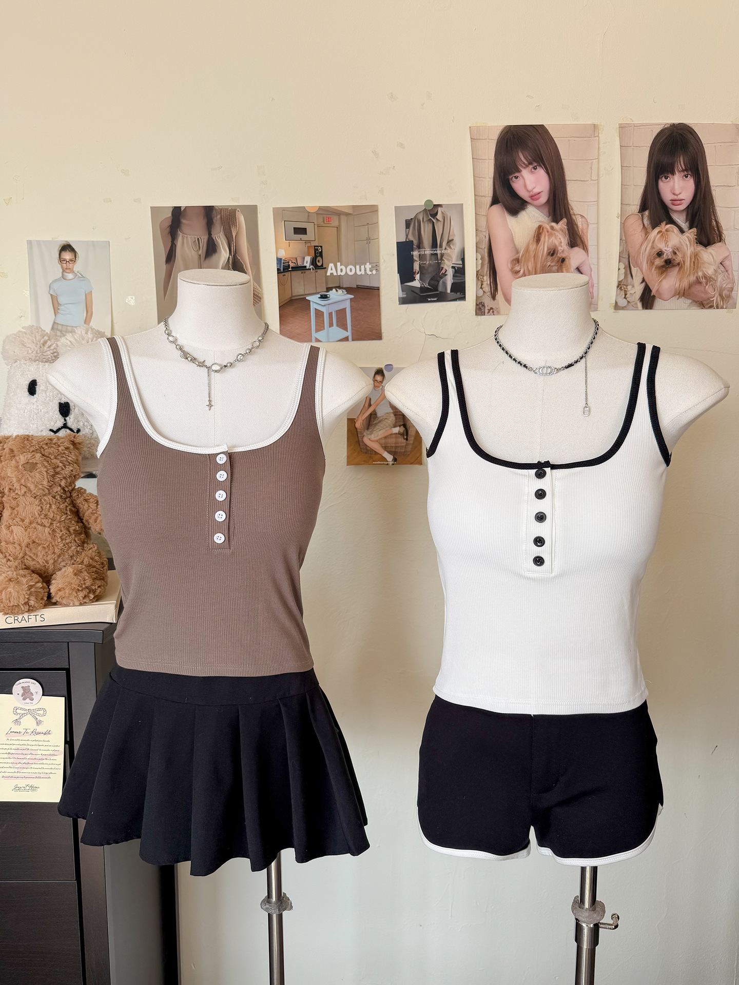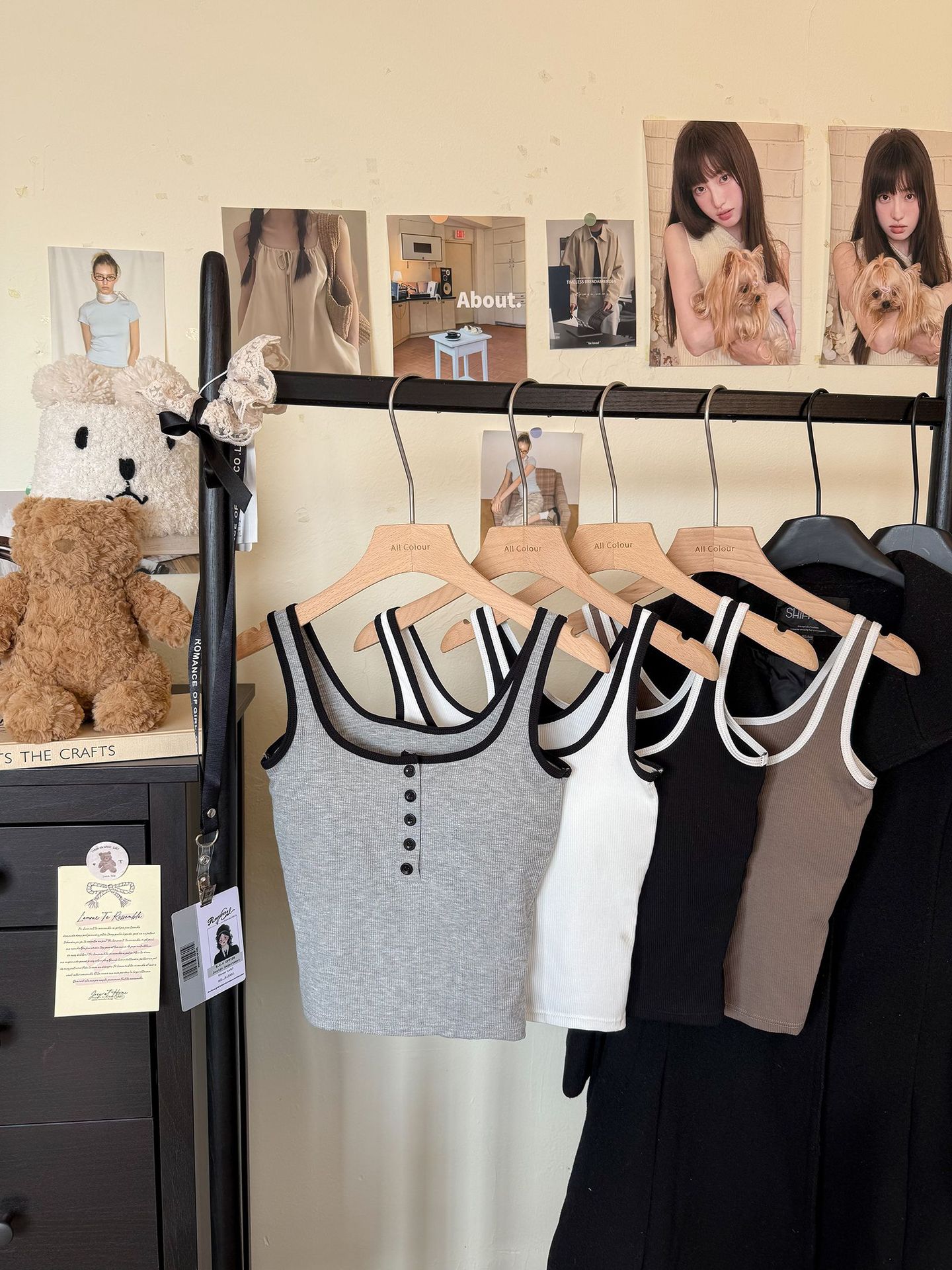 2025 nueva camisola de color de contraste de espalda hermosa para mujer almohadilla fija para el pecho interior y exterior con botones de uso exterior chaleco de fondo de todo fósforo para mujer