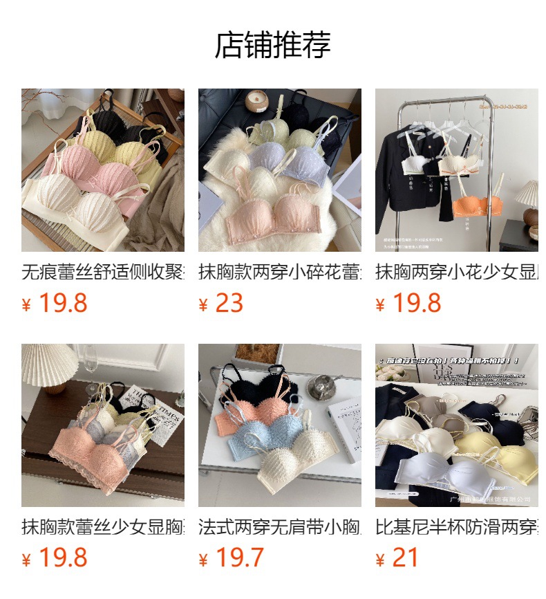 Pecho pequeño que no deja marcas, dos desgaste, recolección lateral, soporte superior, antideslizante, leche auxiliar, ropa interior cómoda, sujetador de texto para niña sin ropa interior
