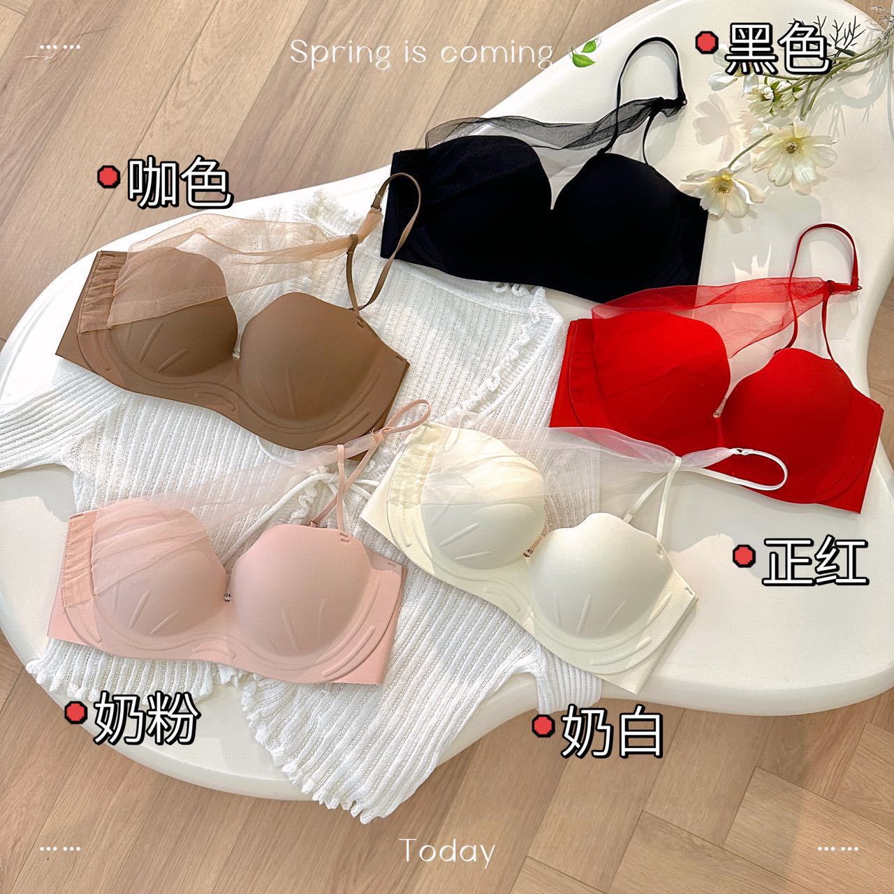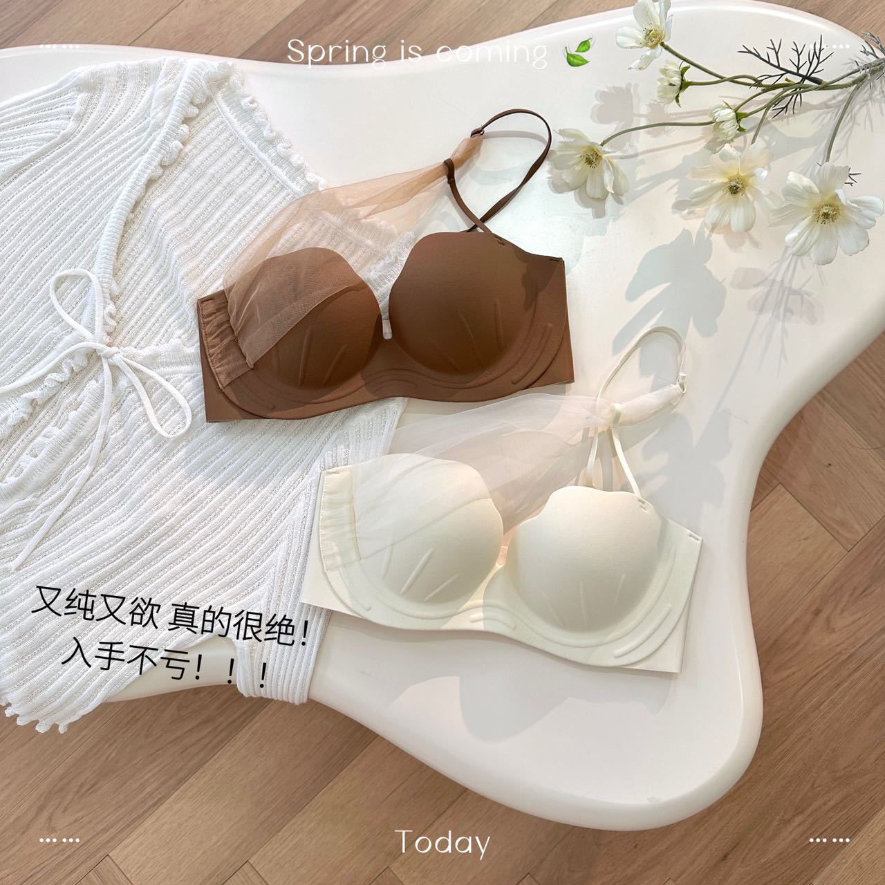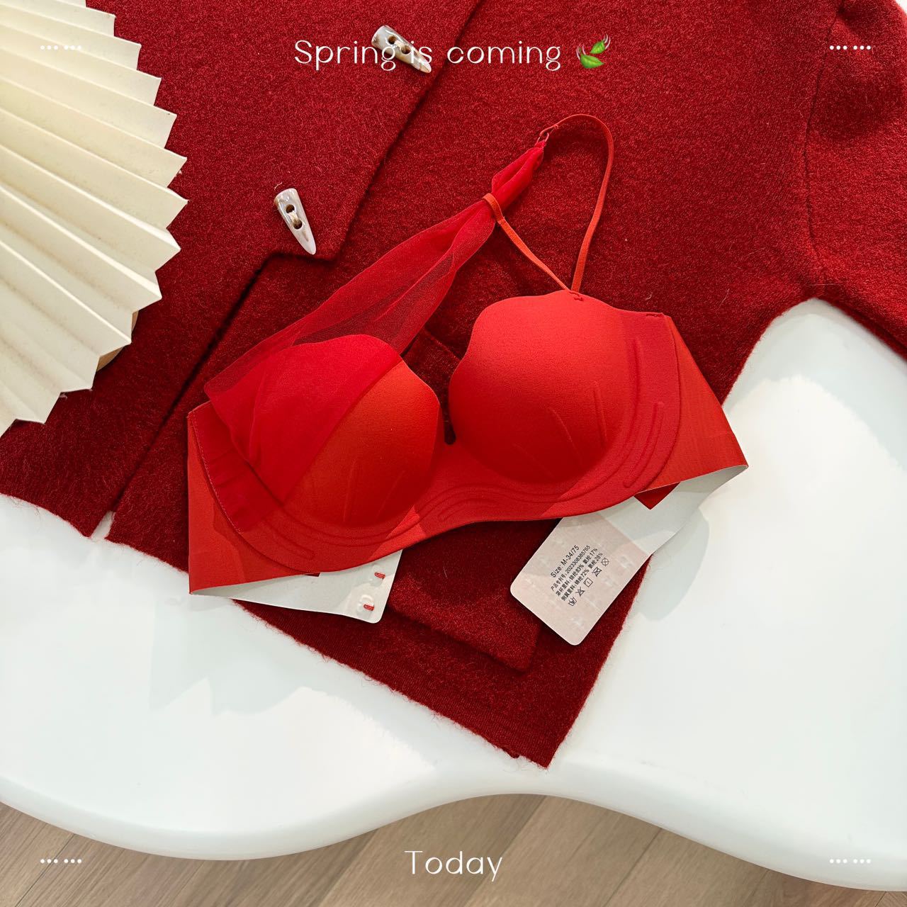 T5 nueva copa de garra de gato de concha, pechos pequeños reunidos, gran espalda sin tirantes, hermosa ropa interior, cuello colgante, sexy sujetador de estilo puro