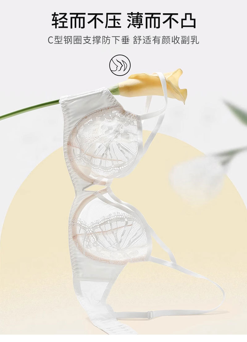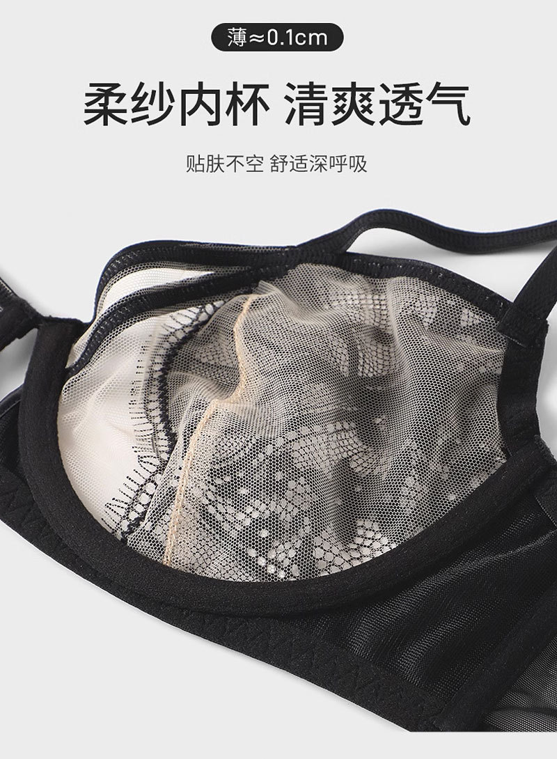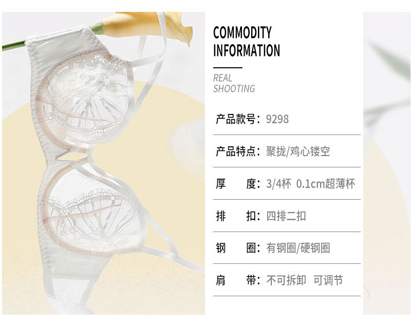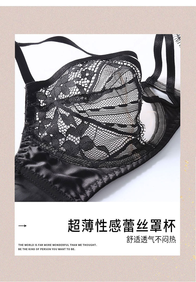 Suministro directo de fábrica de ropa interior push up anillo de acero pecho grande pequeño sujetador ropa interior traje ultra-Delgado Sujetador de encaje sexy al por mayor