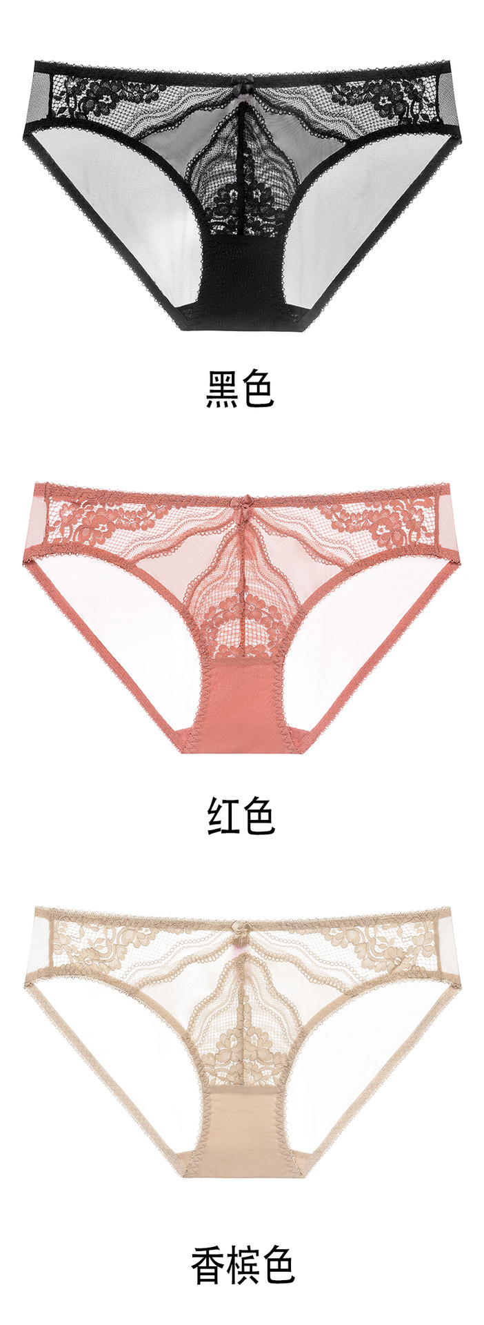 Encaje transfronterizo europeo y americano damas francés sexy puro deseo calzoncillos de cintura baja malla transpirable pantalones nuevos ultrafinos