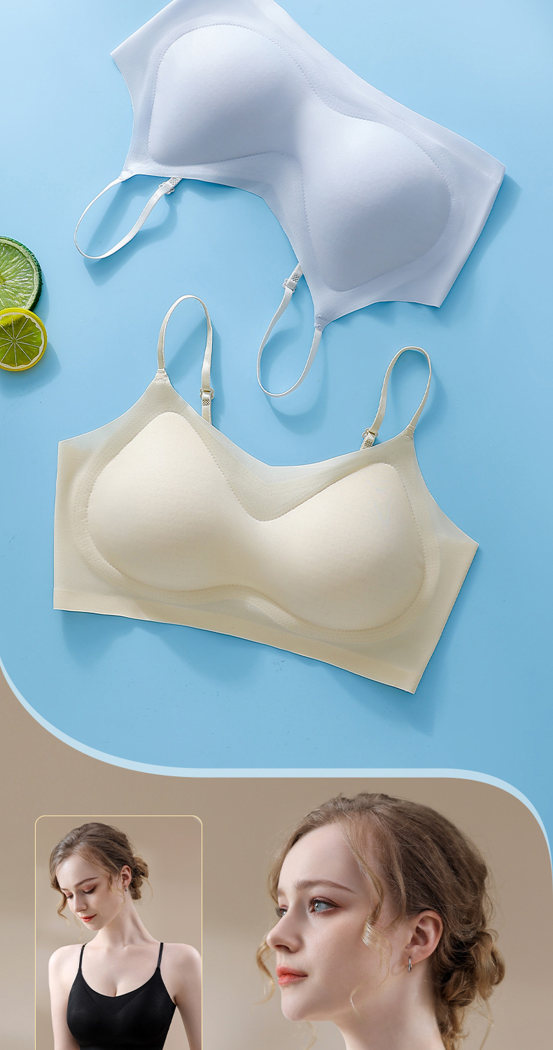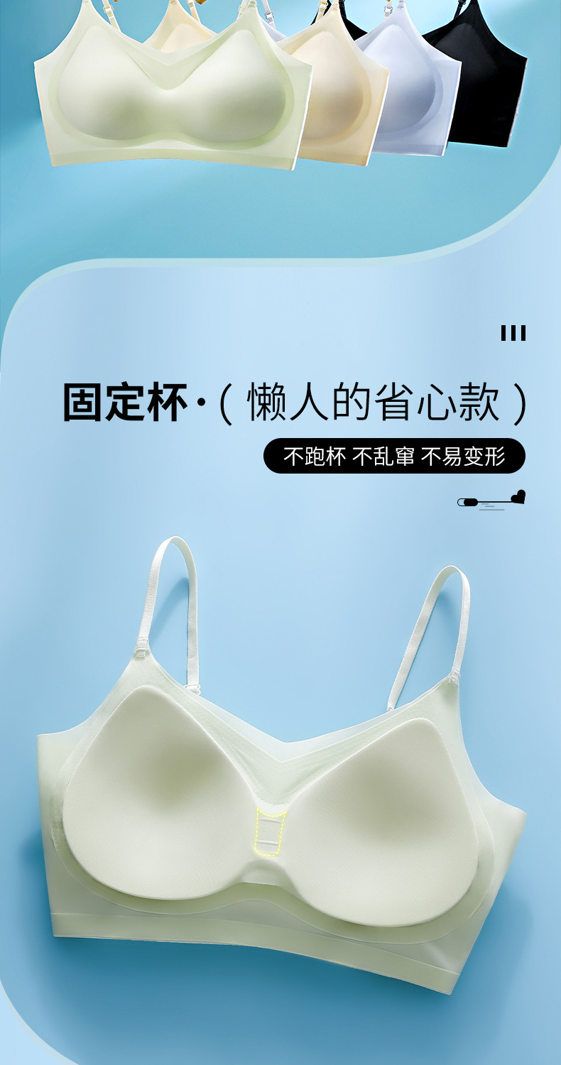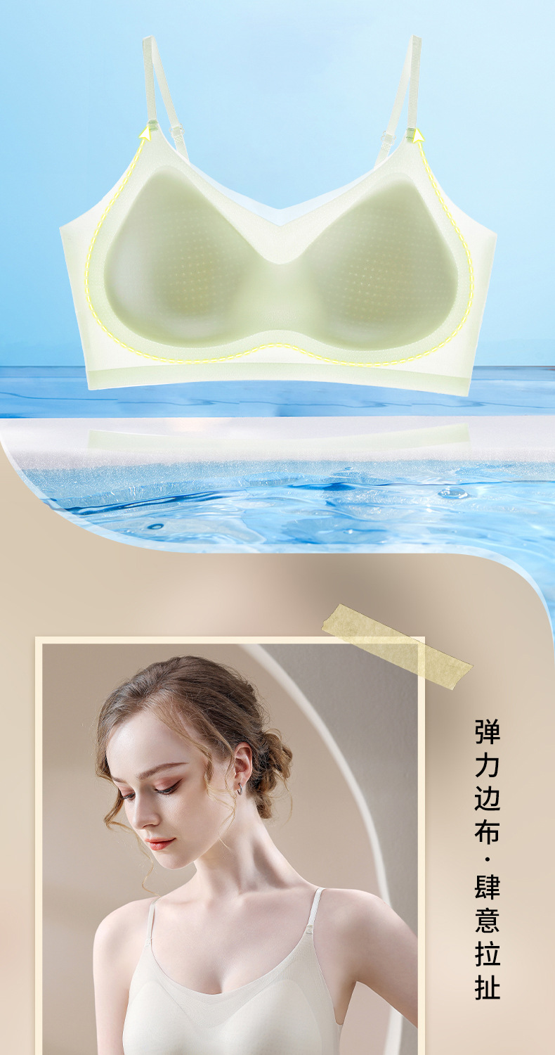 Ropa interior de gelatina de soporte suave de verano, copa fija transpirable delgada, chaleco sin anillo de acero, sujetador para dormir sin costuras para mujer