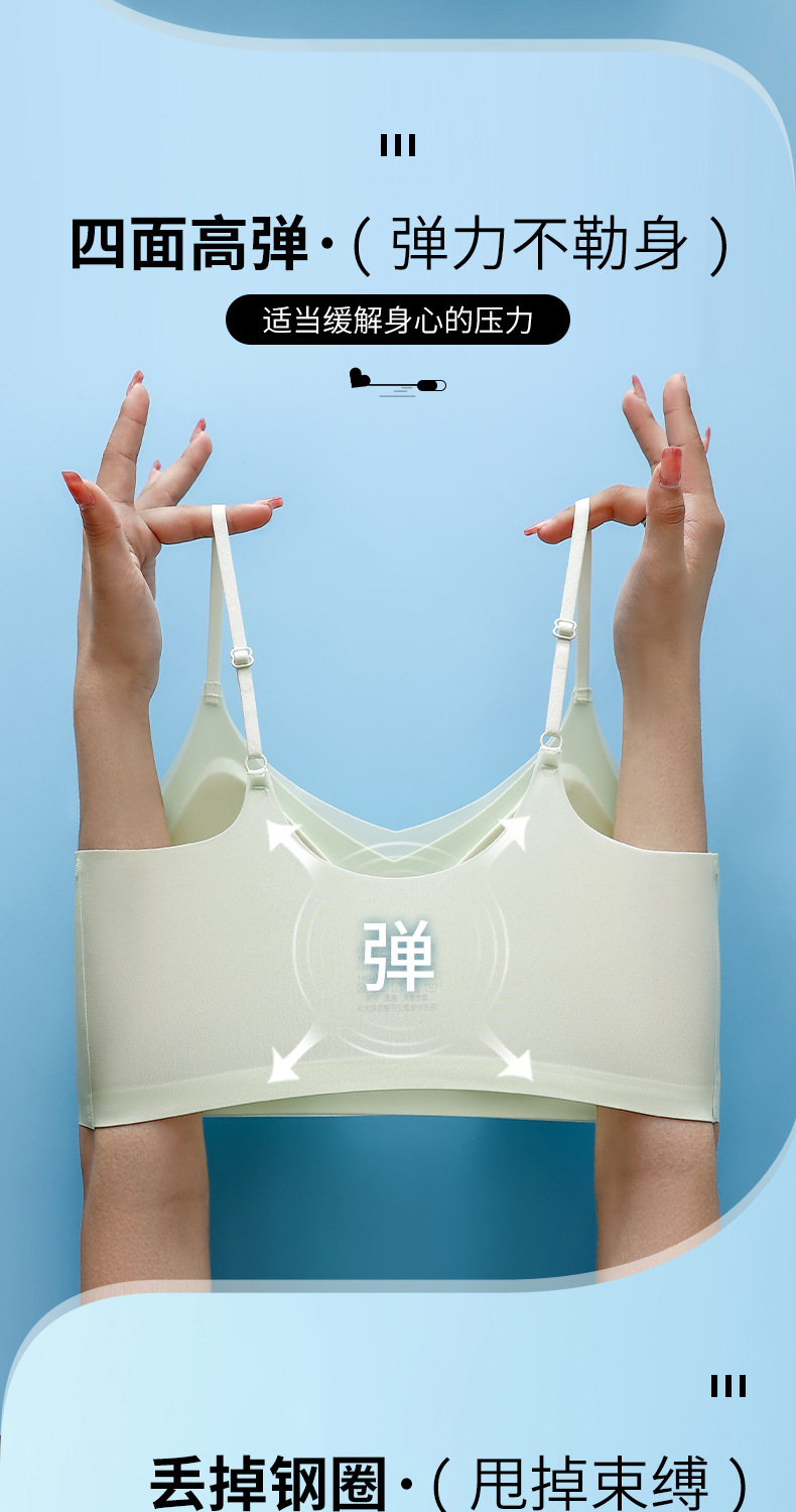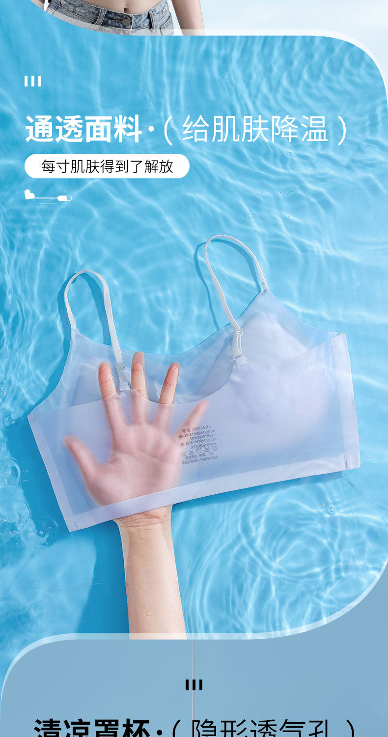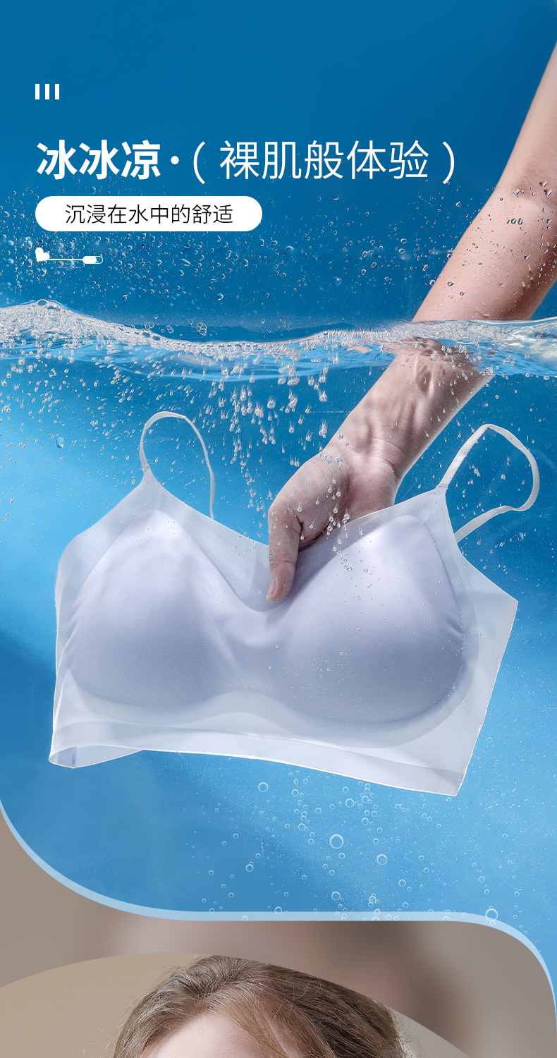 Ropa interior de gelatina de soporte suave de verano, copa fija transpirable delgada, chaleco sin anillo de acero, sujetador para dormir sin costuras para mujer