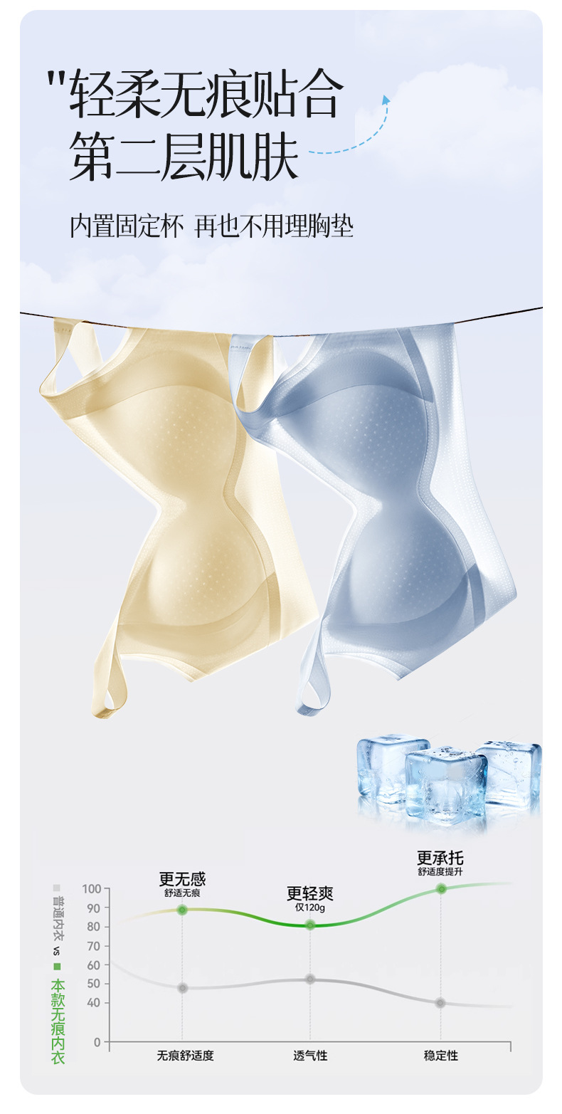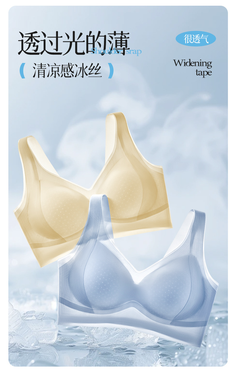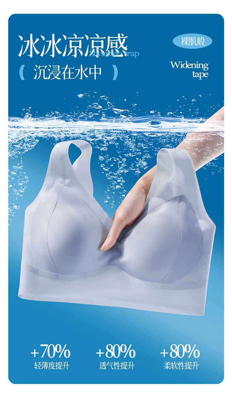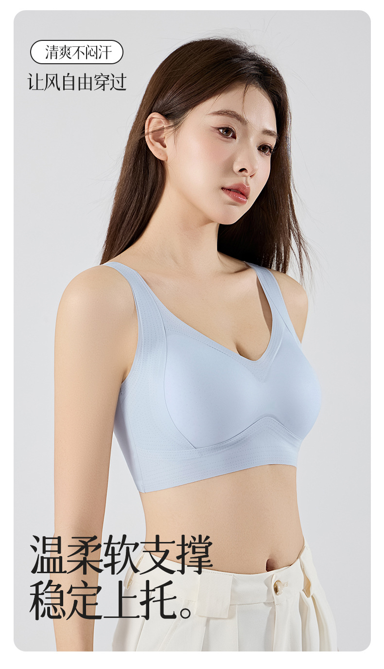 Ropa interior de elevación de soporte suave sin costuras para mujer, chaleco anti-caída sin anillo de acero, sujetador de gelatina de copa fija delgada para mujer