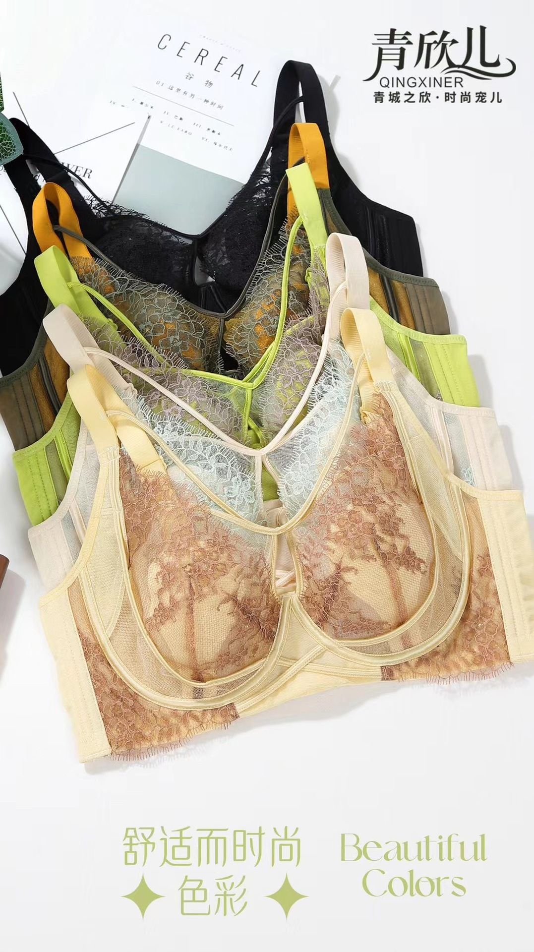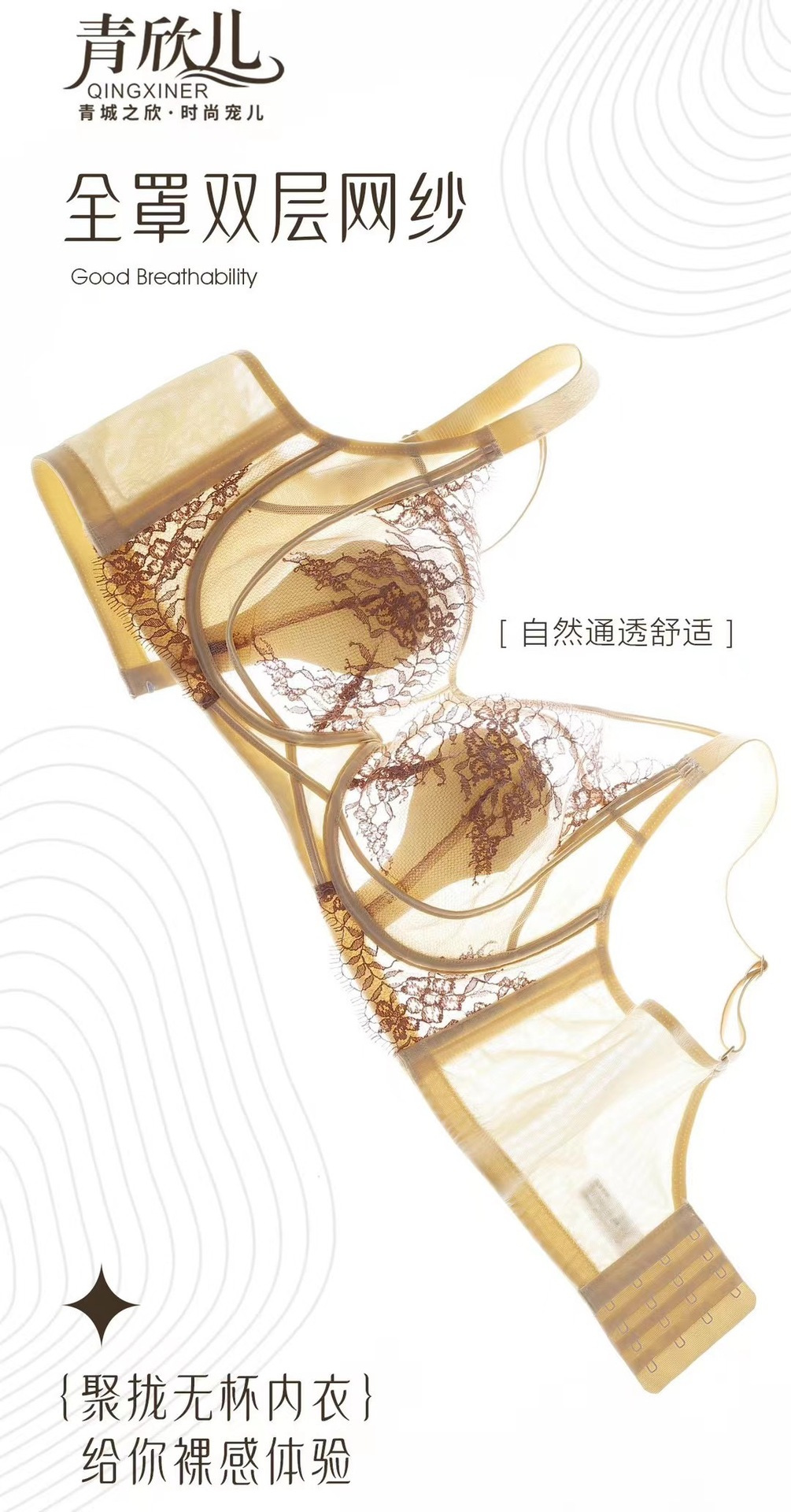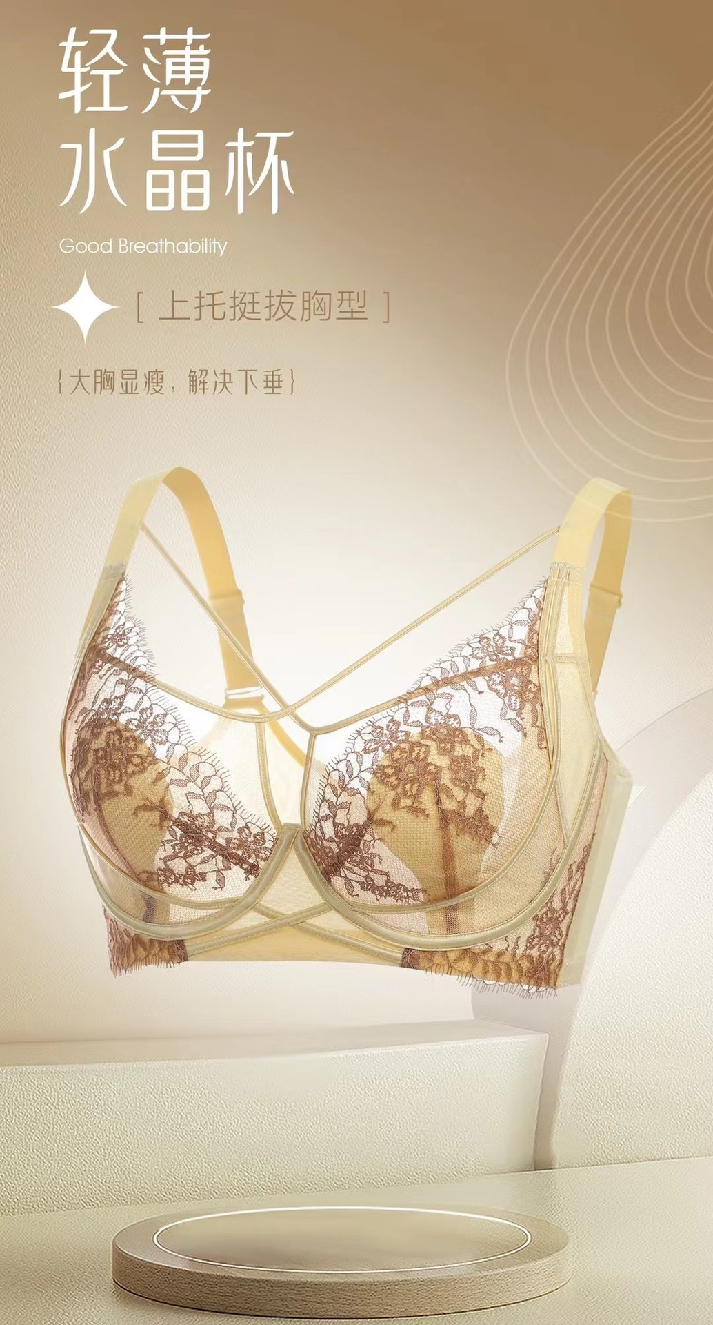2488 Hermosa malla de vidrio de encaje tridimensional, ropa interior ligera y sin copa, sujetador ajustable con anillo de acero suave con memoria