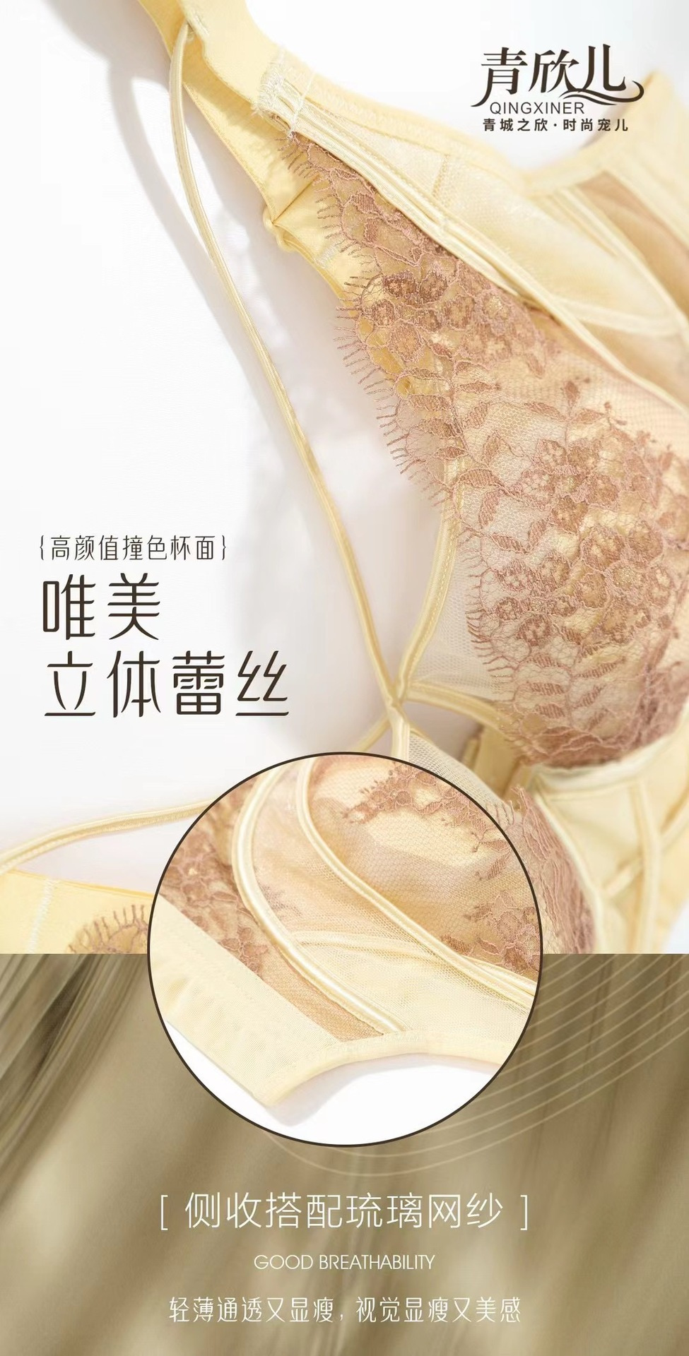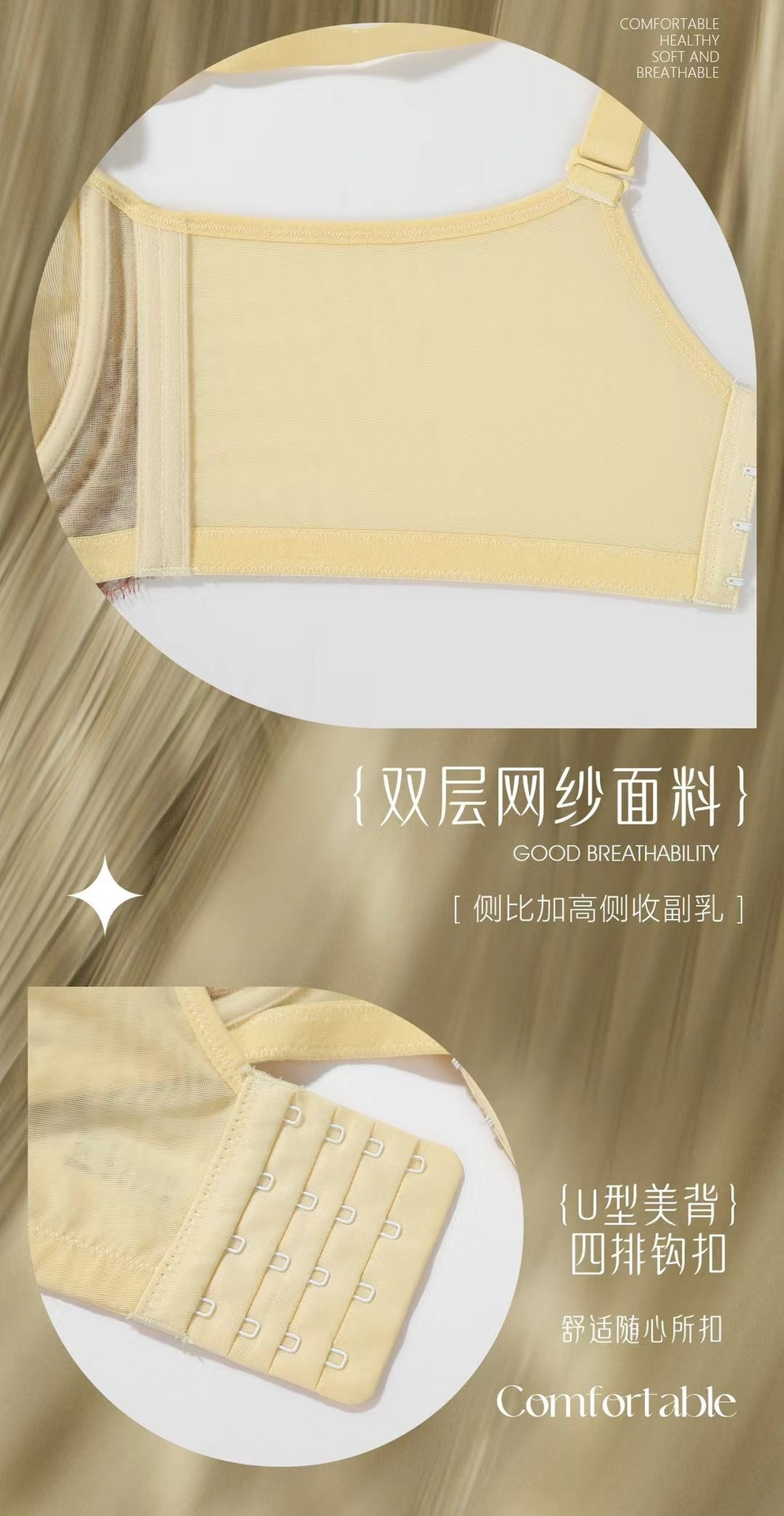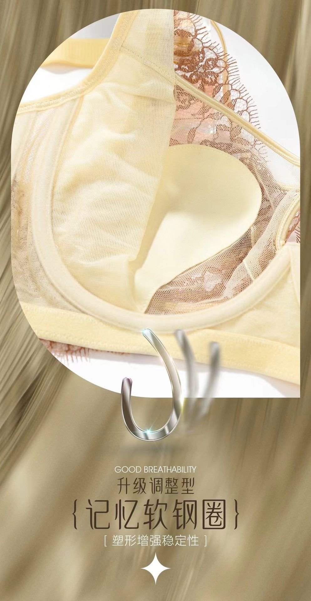 2488 Hermosa malla de vidrio de encaje tridimensional, ropa interior ligera y sin copa, sujetador ajustable con anillo de acero suave con memoria