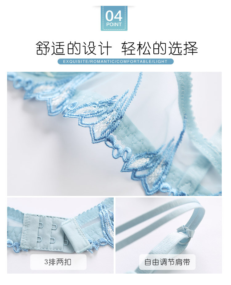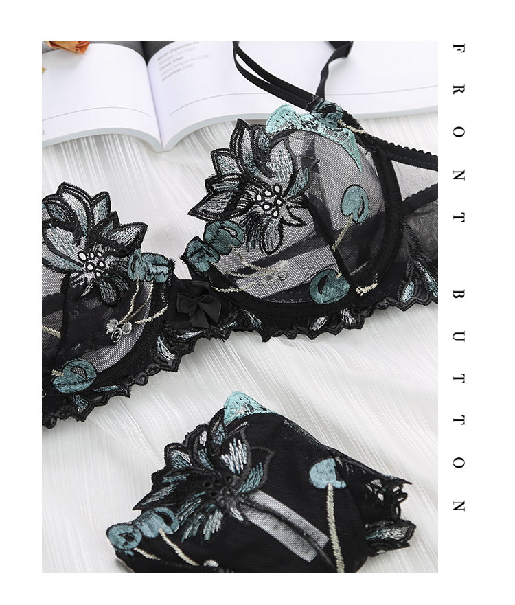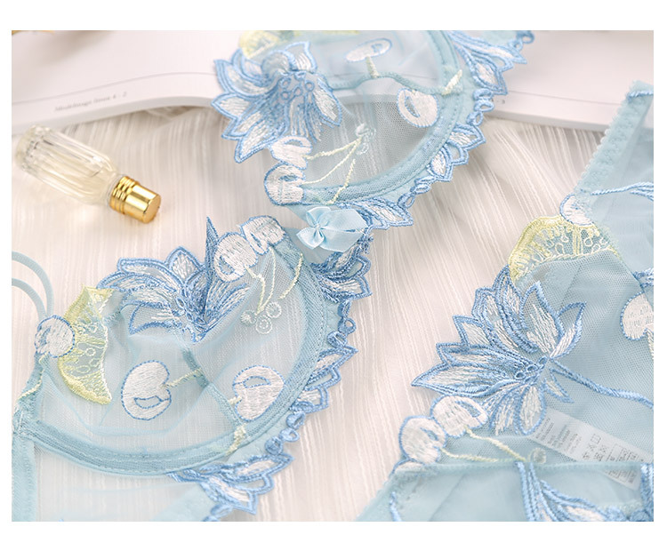 Procesamiento de encaje personalizado conjunto de ropa interior bordada sujetador transparente para mujer conjunto de sujetador de recolección transpirable fabricante de Foshan