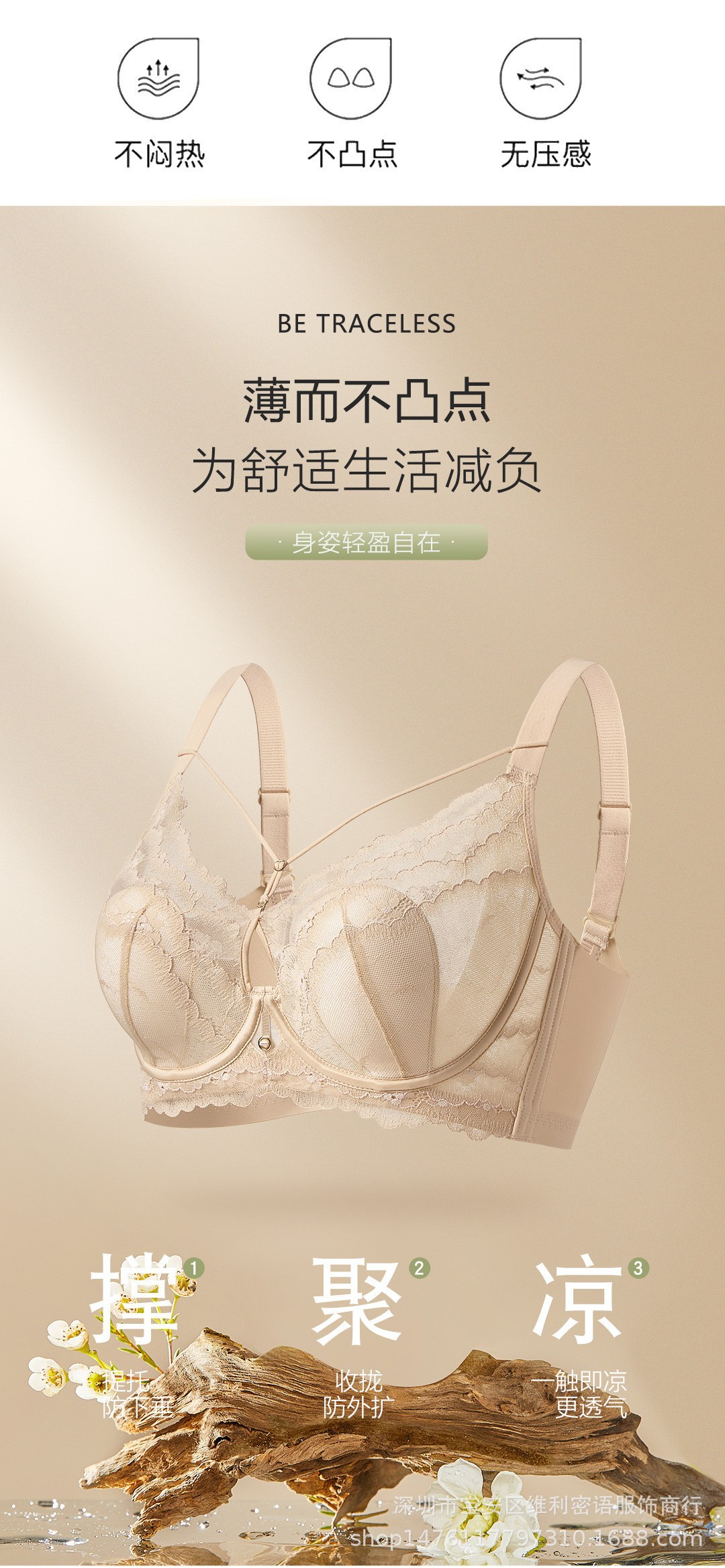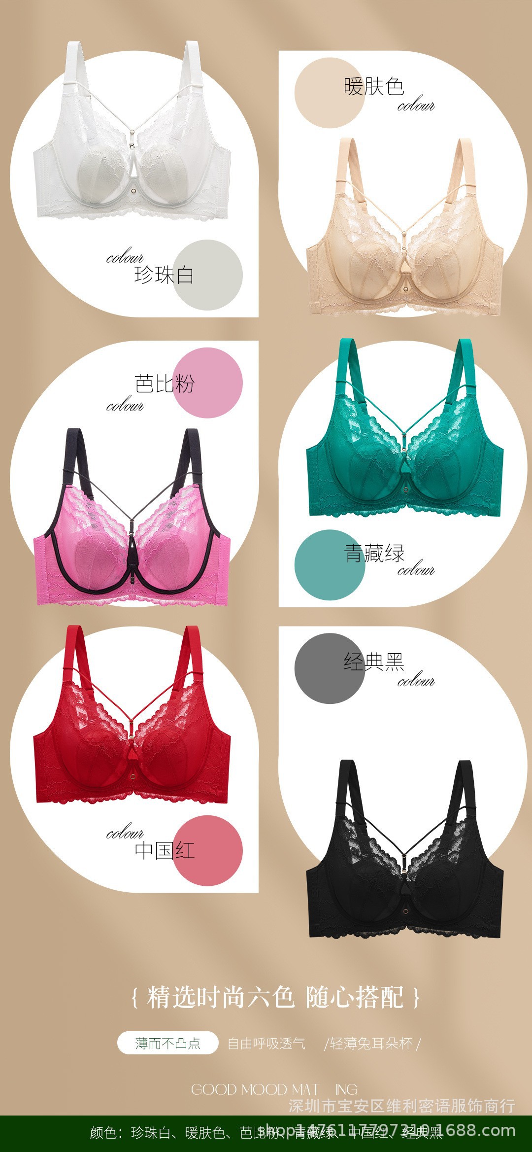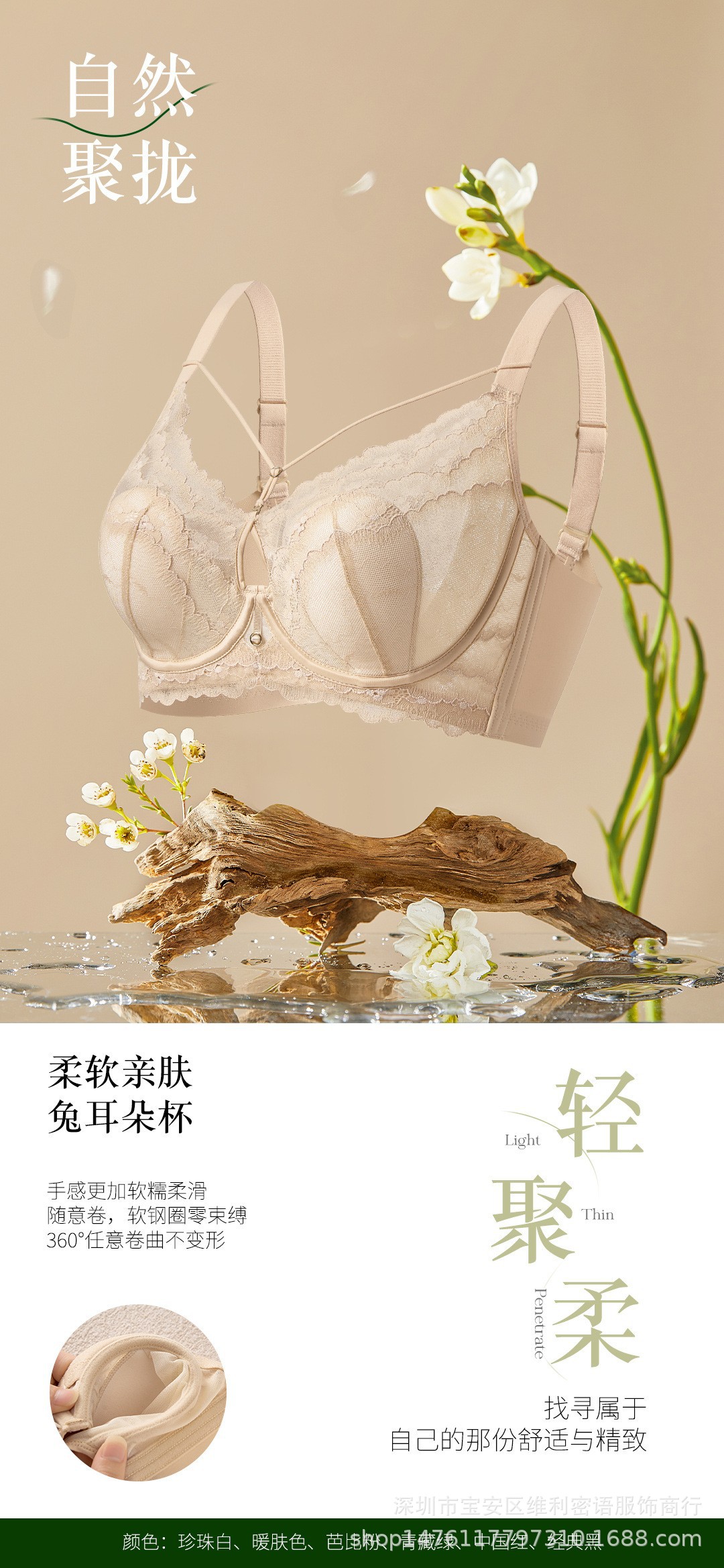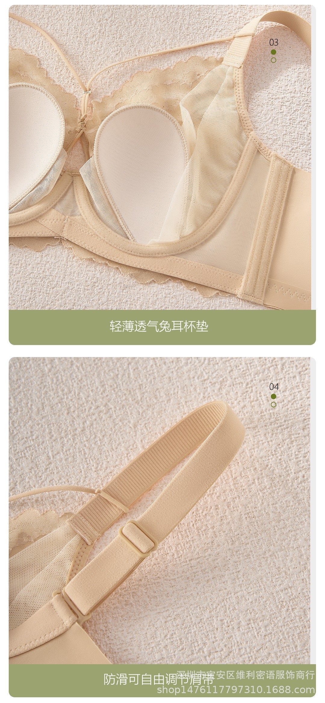 8814 pecho de encaje francés con copa de oreja de conejo traje de ropa interior sin costuras cómodo anillo de acero suave sujetador de pecho femenino