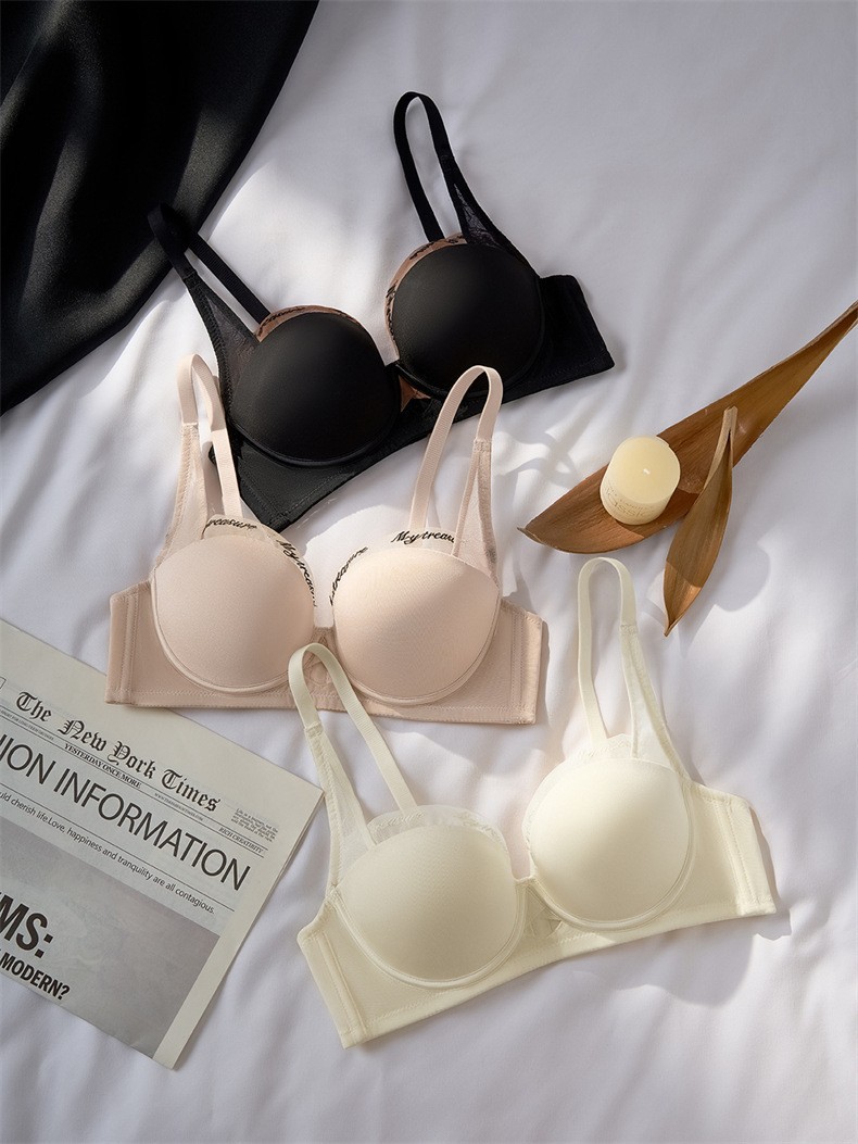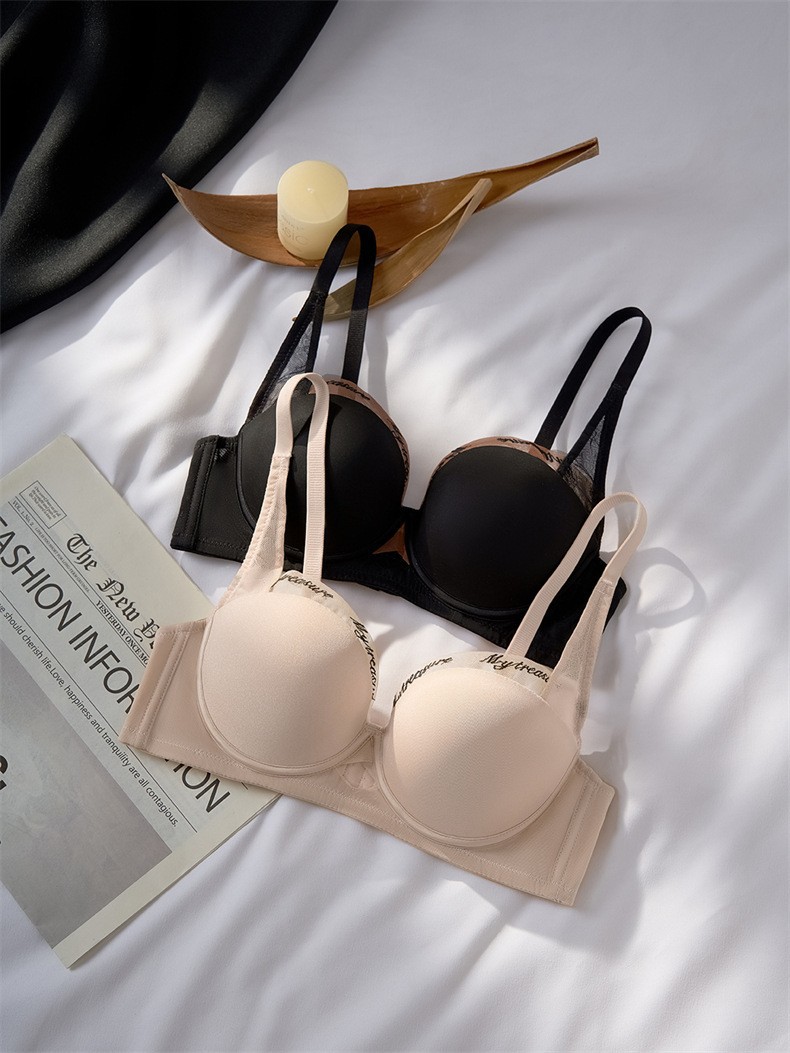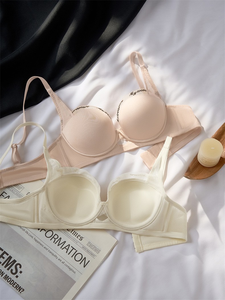 6639 bordado encaje suave ropa interior hueca de media taza memoria femenina titanio anillo de acero suave soporte superior sujetador lateral conjunto