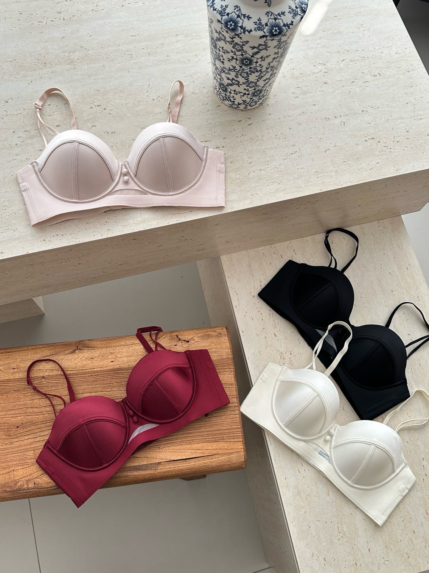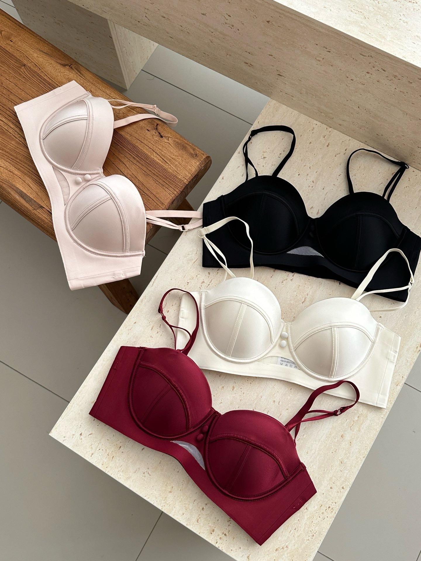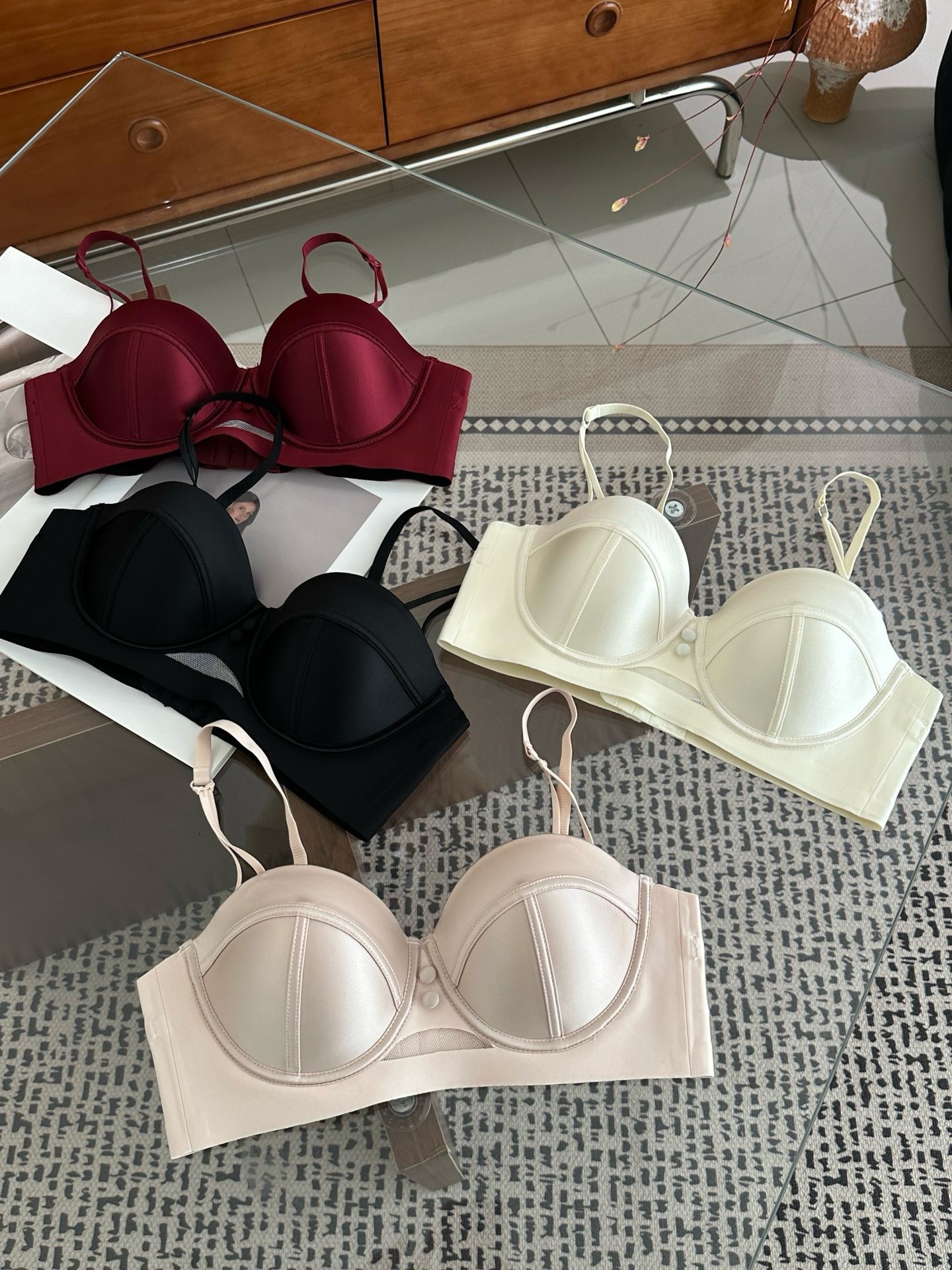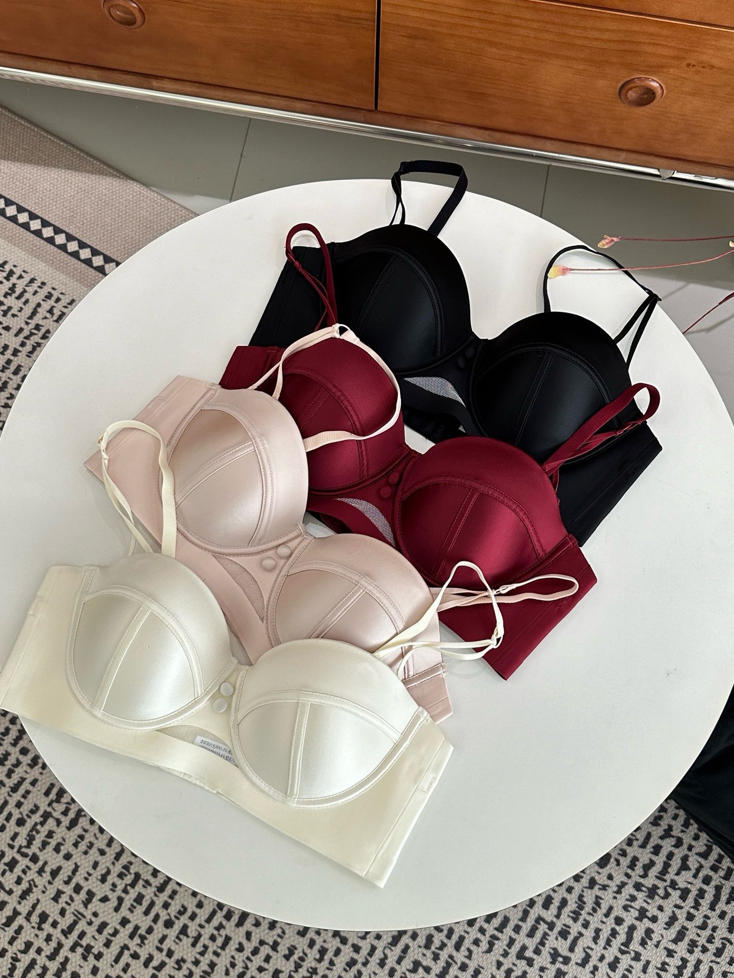 2898 Taza de masaje de pecho pequeño de satén nacarado de alta gama francesa, ropa interior súper fruncida, sujetador anti-flacidez superior para mujer