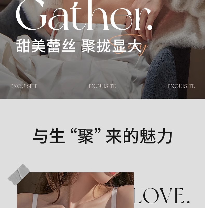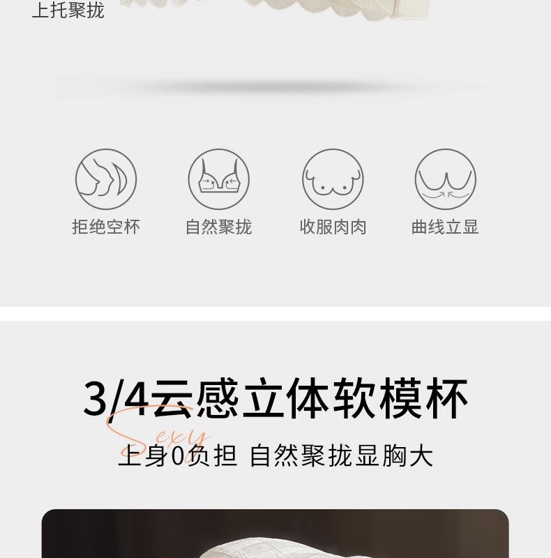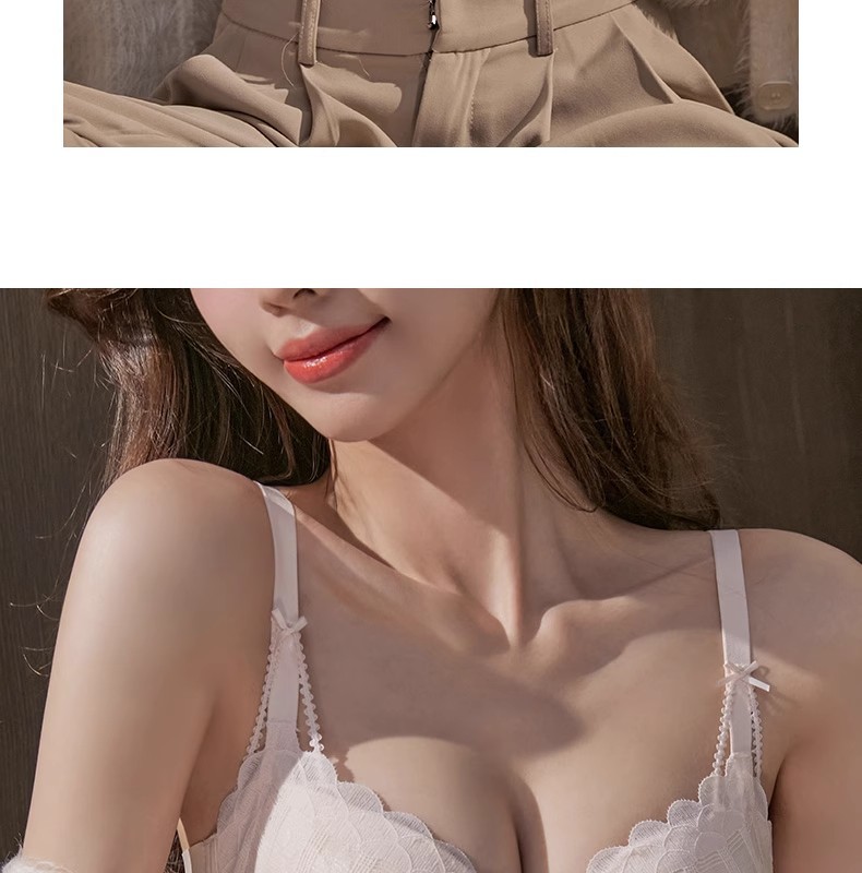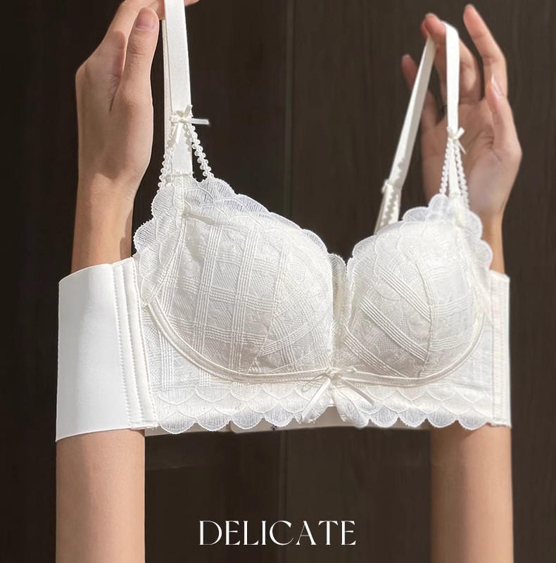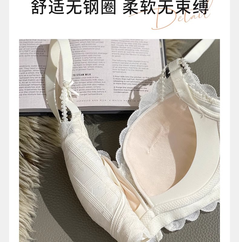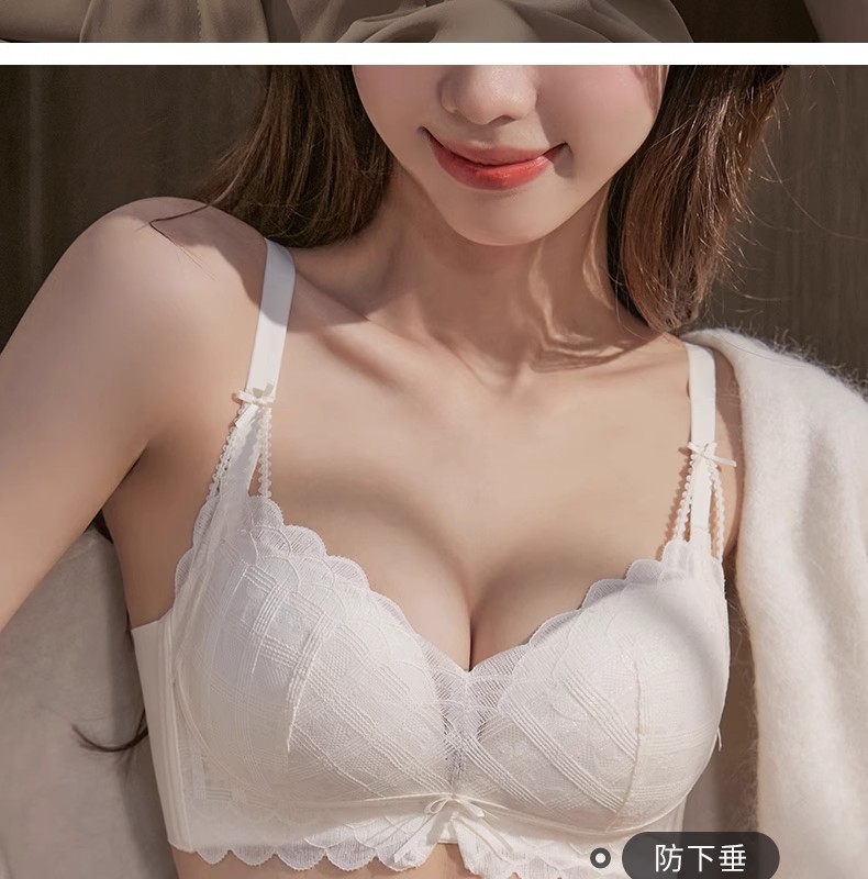 Y8089 Encaje dulce y sexy sin anillo de acero, algodón modal con sentido de la nube, ropa interior de recolección de pechos pequeños, cubierta de sujetador ajustable