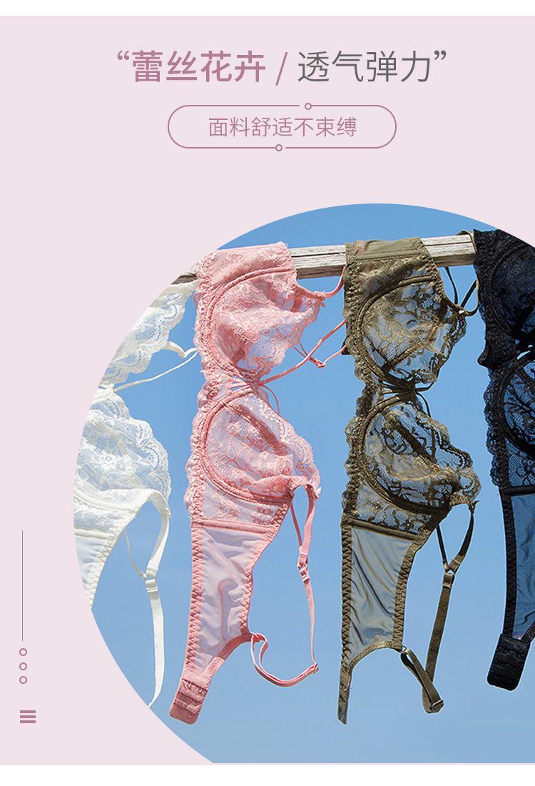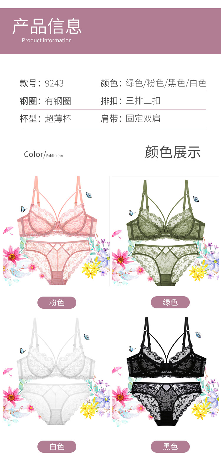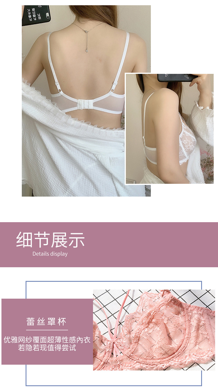 Conjunto de sujetador de encaje personalizado, pecho grande, sexy, anillo de acero transparente, talla grande, sujetador de copa de cristal fino para niña, ropa interior
