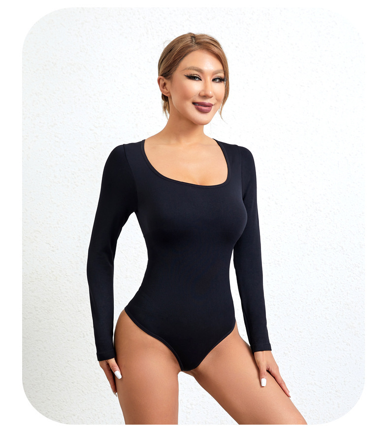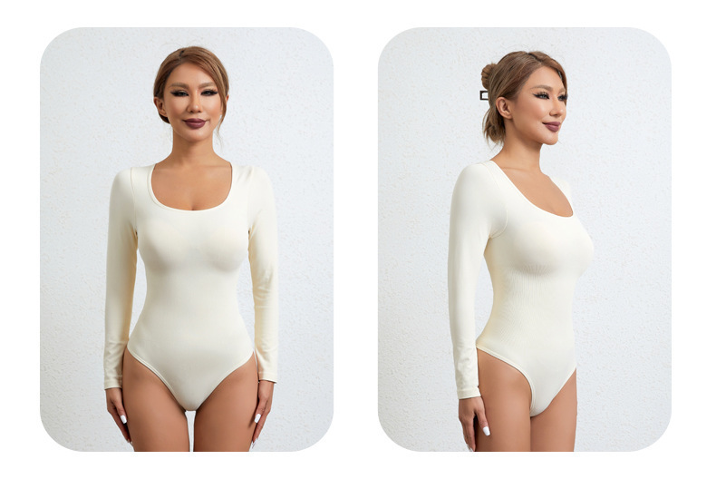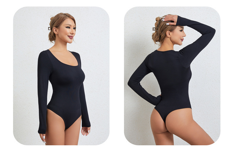 Fajas de una pieza de manga larga de gran tamaño transfronterizas, camisa de fondo ajustada sin costuras, corsé con hebilla de entrepierna abierta para mujer