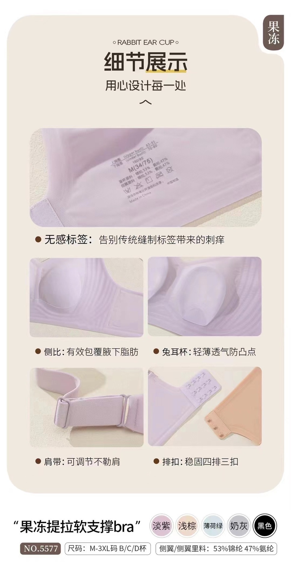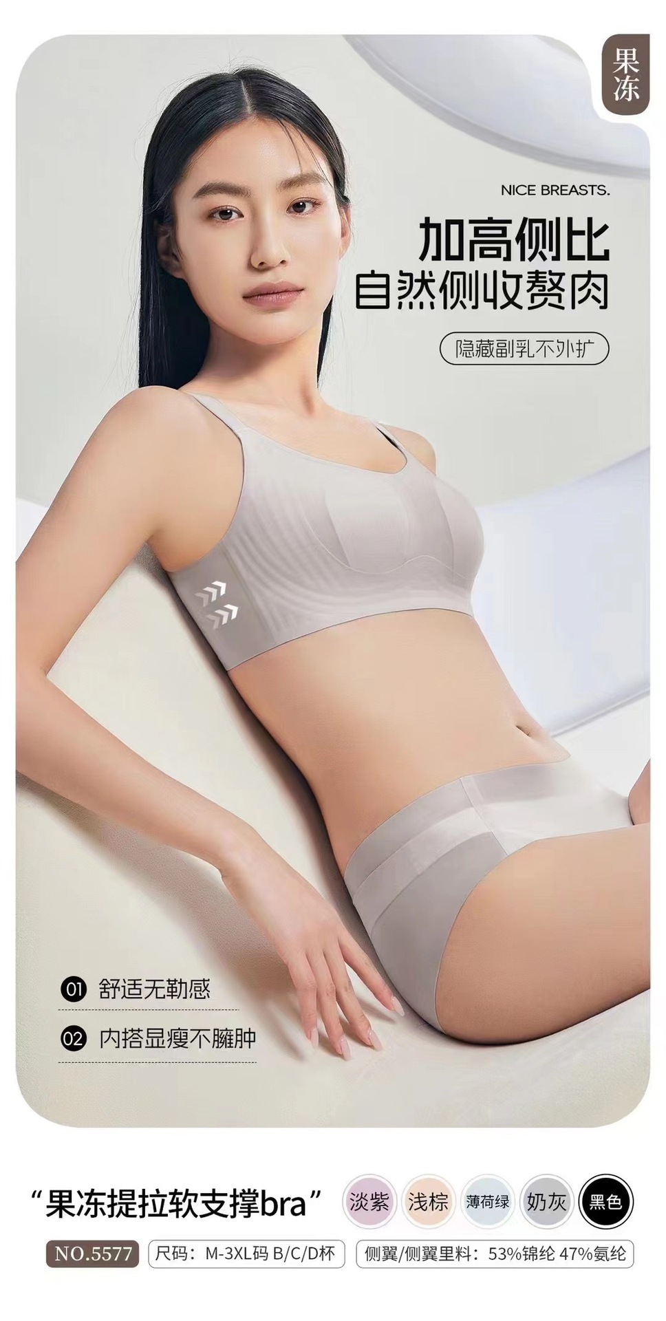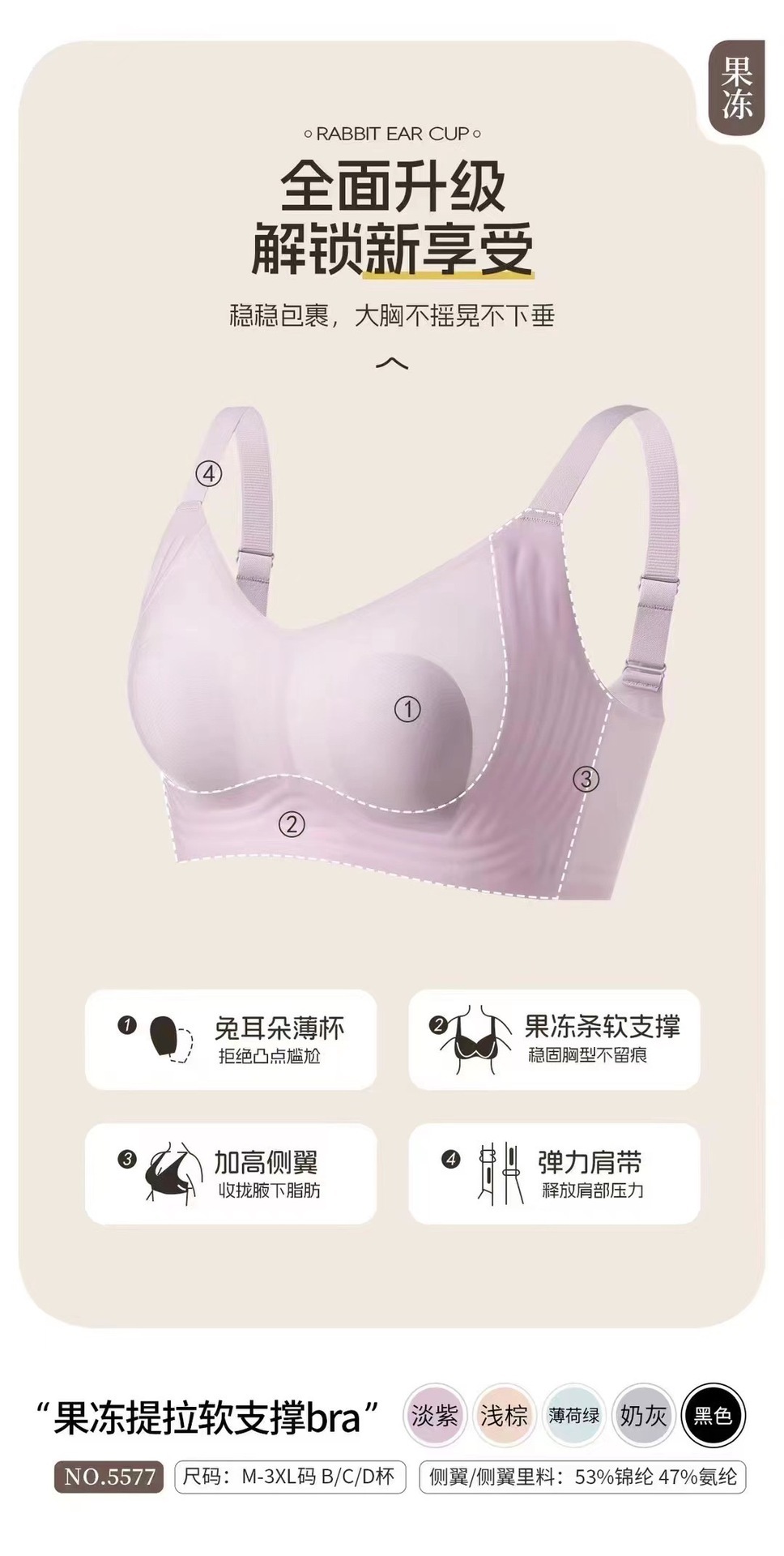 Gelatina de piel de leche, pecho grande ultrafino, pequeño, sin anillo de acero, soporte suave, soporte superior, ropa interior anti-caída, sujetador delgado que no deja marcas