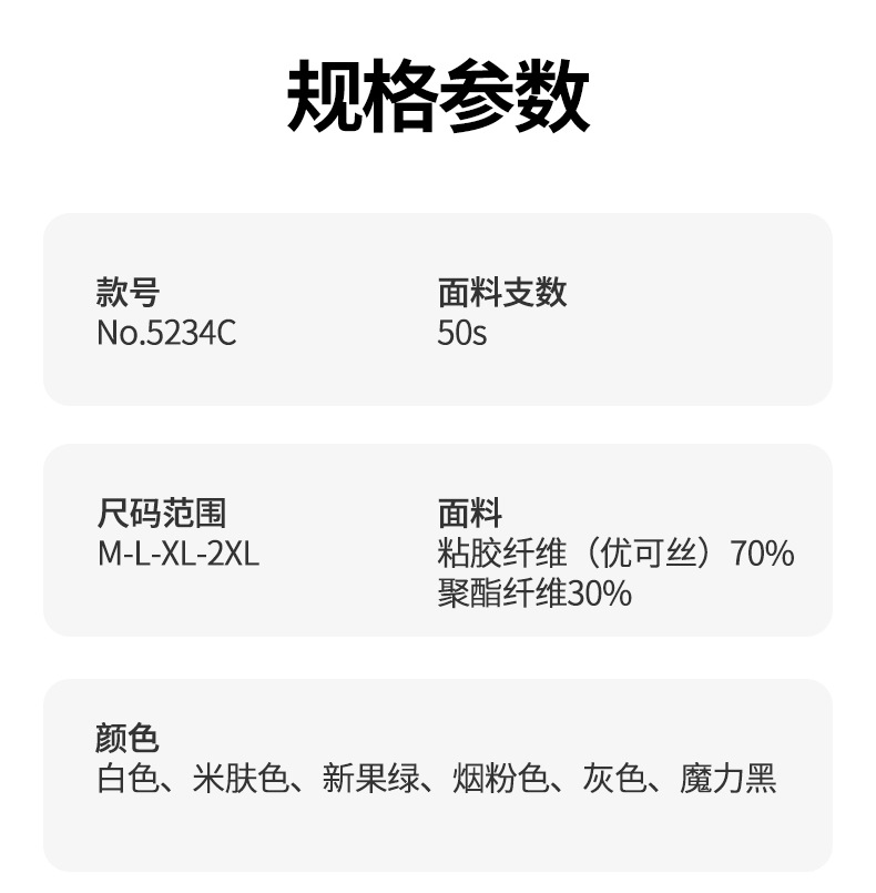 | Colores | Blanco-Cuello en U,Color de piel de arroz-cuello U,Nuevo verde fruta-cuello U,Cuello en U rosa ahumado,Gris-Cuello en U,Negro-Cuello en U,Blanco-Cuello redondo,Cuello redondo de piel de arroz,Nuevo verde fruta-cuello redondo,Cuello redondo rosa ahumado,Gris-cuello redondo,Negro-cuello redondo |