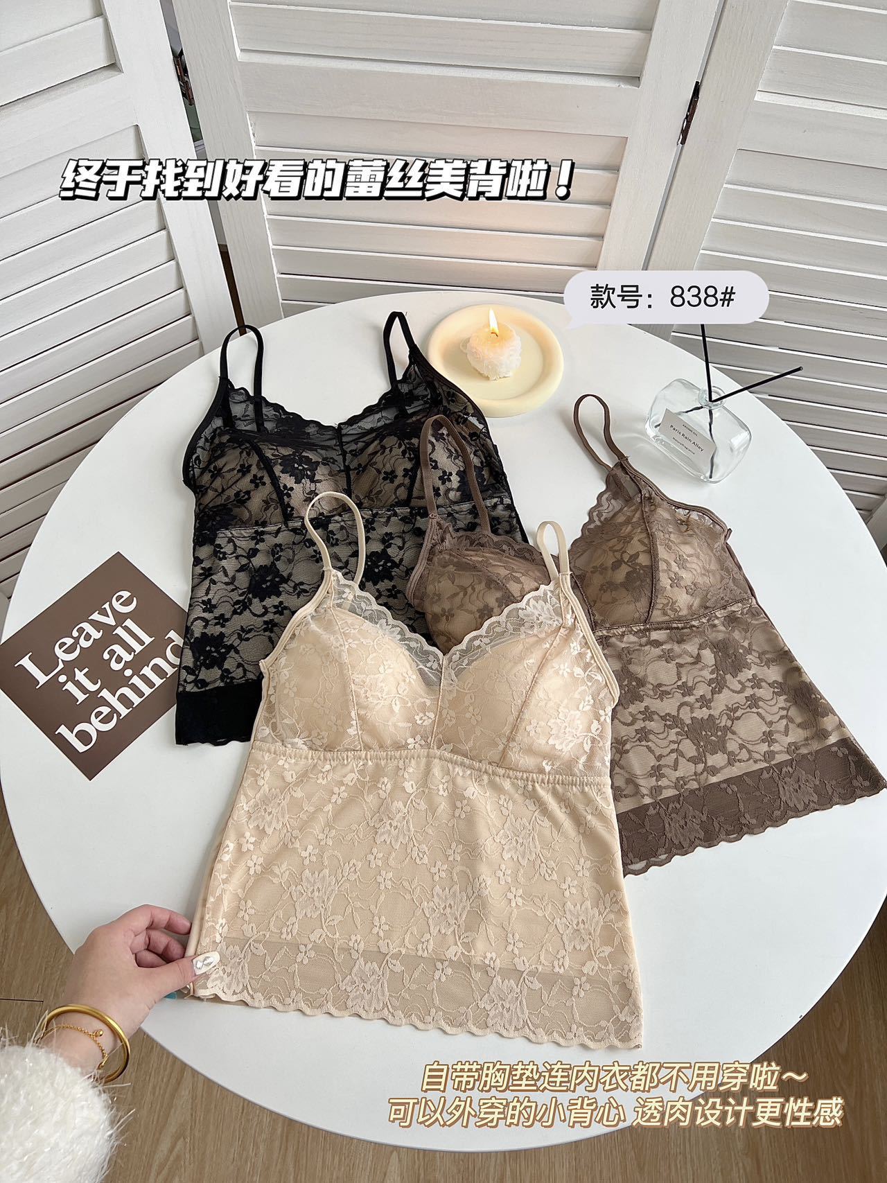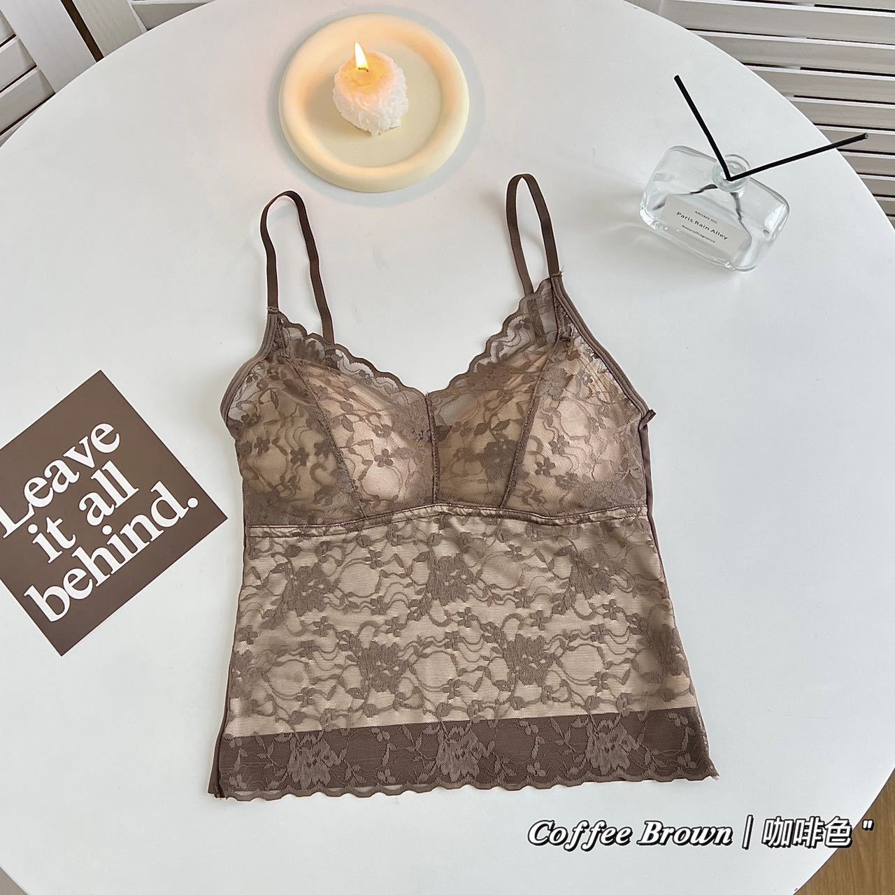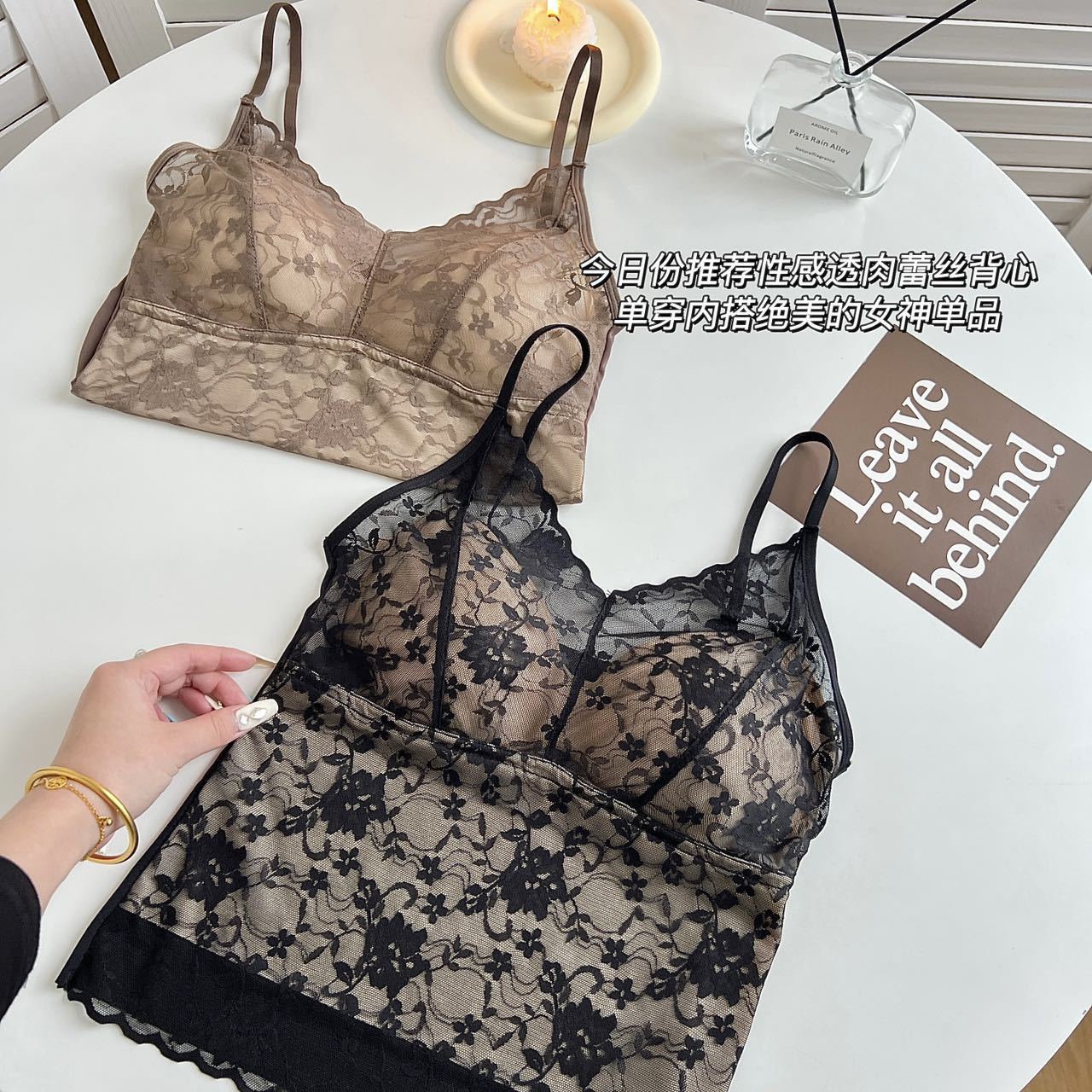 Eslinga de espalda de belleza de encaje sexy Sujetador de copa fija de seda de hielo para mujer