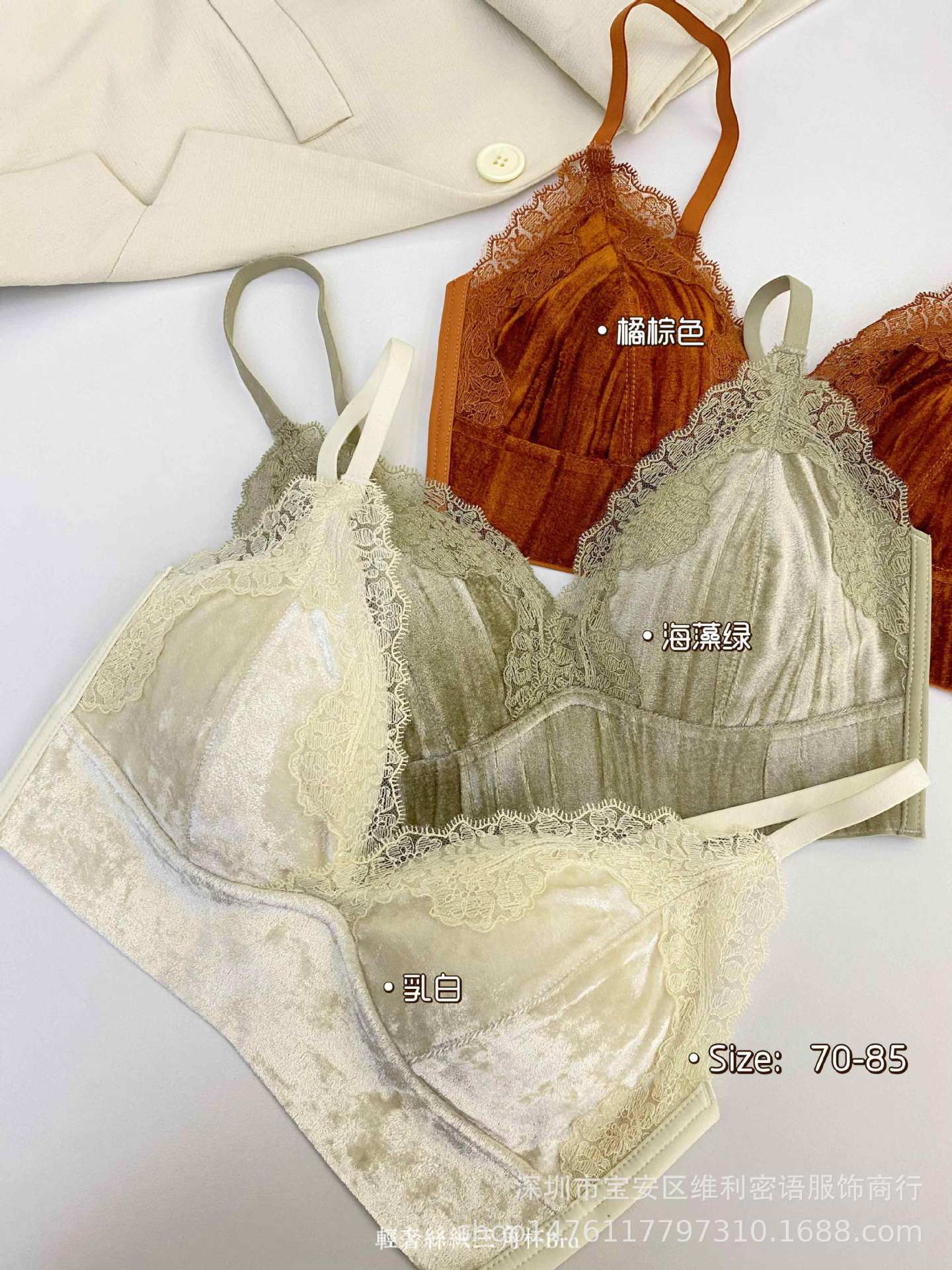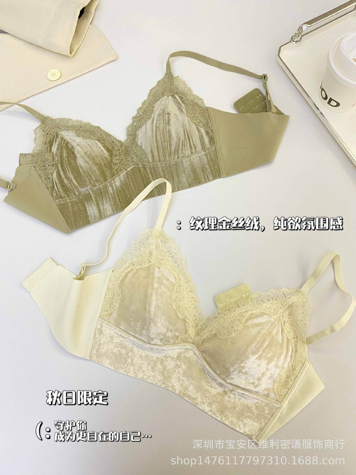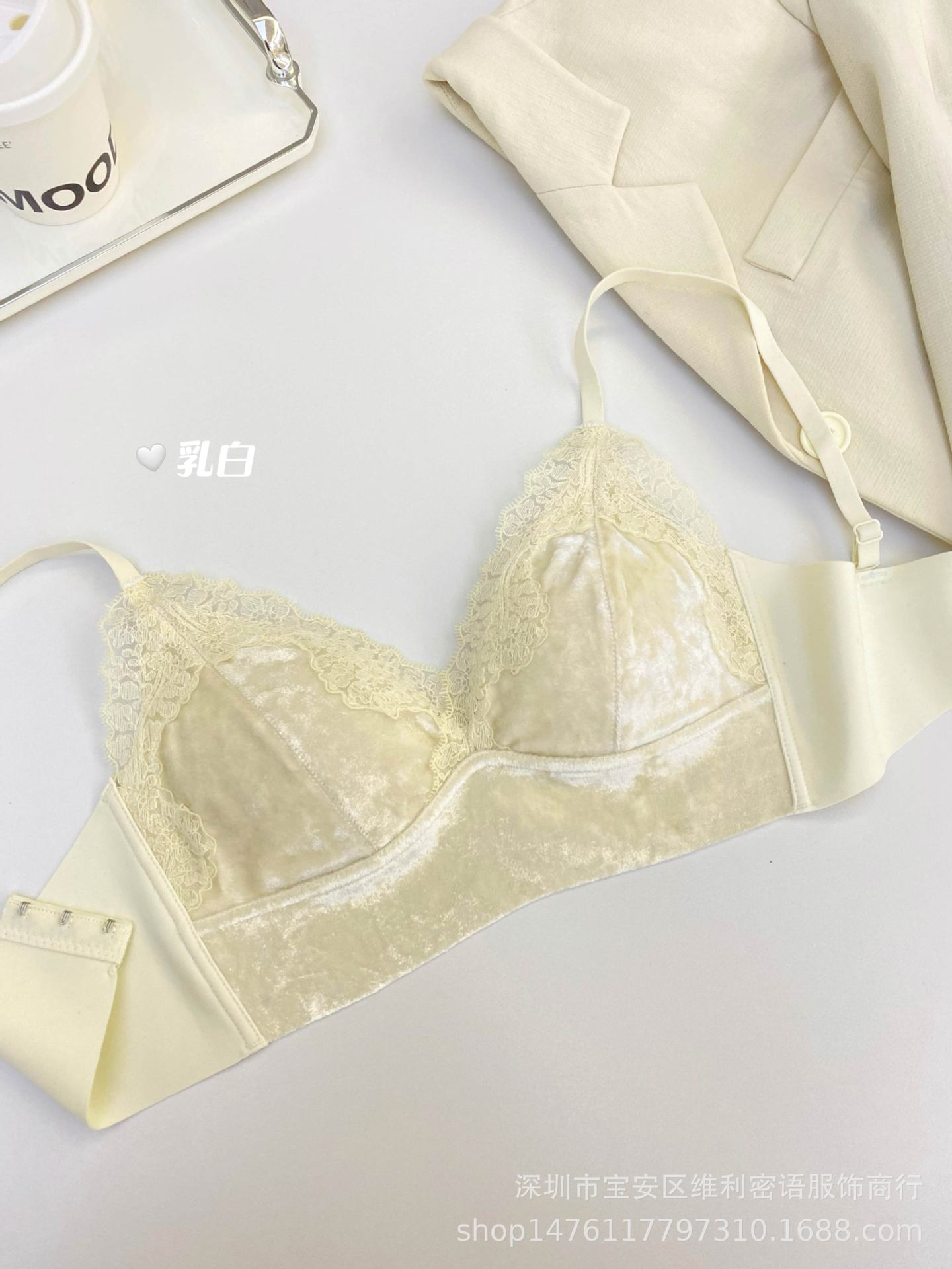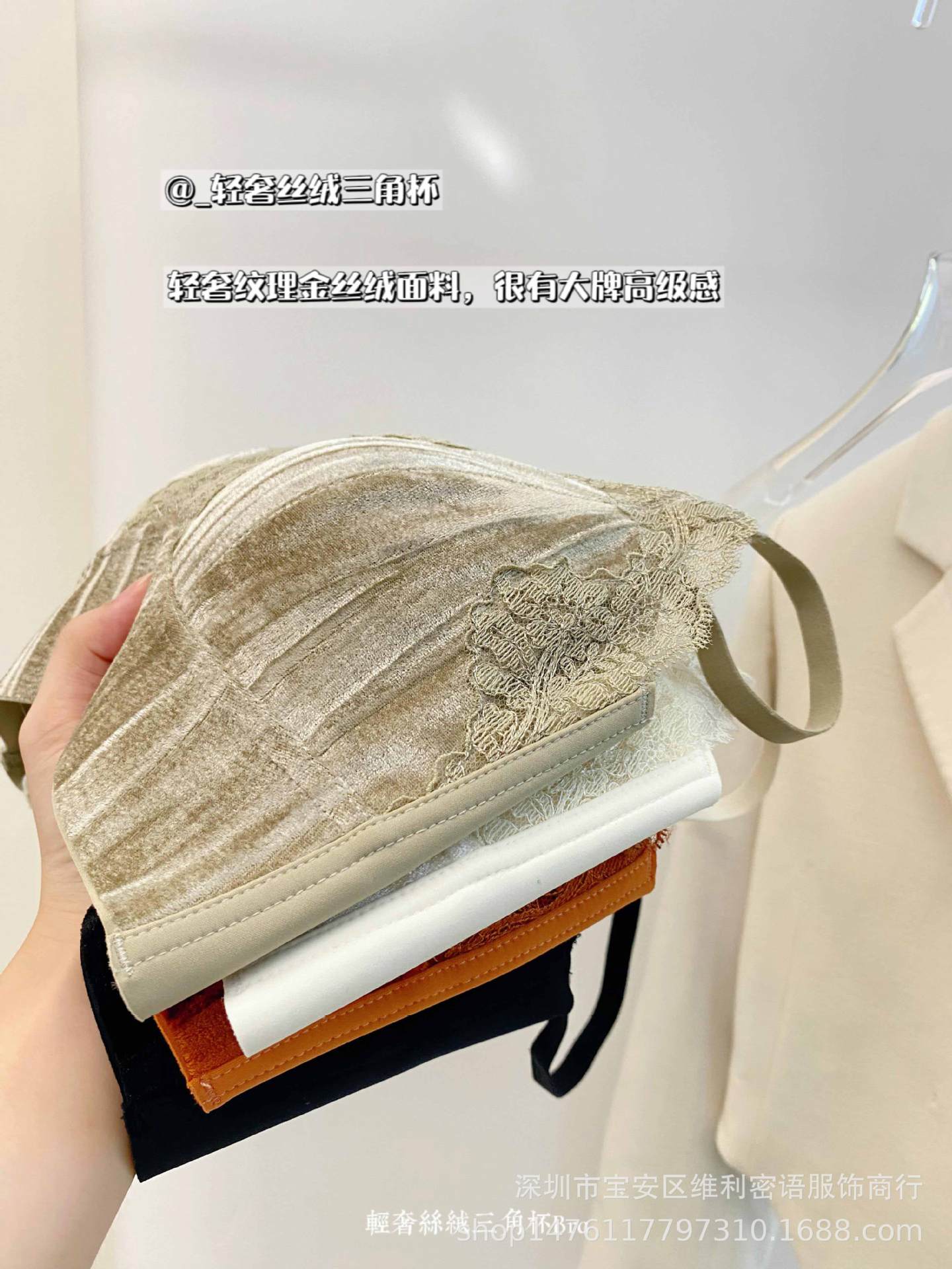 6064 otoño e invierno estilo romántico francés ropa interior de copa triangular de terciopelo de lujo ligero mujer simple y cómodo sujetador sin presión
