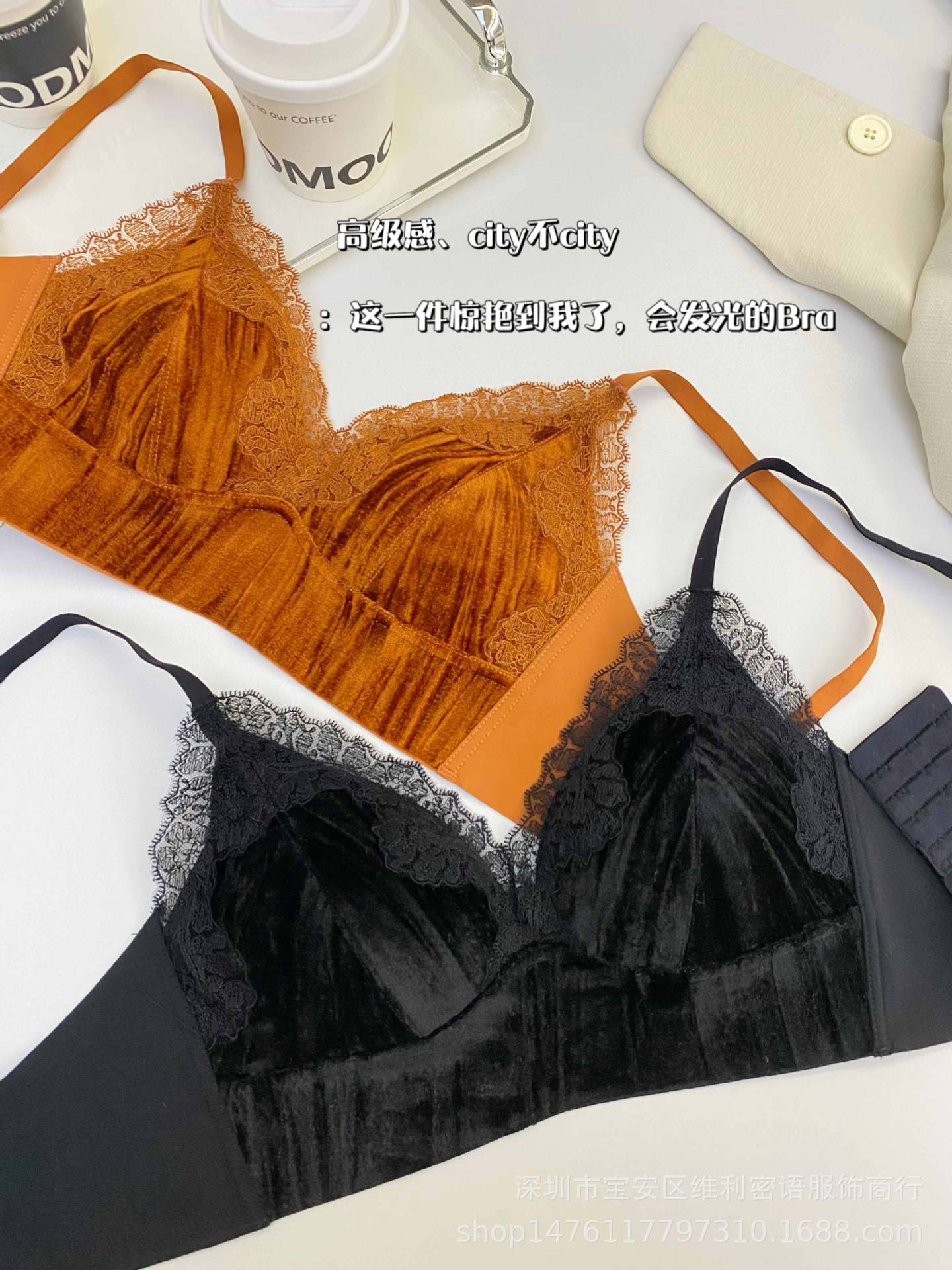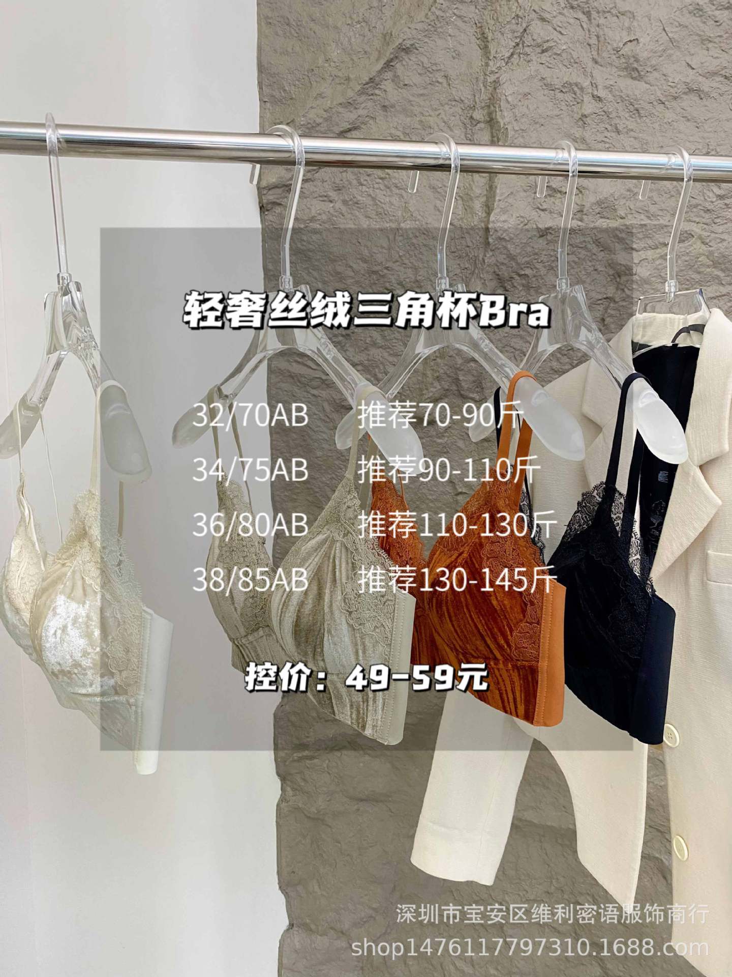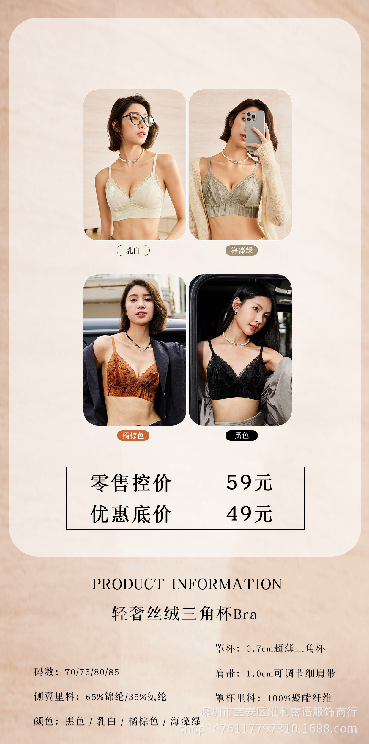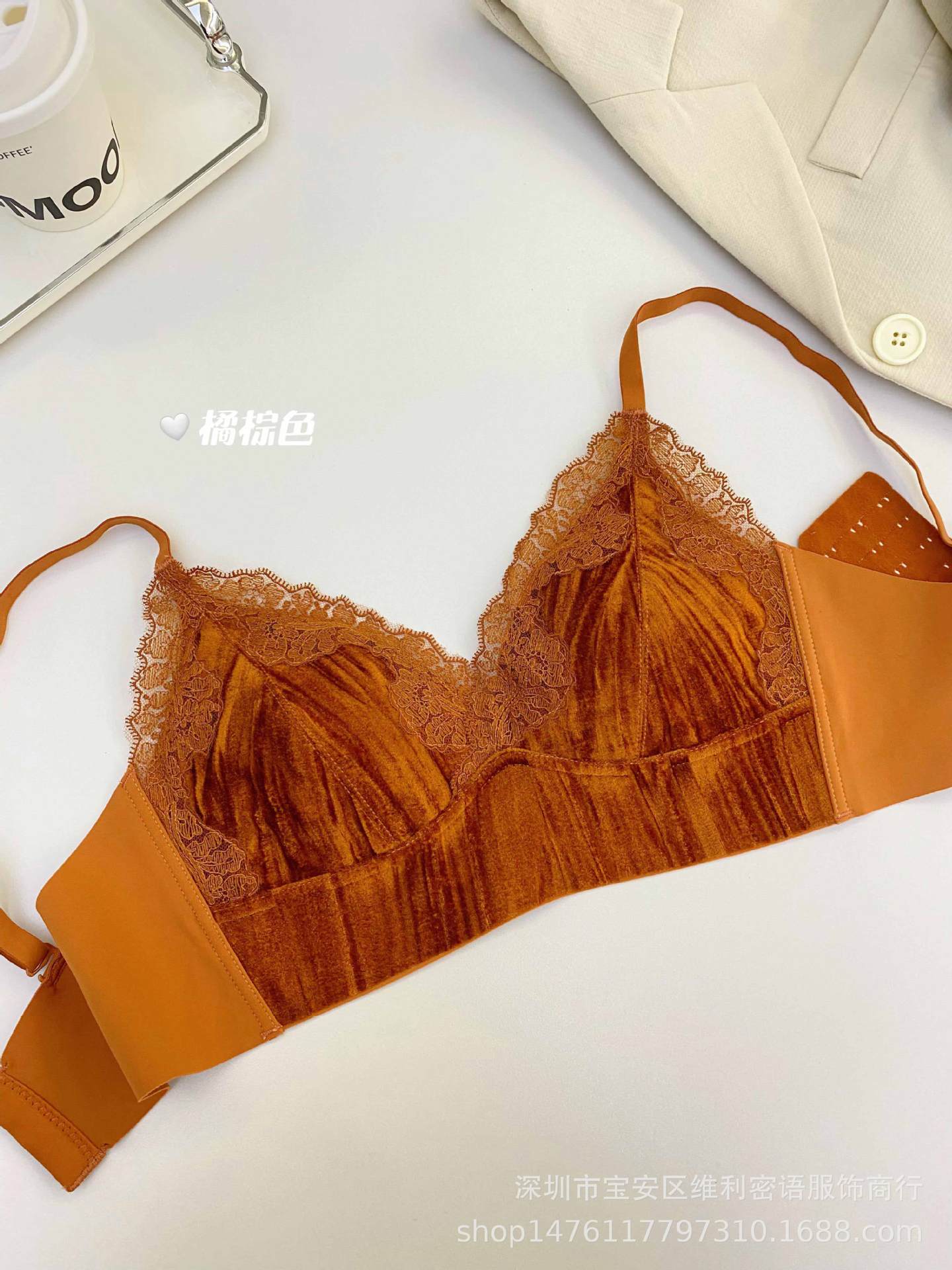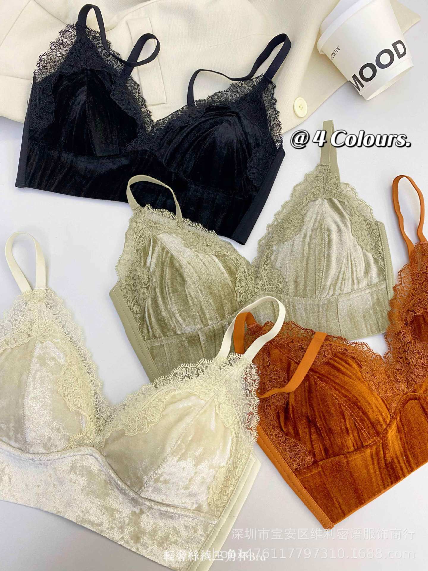 6064 otoño e invierno estilo romántico francés ropa interior de copa triangular de terciopelo de lujo ligero mujer simple y cómodo sujetador sin presión