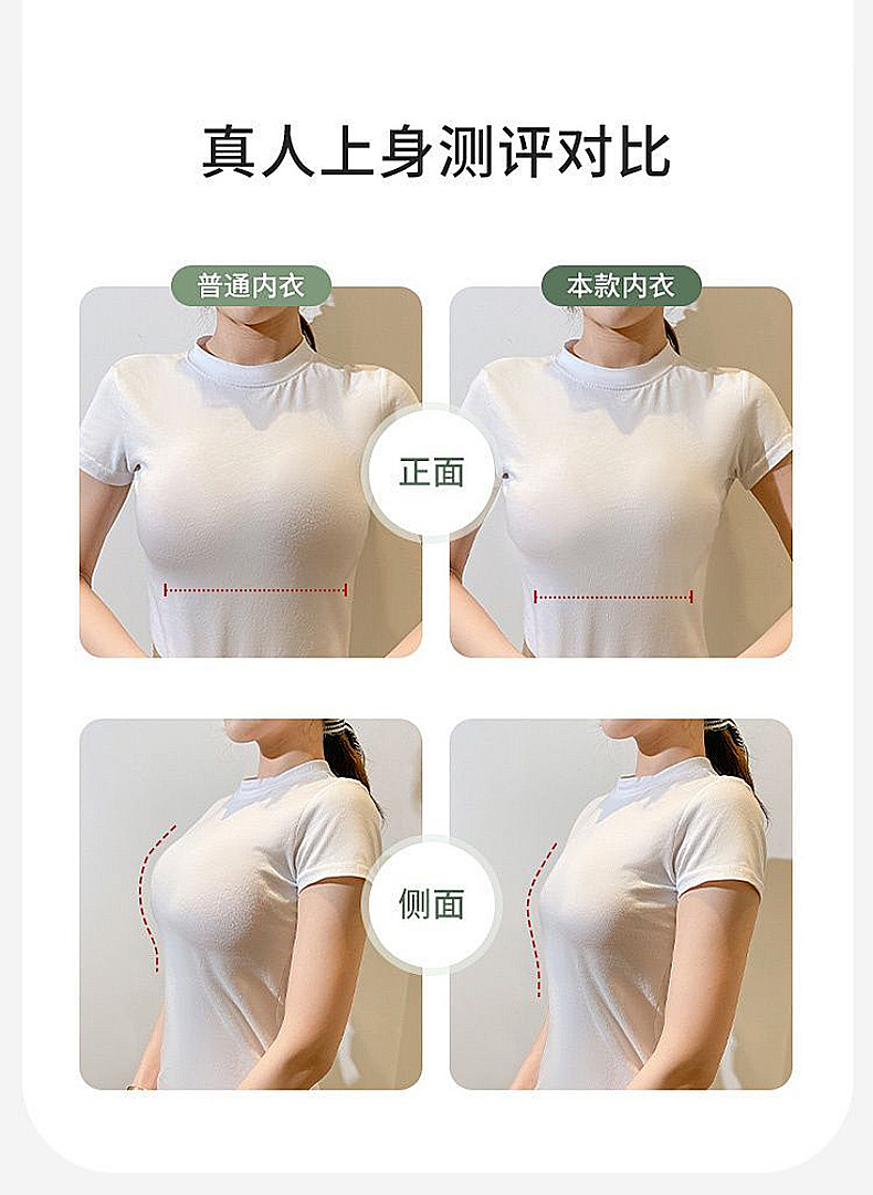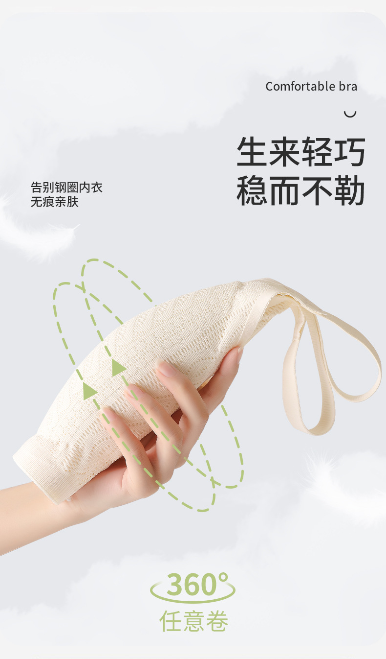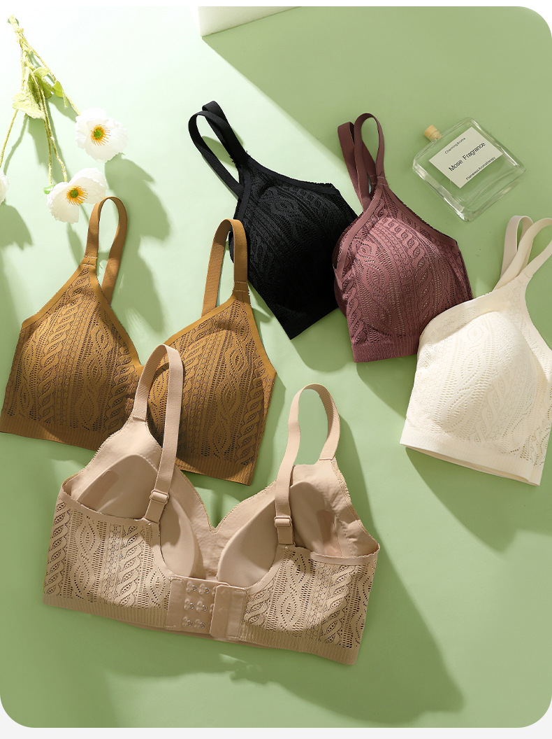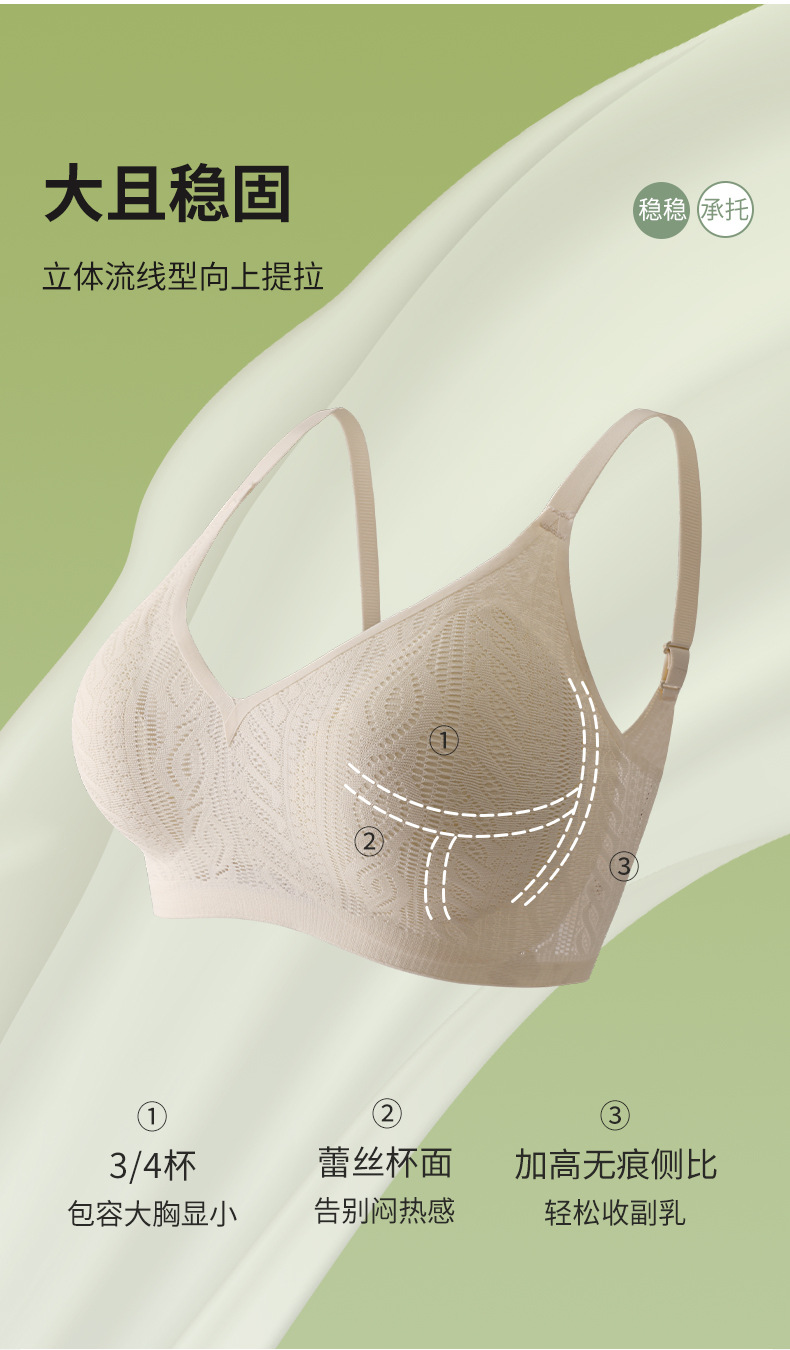 Hermoso sin costuras, espalda grande, pechos grandes, ropa interior pequeña, recogido, sin anillo de acero, sujetador de tres pechos, camisola de copa fija de pecho