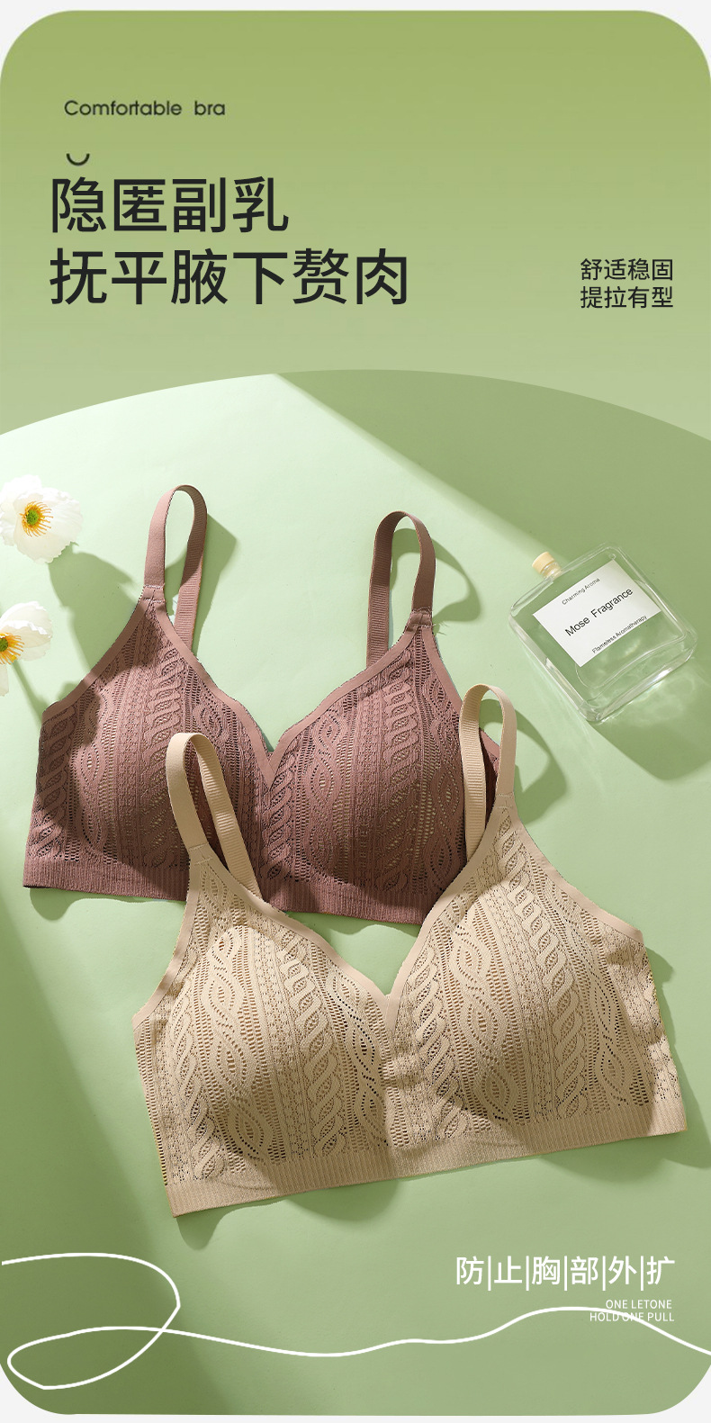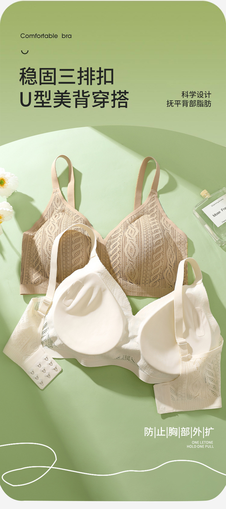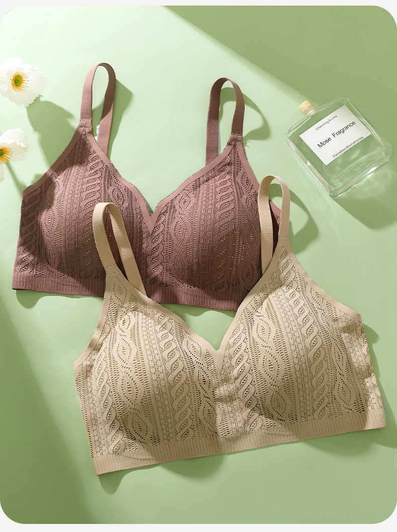 Hermoso sin costuras, espalda grande, pechos grandes, ropa interior pequeña, recogido, sin anillo de acero, sujetador de tres pechos, camisola de copa fija de pecho