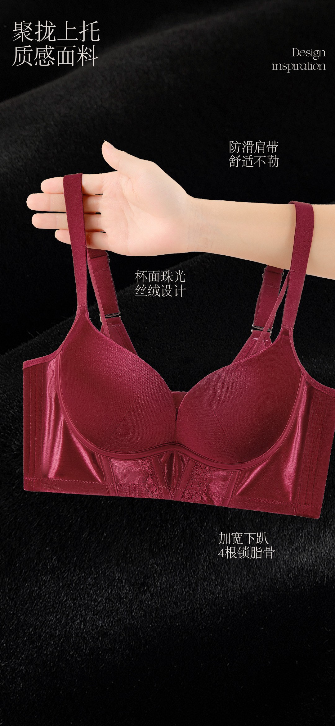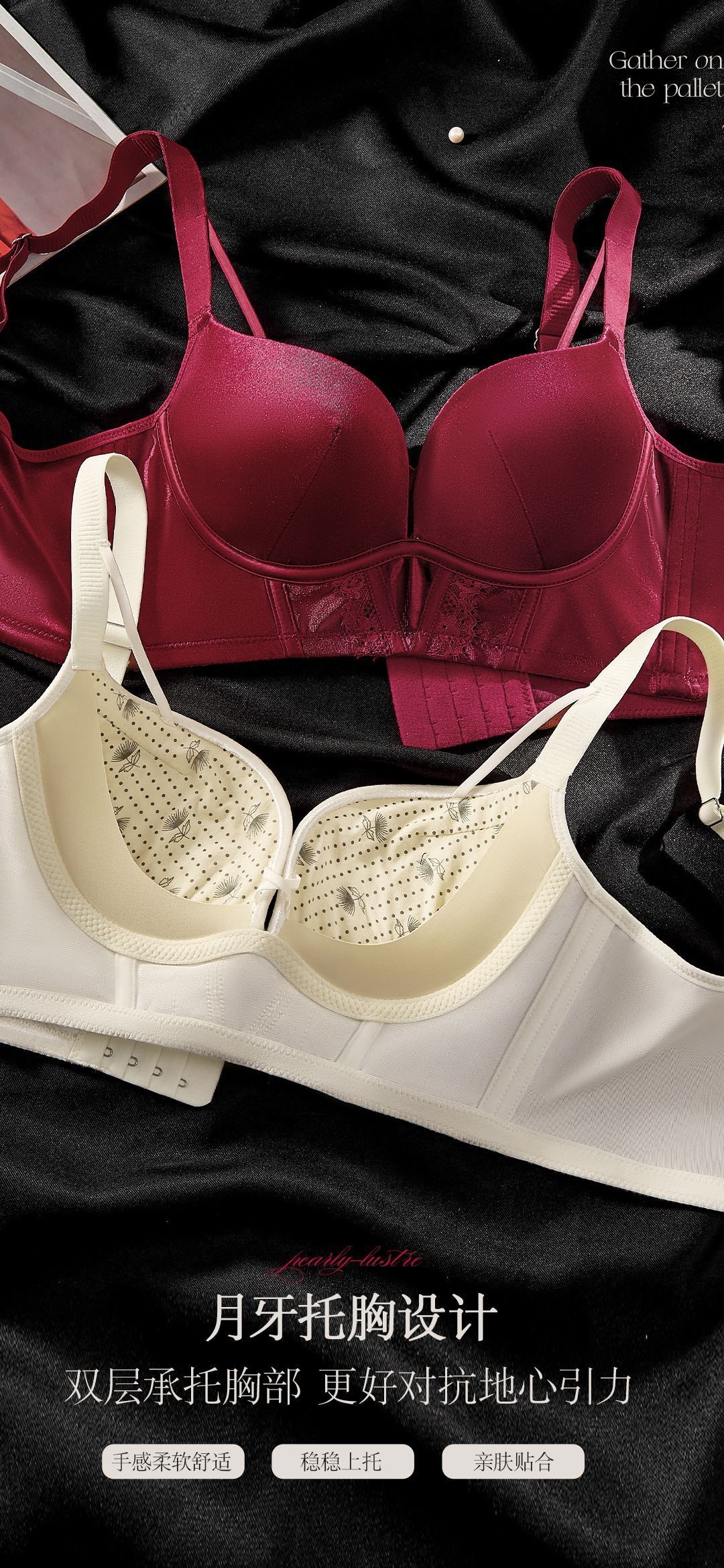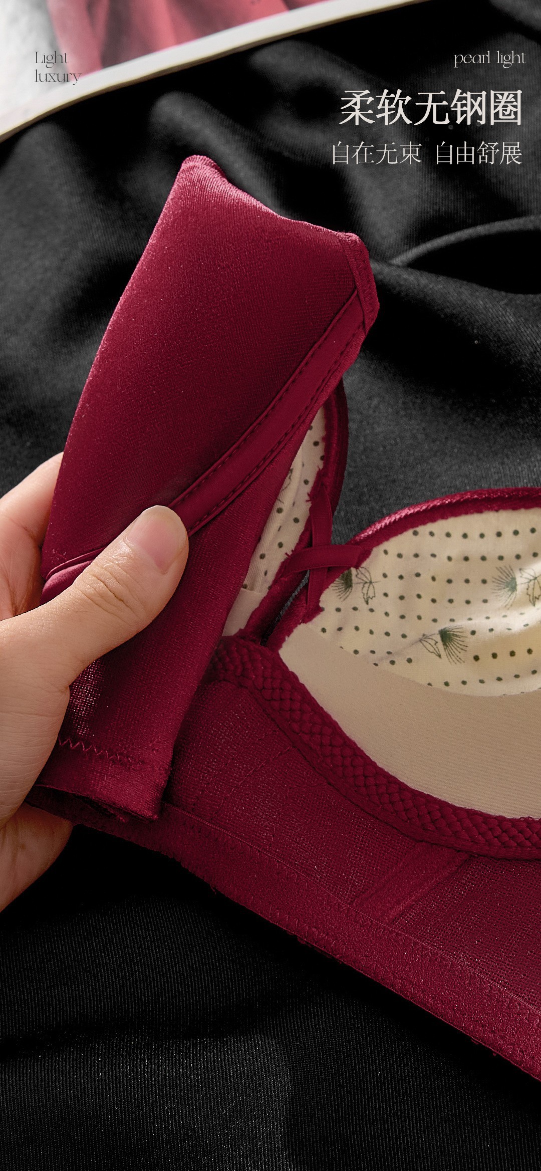 8788 Conjunto de ropa interior térmica de terciopelo elástico nacarado de lujo Cómodo sin anillo de acero, sujetador de colección lateral de grosor medio
