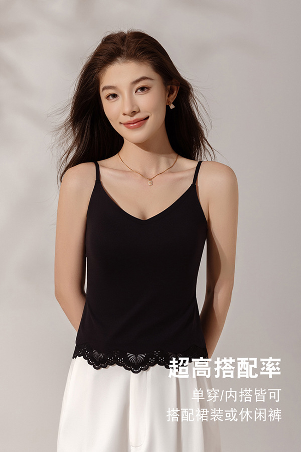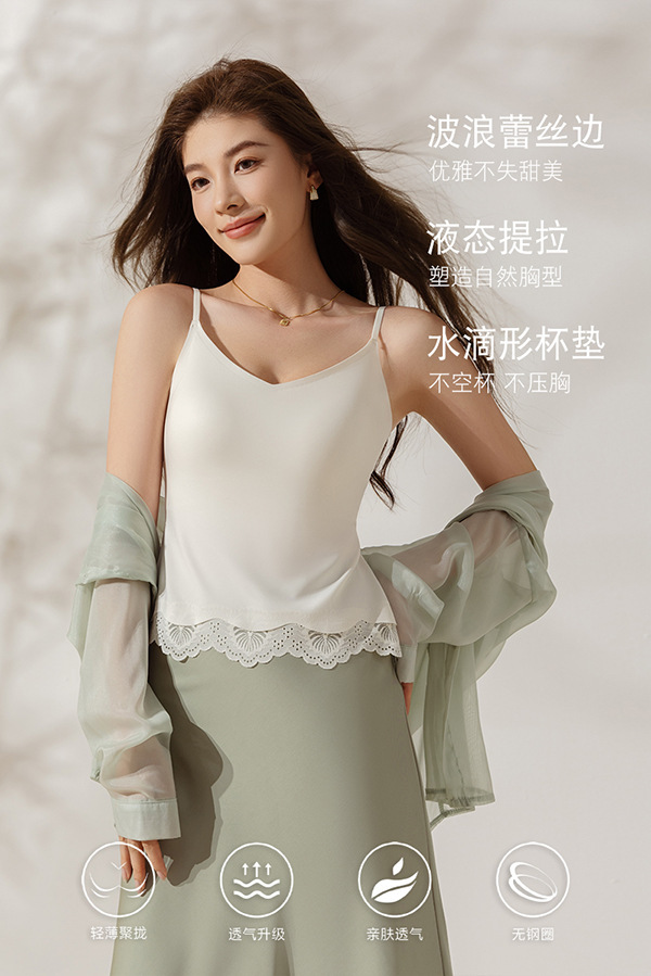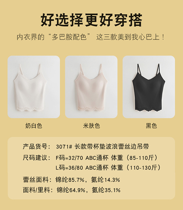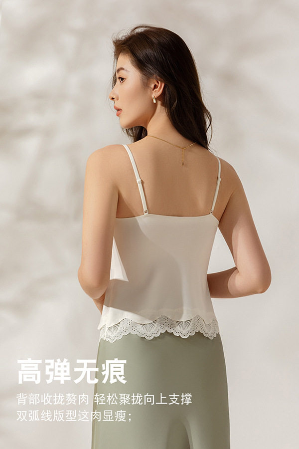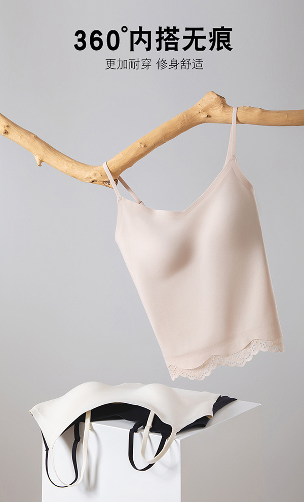 Encaje sin costuras, eslinga de espalda hermosa, ropa interior, almohadilla para el pecho, ropa interior y exterior, seda de hielo, taza fija desnuda, chaleco largo de todo fósforo