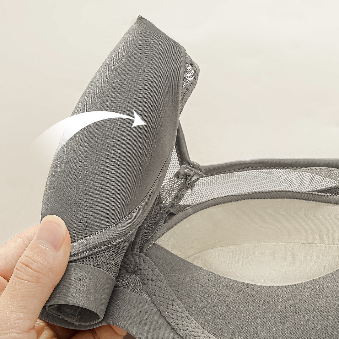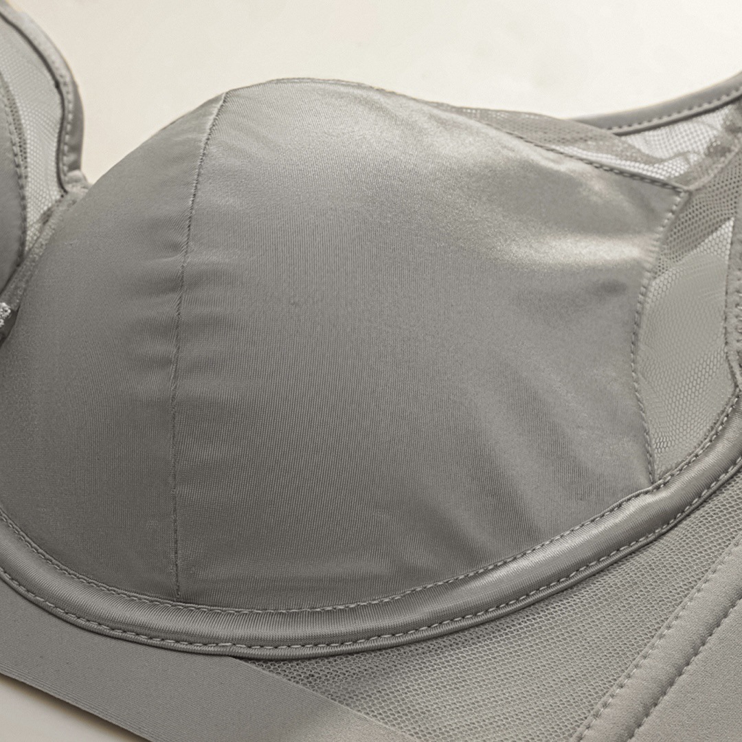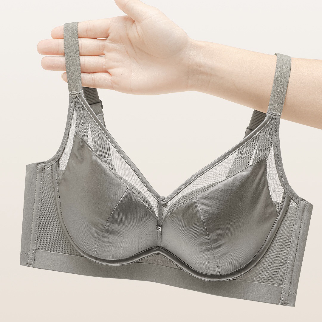 6626 Ropa interior para mujer Taza gruesa de color medio, hilo de red satinado brillante, taza de seda de morera, sujetador ajustable sin anillo de acero