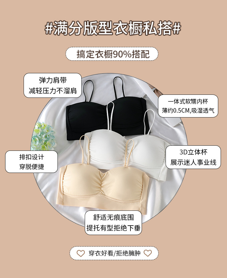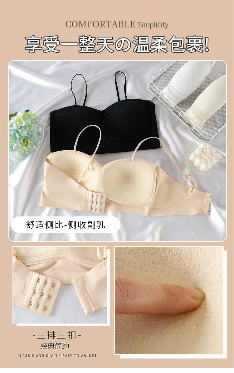 Belleza espalda sin costuras Correa ropa interior sujetador tres breasted inalámbrico taza fija pecho grande pequeño chaleco sujetador