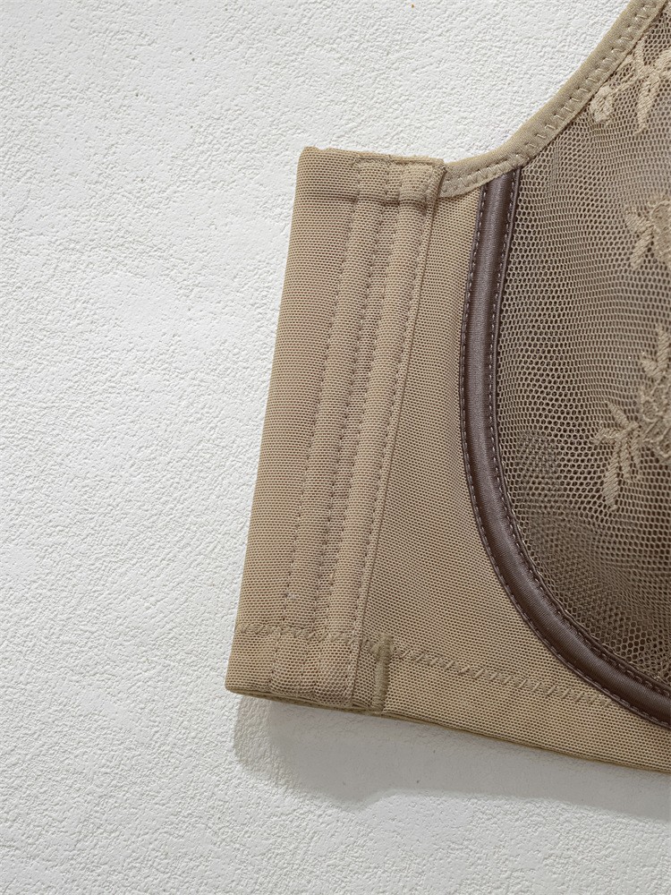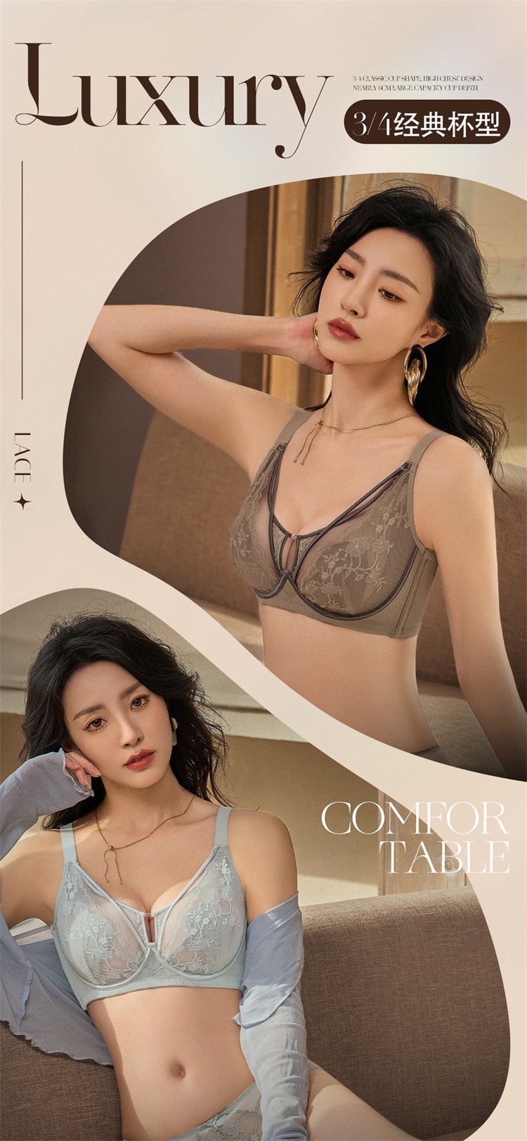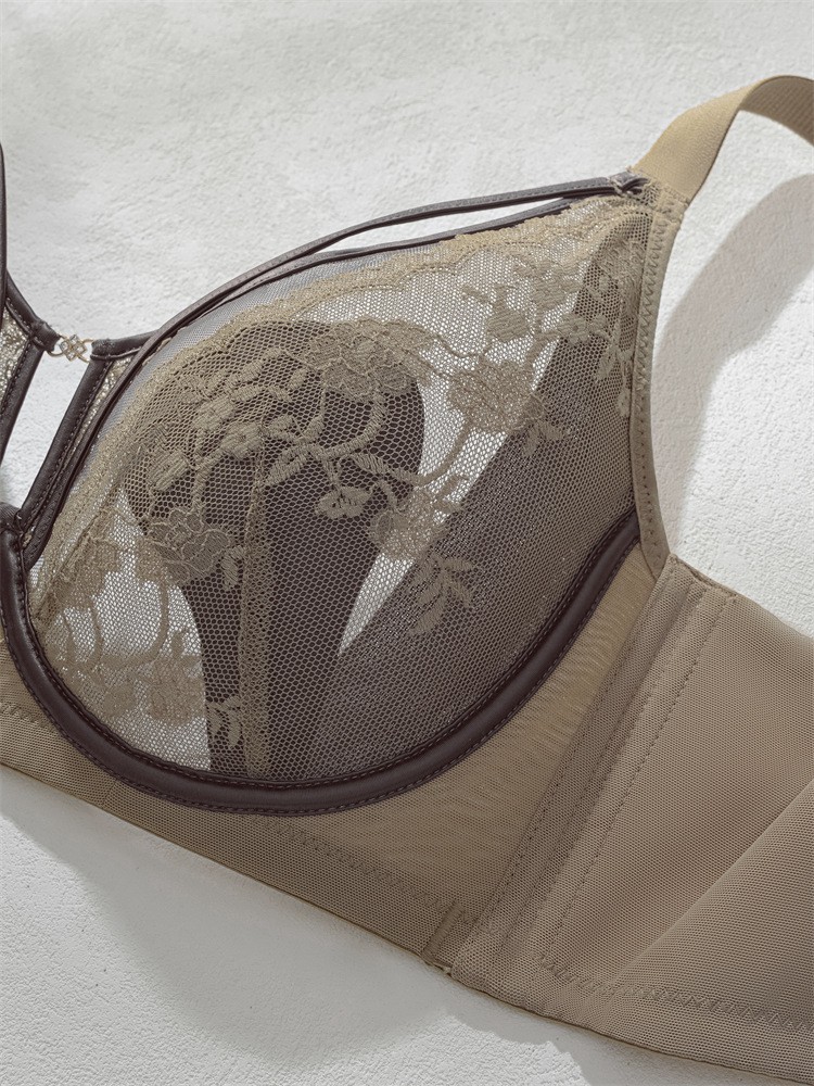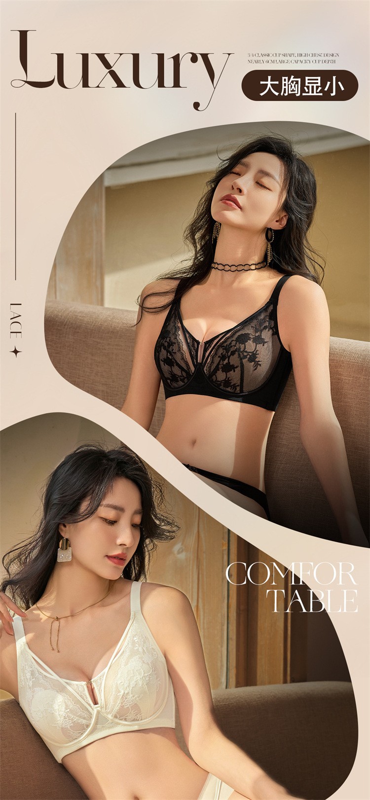 6616 Sujetador de encaje sexy con anillo de acero suave francés, orejas de conejo ligeras, pechos grandes, memoria pequeña, ropa interior ajustable de titanio